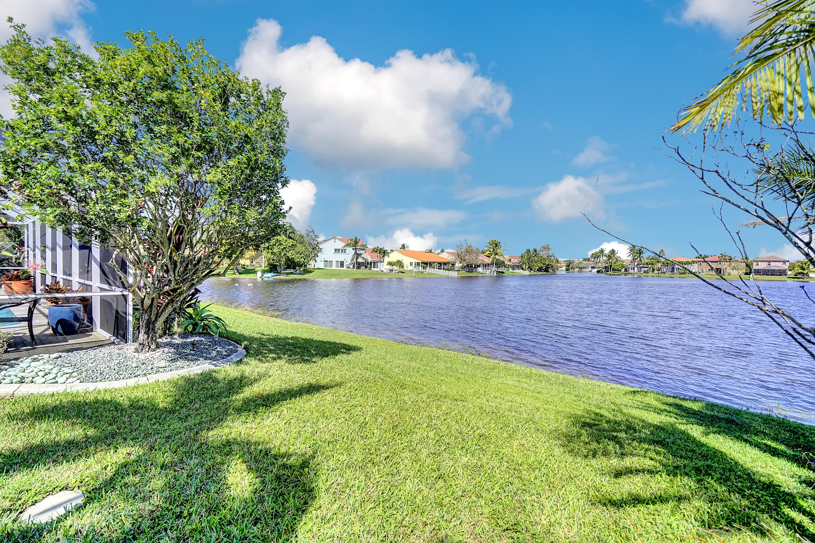 Best location on the lake! Rarely available Pasadena Estates 4 BR-2.5 baths overlooks lake and screened-in pool. Spacious kitchen with newer appliances, new copper/PEX plumbing, 2-zone newer AC units, newer tankless water heater, laundry room and home office boast plenty of space and additional storage. Primary bedroom overlooks lake and has sliders to pool, vaulted ceilings, and 2 walk-in California-style closets. Home is split floor plan with 3 additional bedrooms and extra hall space. Great home for entertaining and relaxing by the pool, close to schools, great family neighborhood with very low HOAs. Home is on a huge 13802 sq ft lot with pavers and a walkway leading to the back. Pool has just been resurfaced and is ready for summer parties. Don't miss this one-of-a-kind location.