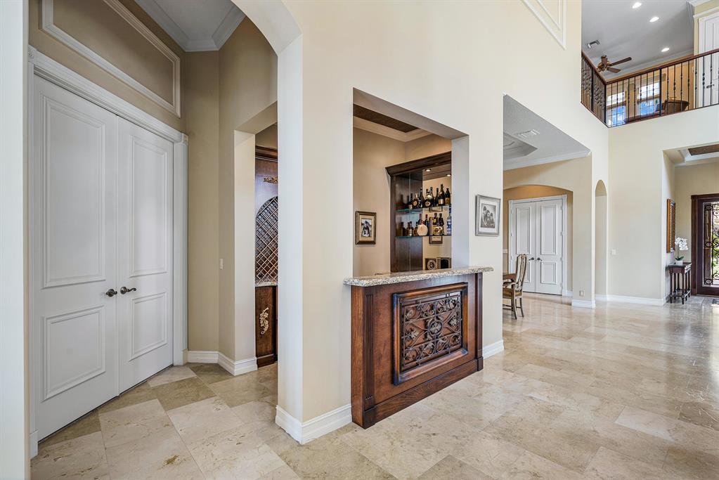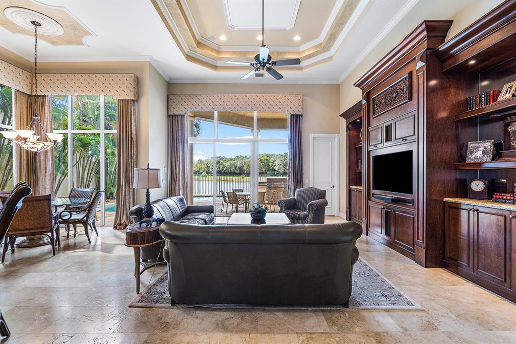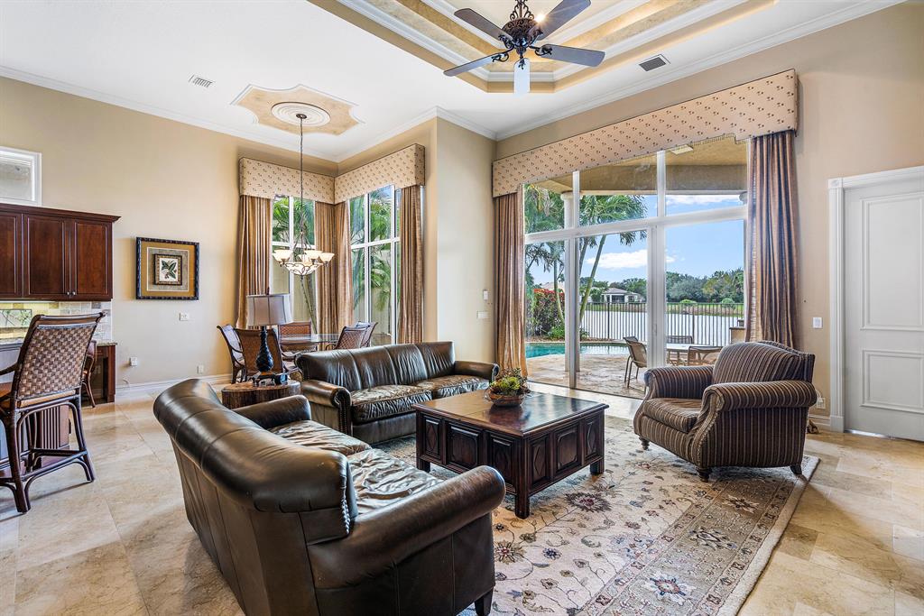 Welcome home to one of The Oaks' admired models, the Cordoba V. Set on a serene wide lake lot, this estate features a primary bedroom & theater w/over 250K in upgrades down, 4 bedrooms plus loft up, and 4 full and 2 1/2 baths. This home has special builder upgrades & architectural details thru-out, incl. marble floors in main living areas, gourmet chef's kitchen w/ granite countertops, Sub-Zero refrigerator & Thermador range, an open floor plan w/ expansive family room, & gorgeous mill work. The primary bedroom offers fully outfitted double walk-in closets & a luxurious primary bath. The Outside has a large covered patio w/ a newly installed & expansive summer kitchen & heated pool overlooking the tranquil lake. Impact glass, a 3-car garage, and a full-house generator. Sunsets galore!
