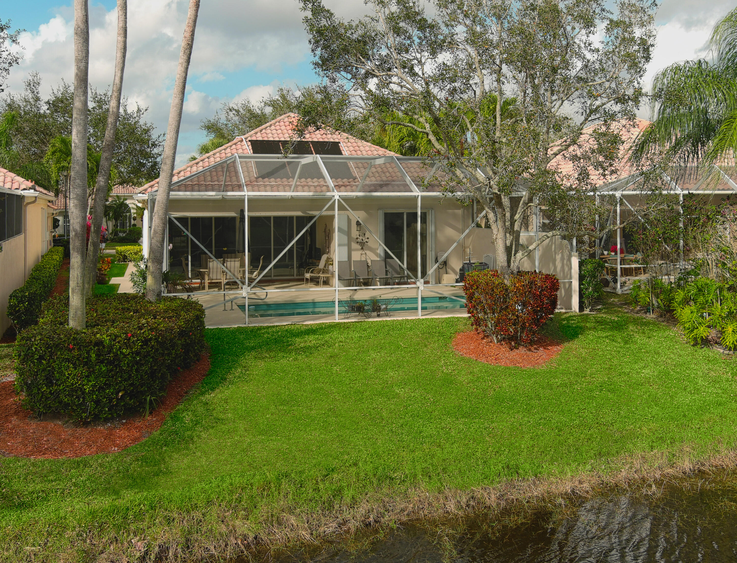 ''A Rare Gem'' Is the only way to describe this ''Jewel'' Set On A Gorgeous Wide Lush Lakeside Lot! Just Steps from the Pedestrian Bridge leading to the Five Star Resort Style Town Center in this Fabulous 24 Hour Manned Gated Community, Riverwalk! This Pristine Oakmont with a Solar Heated Swimming Pool in a Screened Terrace, where it Glistens in the Florida Sun, is sited on a Prime .16 Acre Wide Tropically Landscaped Lot with a Stenciled Finished Motor Court leading to the Side Loading 2 Car Garage, giving this home a Presence, Rarely Found! This is only the beginning & it carries through from the Elegant Stenciled Floored Screened Entry with a Decorator Fixture, to the Gracious Tile Foyer with a Designer Fixture that leads to the Stunning Tile Great Room with 12 ft. Ceilings, a Full Wall