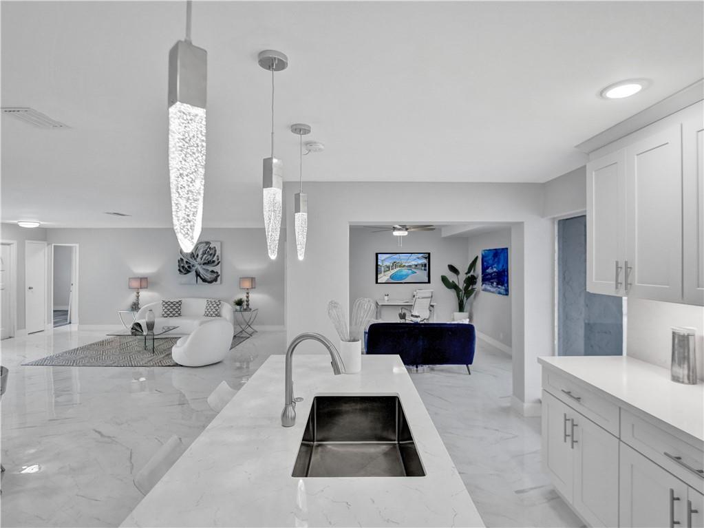 Fantastic pool and phenomenal lake views adorn this 3/2 2 car garage stunner in Sunrise. Panoramic, expansive lake views give the feel of peace, calm and tranquility. Fresh exterior and interior paint ceiling to floor wrap the property and allow for polish. Every single space in the home has been renovated to reveal 2023 appointments. Open concept allows you to walk in on white/gray porcelain tile in main areas and high grade gray vinyl in the bedrooms. Kitchen is a chef's delight boasting two sinks for easy cooking and cleaning along with white/gray quartz countertops and brand new stainless steel appliances. All hardware/light fixtures/chandeliers are tastefully selected to match the mood and flow speaking to the elegance of the property. So much more to celebrate here! Come! See! Own!