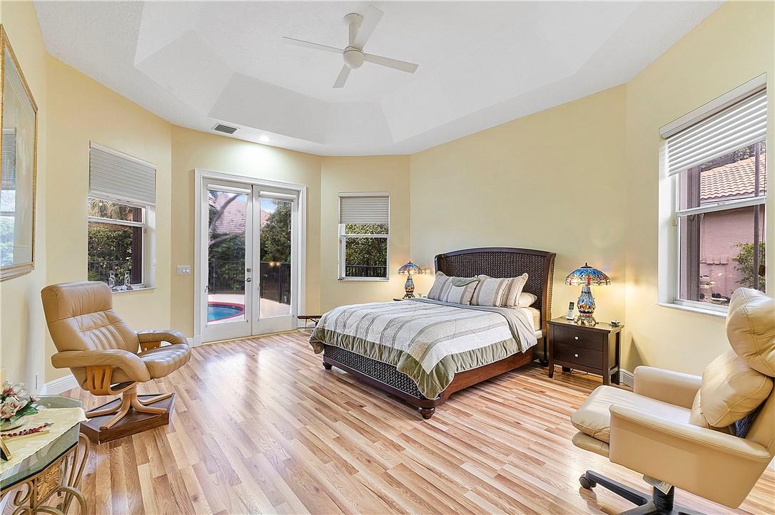 This beautifully updated home is located on a tropically landscaped corner lot in one of Coral Springs most sought after gated communities! Features include a circular driveway, foyer entrance, formal living & dining rooms, family room, breakfast area & office! The kitchen offers light wood Scandinavian cabinets, Corian counters and a new SS French Door refrigerator. There are 31" porcelain floors in the main living areas, wood flooring in all the bedrooms, tongue & grove wood ceilings, LED lighting, split bedrooms, French doors and custom built-ins! Enjoy entertaining family and friends from the screened patio or swimming in the fenced tropical pool! Rock water fall and accordion hurricane shutters! Great location and great area schools! This is truly South Florida Living at its best!