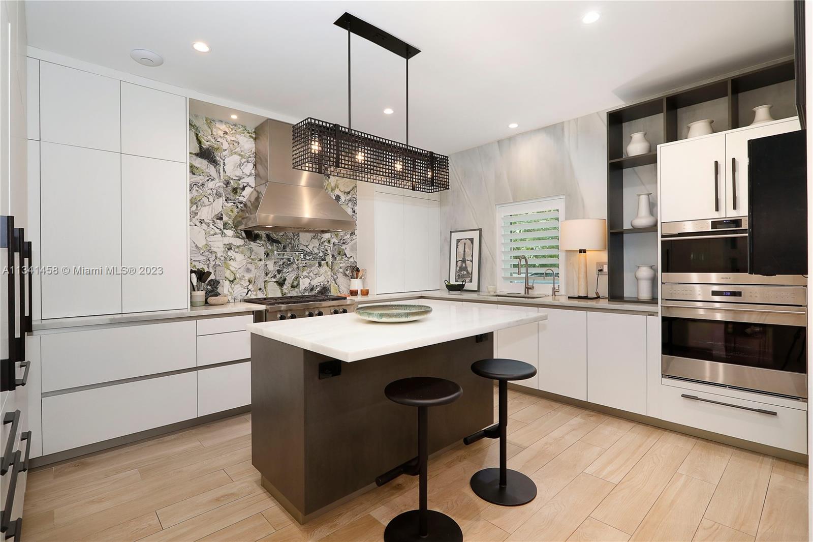 Perfection in the Golden Triangle! This home has been beautifully & meticulously renovated from top to bottom. Enter through the impact glass front door into a spacious open-concept masterpiece w/ the finest finishes including fabulous custom cabinetry, marble counters, Wolf, Miele, & Sub-Zero appliances, full-house generator, gorgeous tilework, California Closets, & more! Ideal for entertaining, the home enjoys gracious indoor & outdoor liv spaces, 2 dining areas, gourmet kitchen & summer kitchen. 3 BRs feature en-suite BAs, the primary bedroom has 2 closets, spa-like BA, & magnificent garden views. The corner lot feels like a secret garden w/ lush, mature landscaping, it also has a circular driveway & side drive that leads to the 2 car gar & large laundry room. A true showstopper!