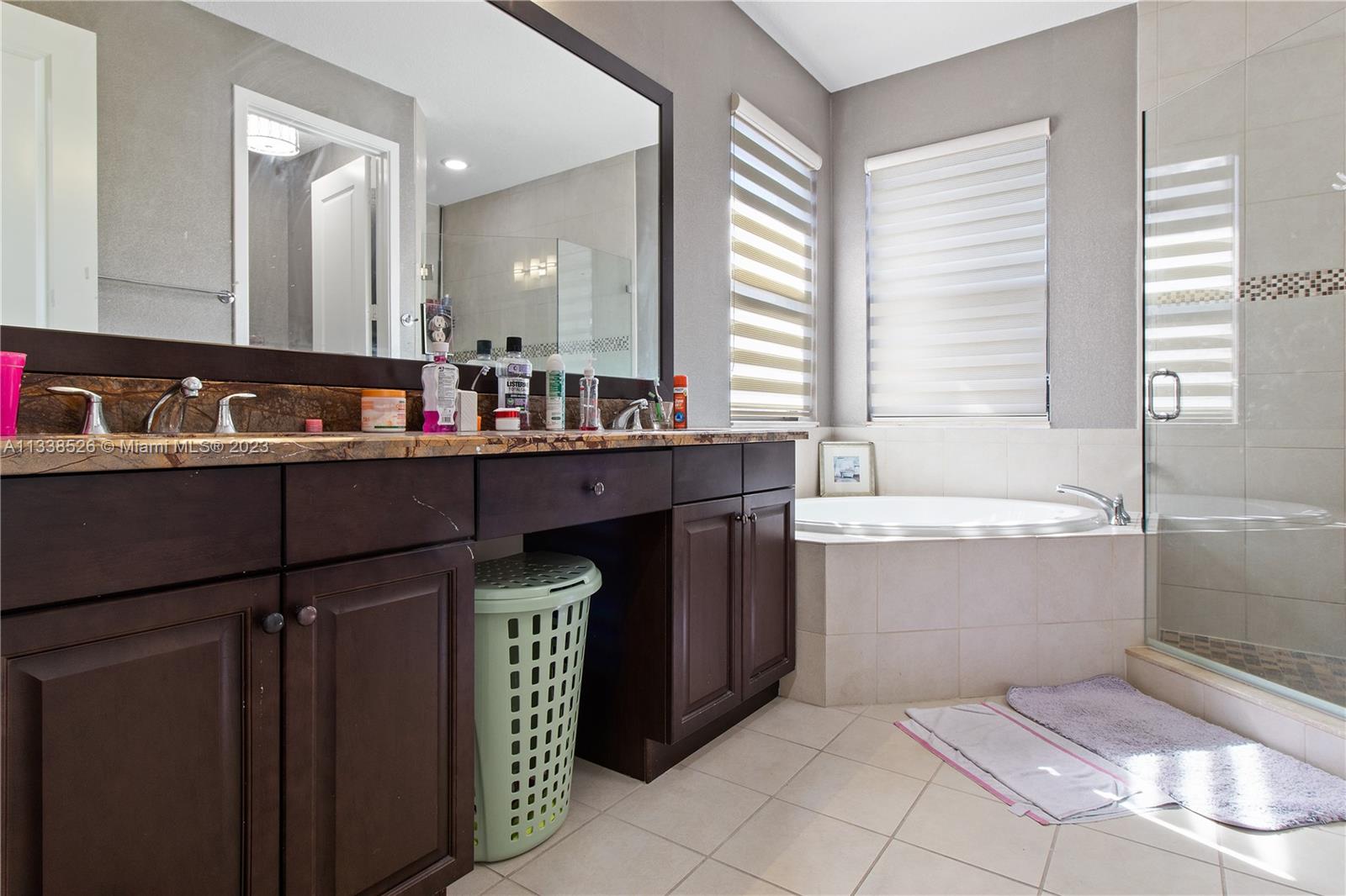 Spectacular HOME 5 ROOMS/(3.5 Bathrooms). Includes 2 MASTER BEDROOM SUITE'S, YES 2 MASTER! (1 on the GROUND FLOOR),on a block away from clubhouse, Approx. $100K of upgrades: Jacuzzi with hydromassage inside a master room, features dual sinks in the bathrooms & separate shower/tub, custom made all walk in closets, features gutters, beautiful porcelain tile on the main floor,High Hats & lamps, eat-in kitchen with upgraded cabinets and granite countertops, smart home audio and security camera system, High-Quality vinyl-wood waterproof laminate floors on second floor. Stainless Steel appliances, great fenced in backyard patio perfect to BBQ, Living room opens onto the outside patio with marble travertine flooring, 24 hour gated security. Clubhouse with party room, kids playroom, gym & pool.