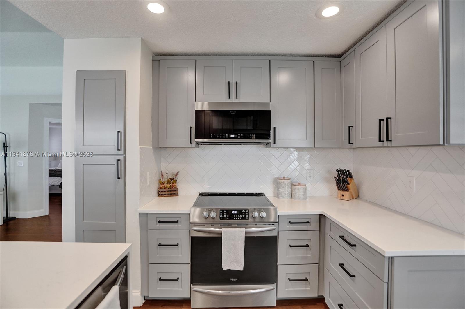 Beautiful Forest Ridge home completely remodeled! This spacious 2 bed/2 bath home is a true turn-key home! Shows nicely with a gorgeous 2021 open kitchen with stainless appliances & stunning quartz countertops, primary & guest bathrooms well designed with subway tile & stylish vanities, Mohawk wood-look laminate throughout home & popcorn ceiling removed. Additional replacements include A/C 5 yrs old, Roof 15 yrs old, Tankless water heater, modern lighting & Dryer 2022. Home fully protected with impact windows/slider/front door & accordion shutters. Low monthly HOA includes community pool, rec courts, cutting front lawn, & sprinklers. Top rated schools, I-595 & shopping close by. This is the opportunity to live in & enjoy the beauty of one of Broward County's favorite family neighborhoods!