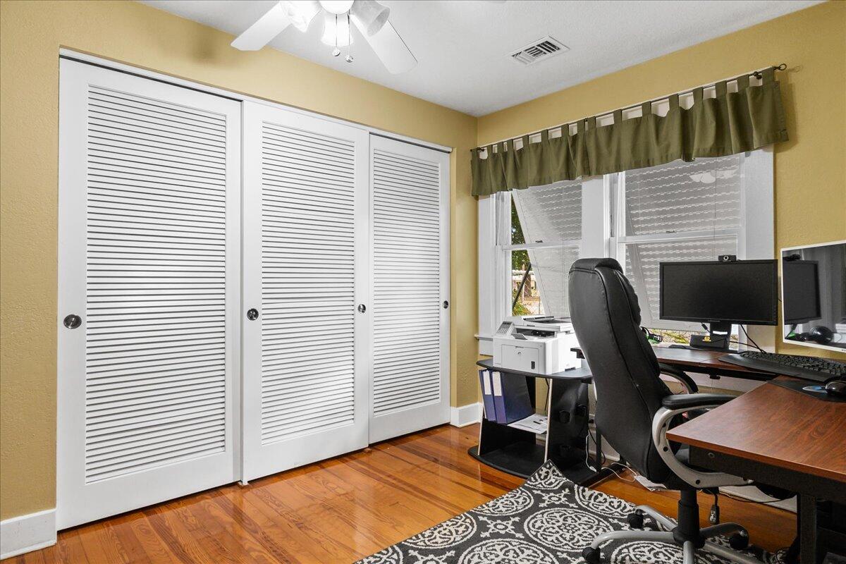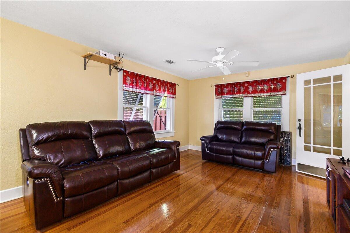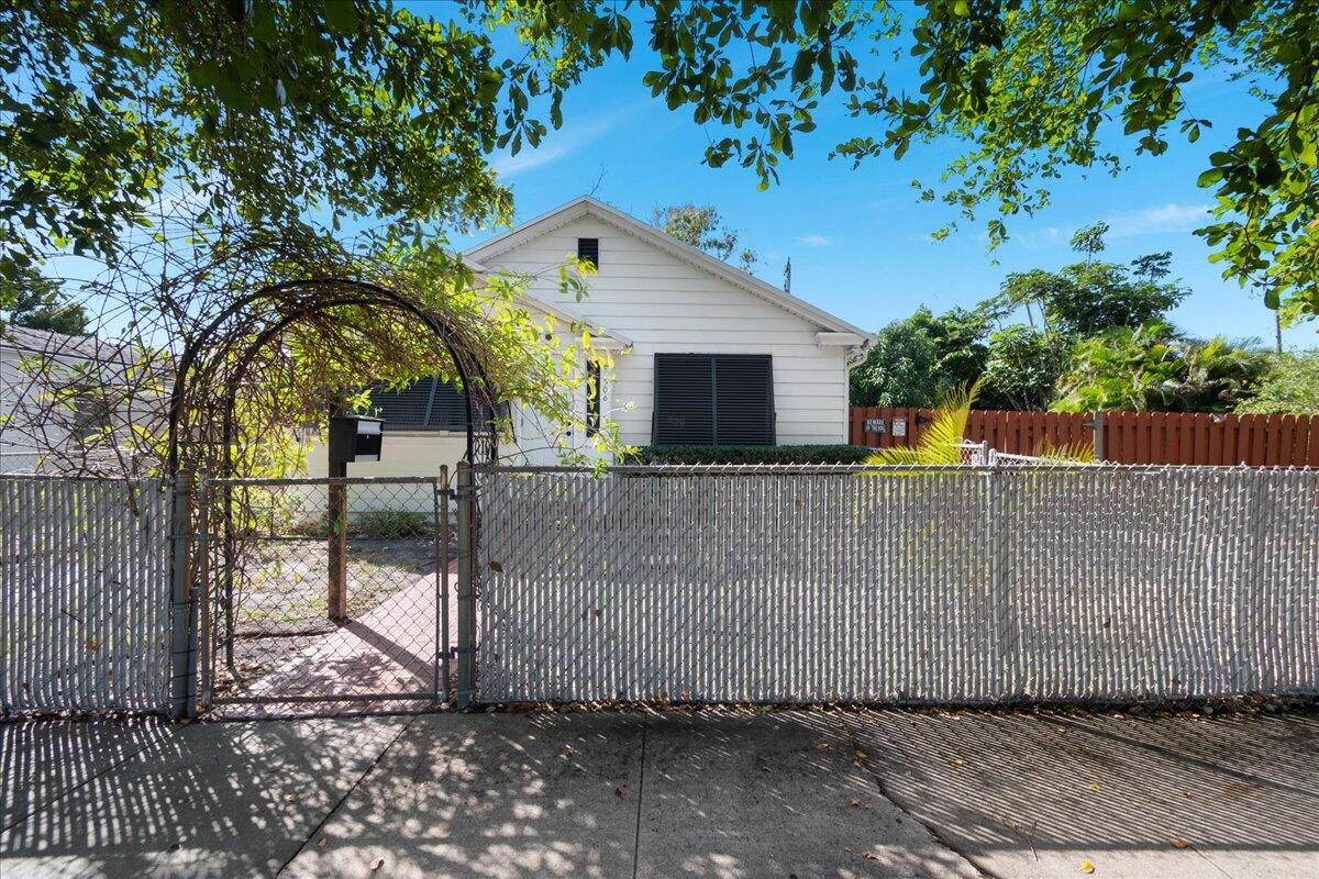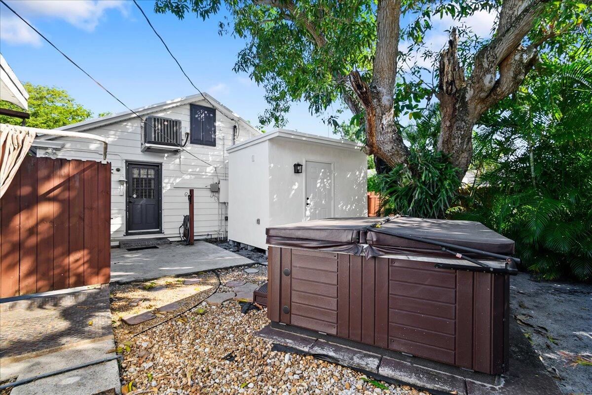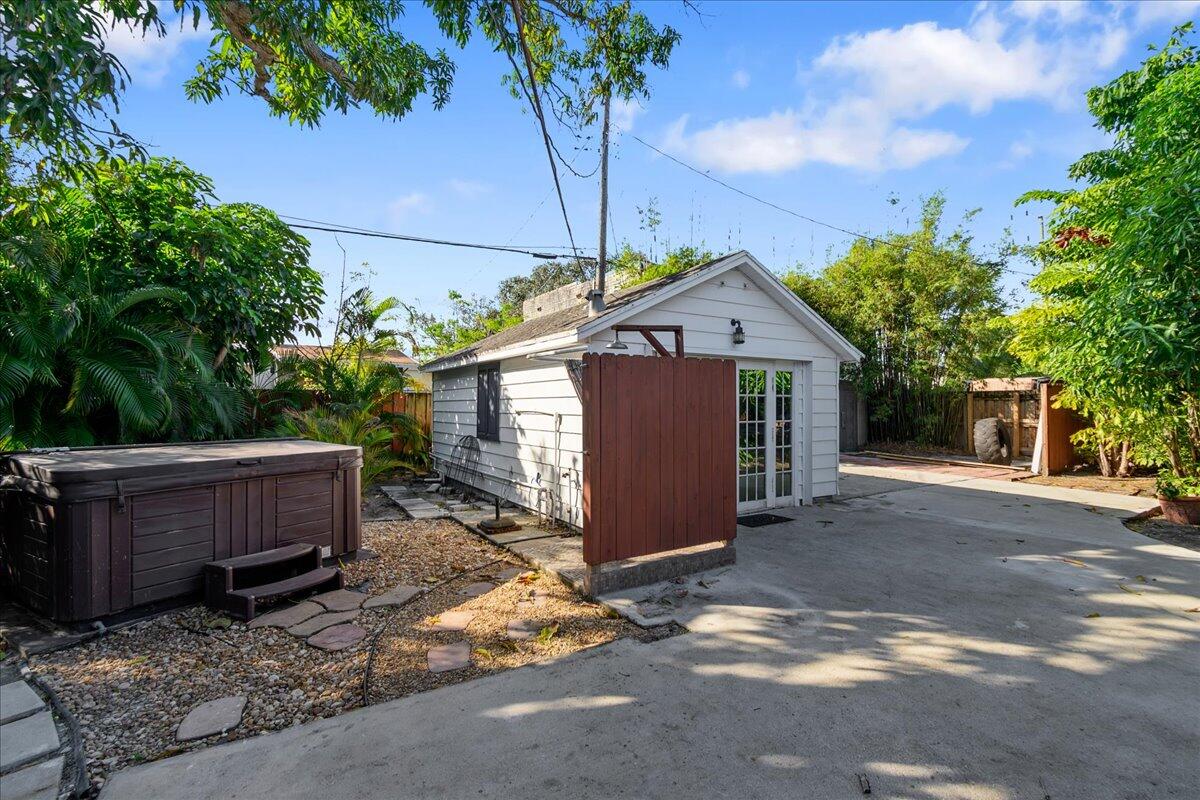 Well maintained 2 bedroom 2 bathroom home on oversized lot (105'x75'). Beautiful 2nd Bathroom added to the master bedroom. Roof 3 years old. Miami Dade wood floors throughout. Kitchen has custom cabinets and fantastic natural light. Natural gas Stove, Water Tank and Dryer. Home was rewired 2014. Hot Tub to stay. Separate 280 sq ft garage with washer/dryer. Triple size gated Lot with fruit trees and slab for a small RV or boat with a 30 amp outlet. Great location 2 blocks from Flagler, Osprey park with a dog park overlooking Intracoastal, <7 mins to Downtown WPB and Rosemary Square, 15 mins to Palm Beach International Airport.