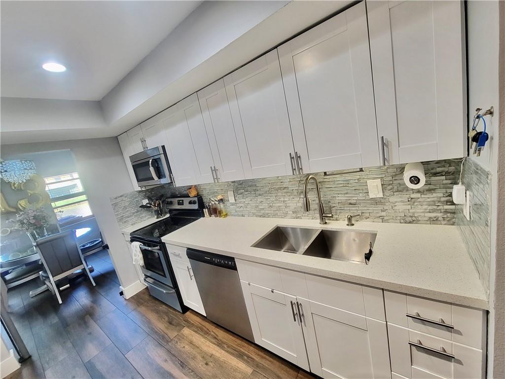 Welcome home! This meticulously maintained, fully renovated 4 bedroom/3bath townhome is in the sought-after Welleby community. This townhouse has 3 full patios, new impact windows and doors, top of the line wood tile, Swiss waterproof laminate with new flooring throughout. The A/C and roof are new! There's a tankless water heater, new 10x20 concrete patio and the TH has been completely painted interiorly. The kitchen and all bathrooms have been completely remodeled. PVC pipes throughout. HOA is low and this lovely community is just minutes to the Sawgrass. 2 parking spaces. HOA: $163 per month for management and $36 quaterly to Welleby association.