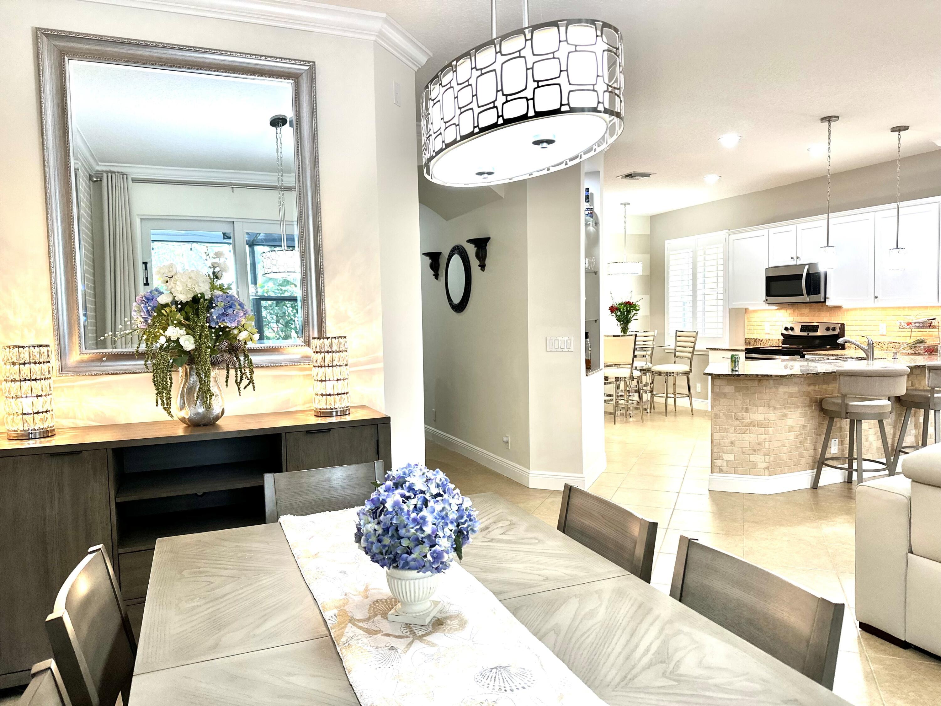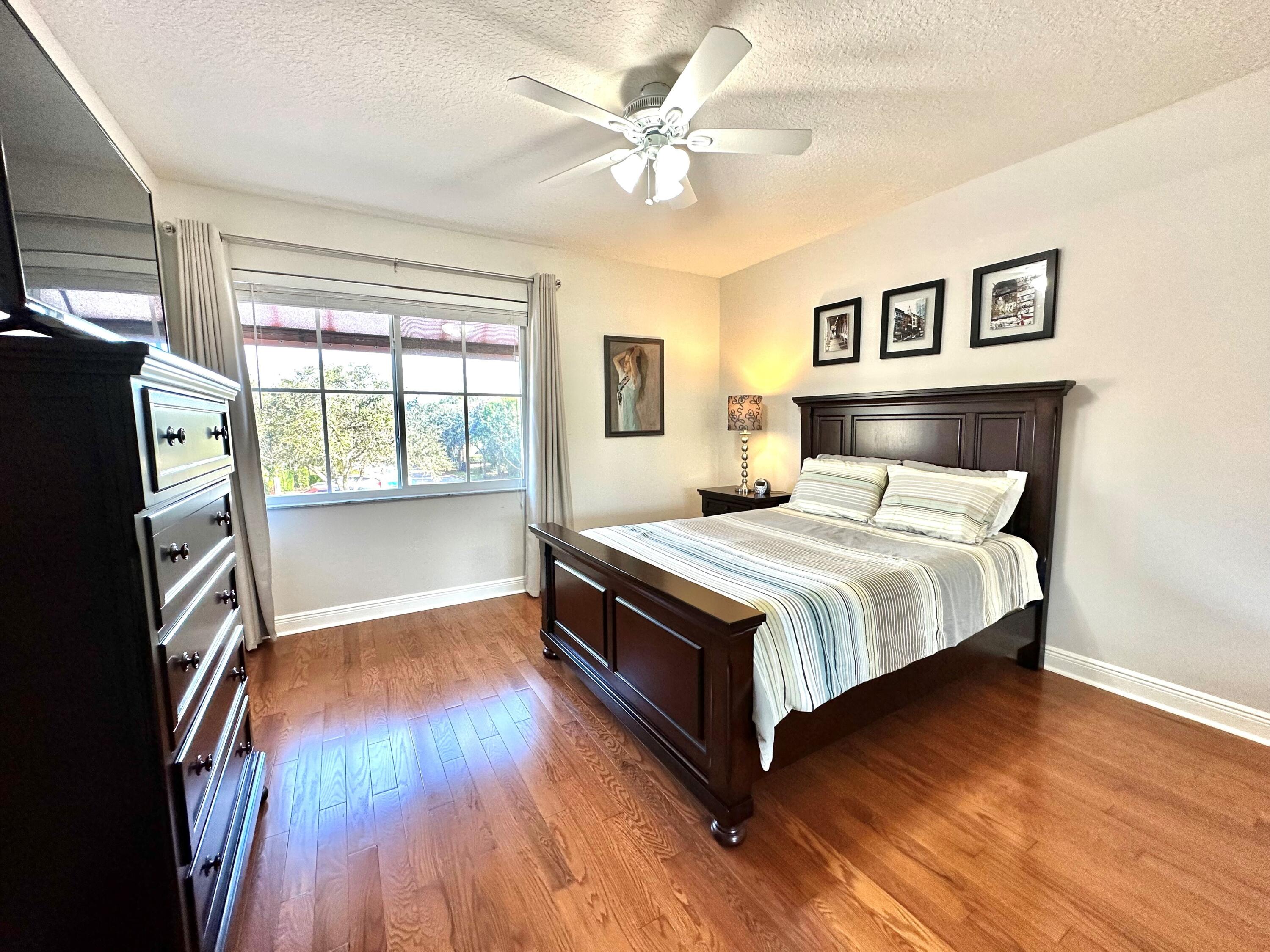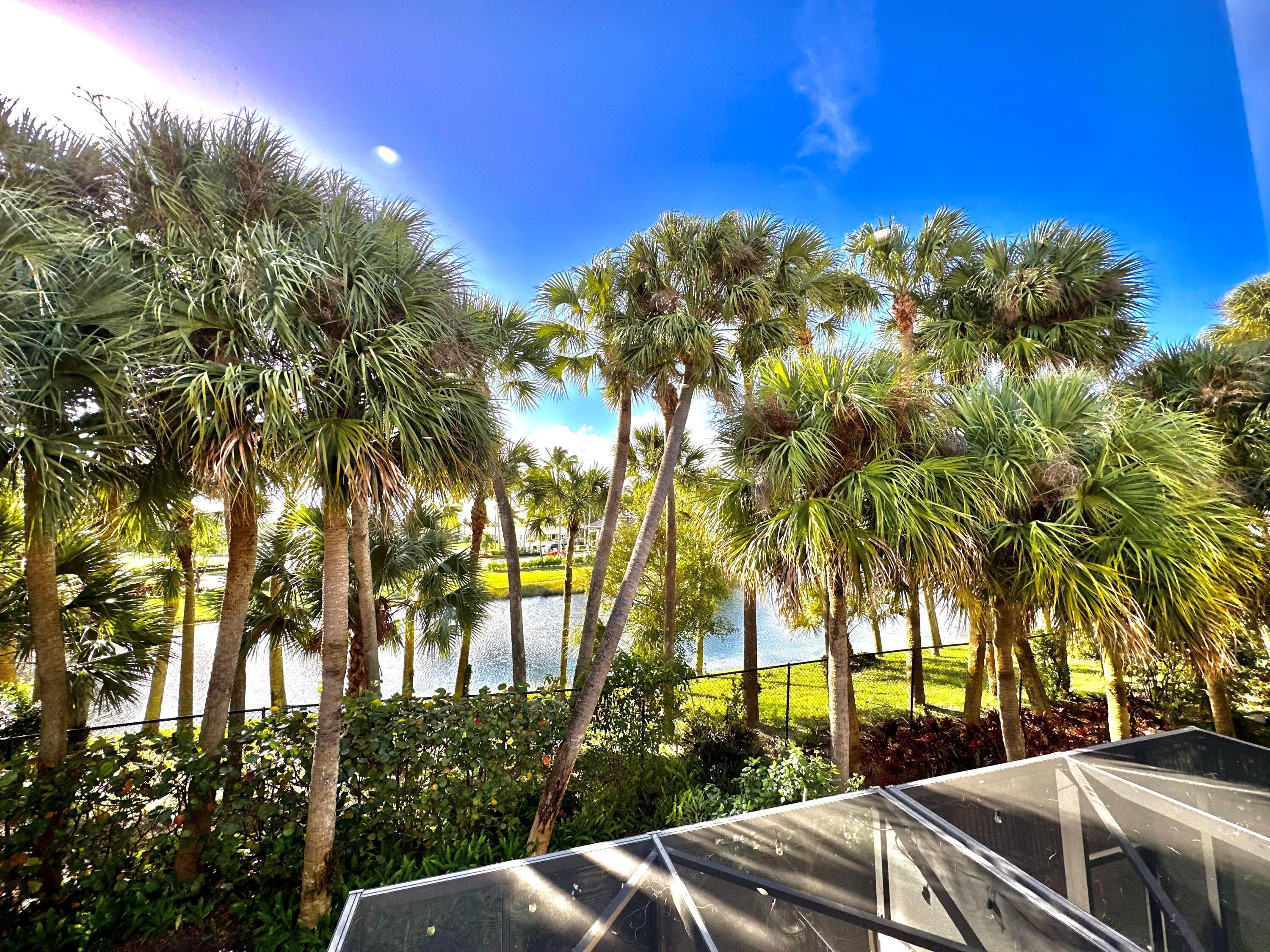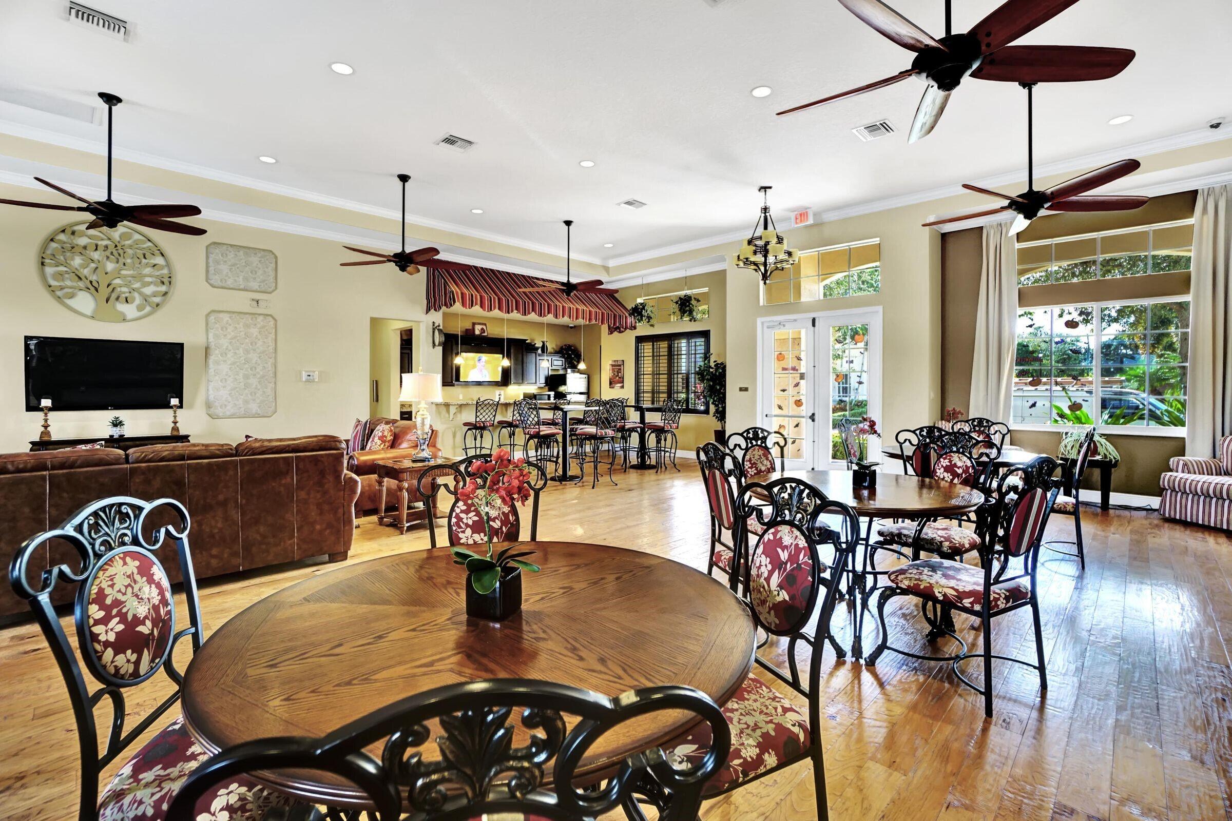 Spacious semi-detached townhouse that feels more like a house. Ceiling fans in all 3 BRs, great room and outdoor patio. Great natural light, high ceilings and luxurious finishes. White kitchen with SS appliances and granite CT. Huge MBR w/ his and hers WIC. Stairs and entire 2nd floor boast authentic gleaming hard wood floors. First floor has ceramic tile on the diagonal and stylish plantation shutters. All window treatments stay. Hurricane doors and windows. Newer A/C unit (2019). Large screened patio (furnished). Heated community pool, clubhouse, gym, billiard, ping pong, tot lot are just some of the amenities. Only 2.5 miles from Turnpike, 15 minutes to airport, downtown and beaches. Top rated private schools in close proximity as well as shopping and restaurants.