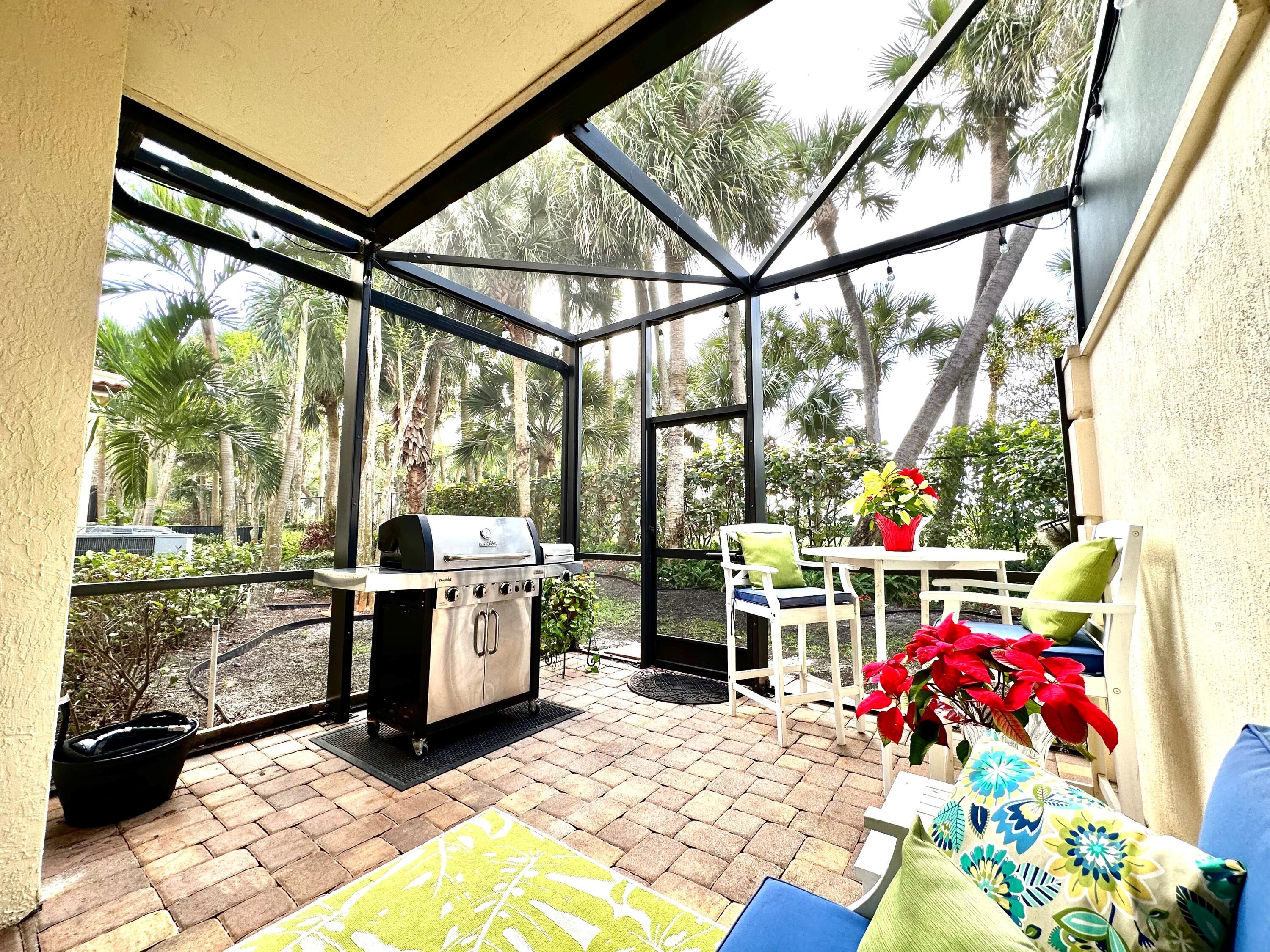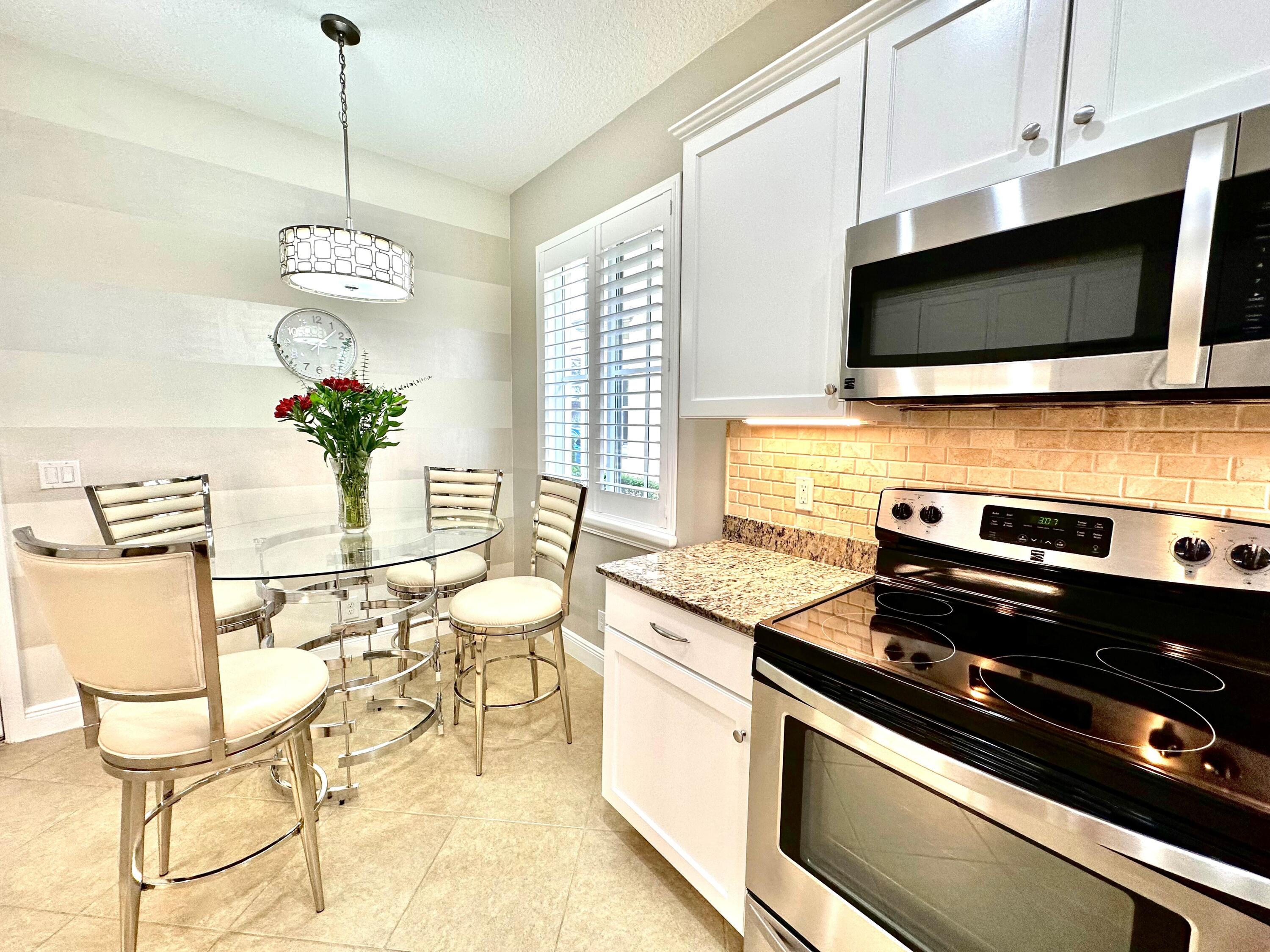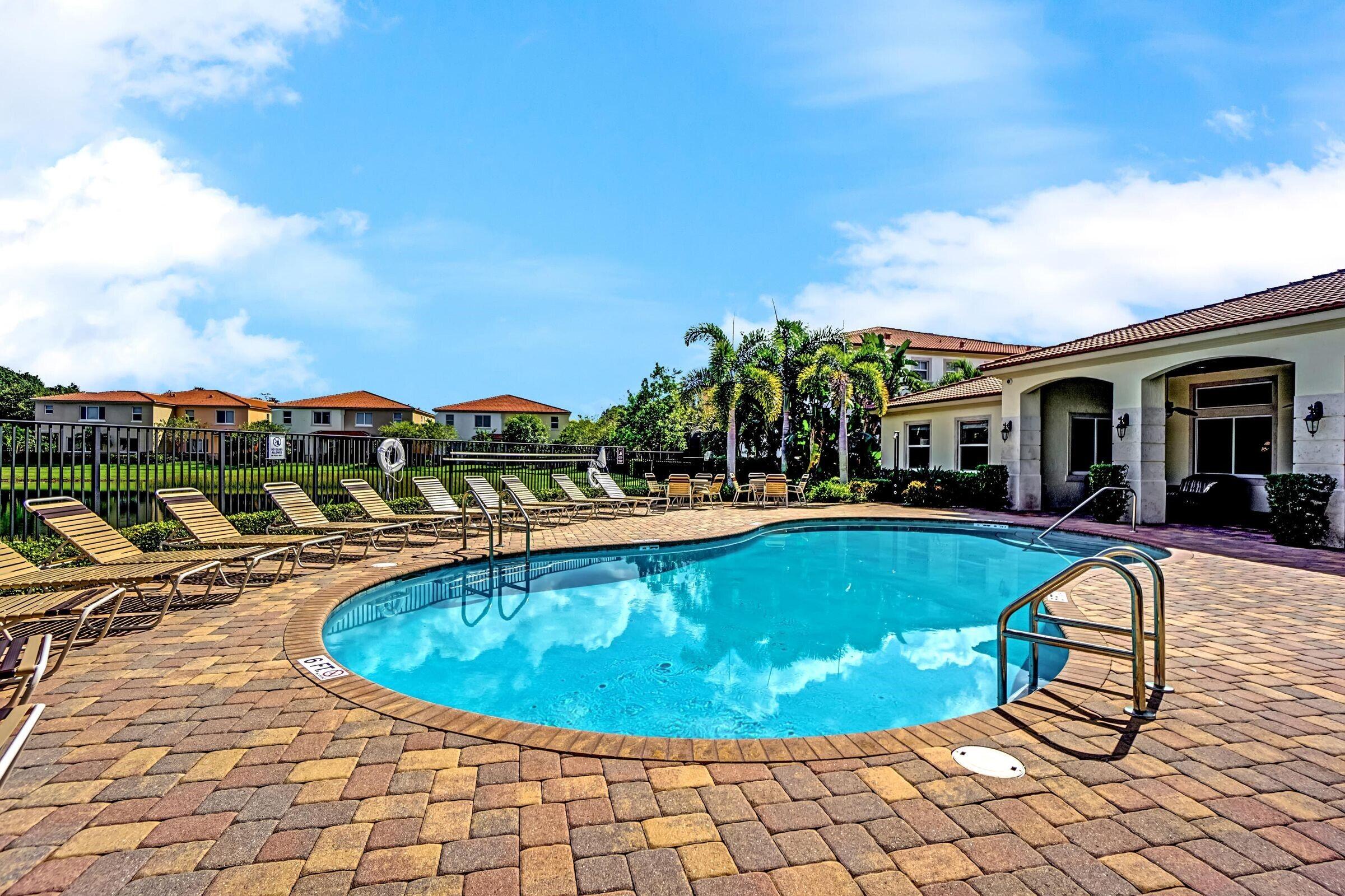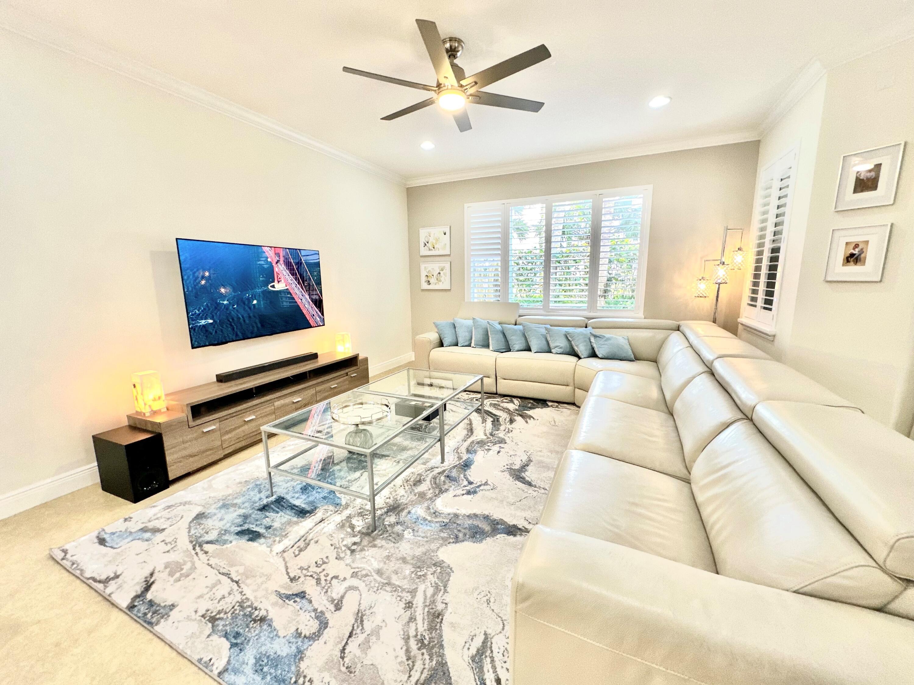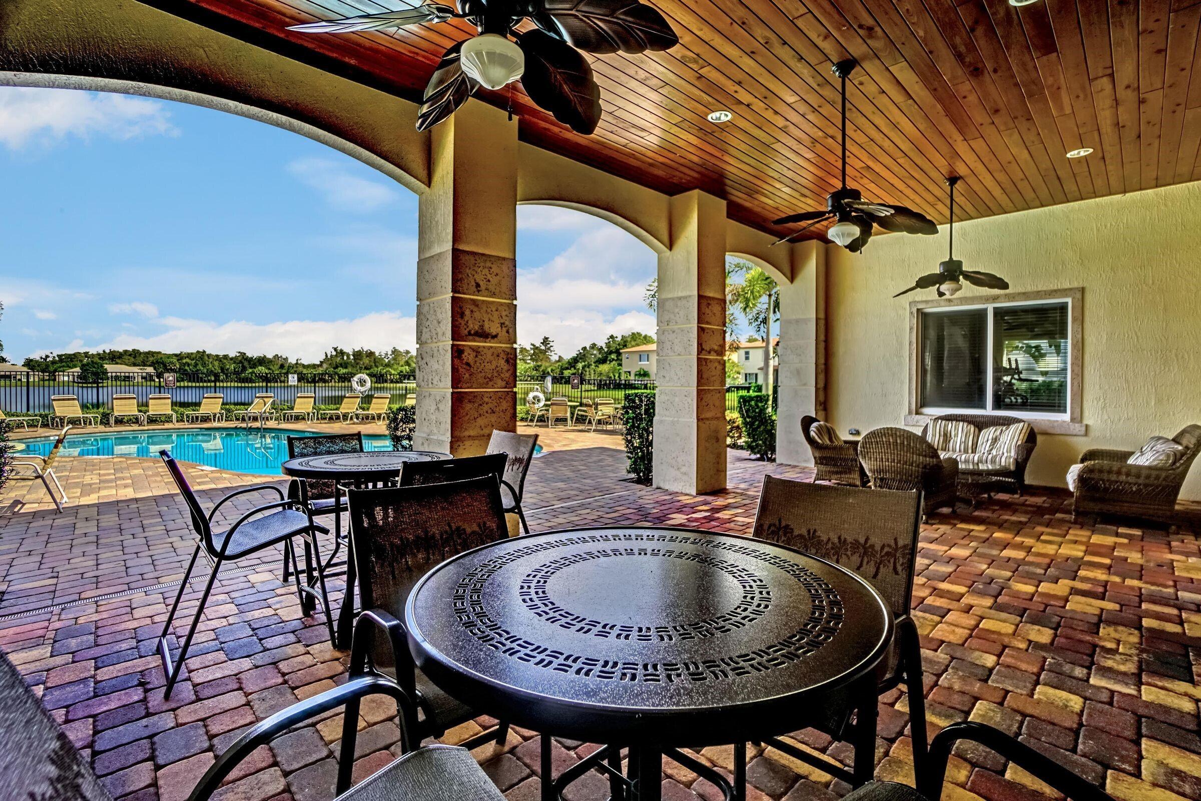 Spacious semi-detached townhouse that feels more like a house. Ceiling fans in all 3 BRs, great room and outdoor patio. Great natural light, high ceilings and luxurious finishes. White kitchen with SS appliances and granite CT. Huge MBR w/ his and hers WIC. Stairs and entire 2nd floor boast authentic gleaming hard wood floors. First floor has ceramic tile on the diagonal and stylish plantation shutters. All window treatments stay. Hurricane doors and windows. Newer A/C unit (2019). Large screened patio (furnished). Heated community pool, clubhouse, gym, billiard, ping pong, tot lot are just some of the amenities. Only 2.5 miles from Turnpike, 15 minutes to airport, downtown and beaches. Top rated private schools in close proximity as well as shopping and restaurants.