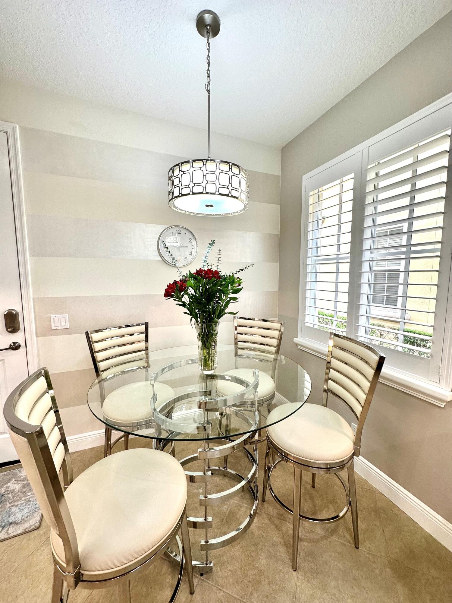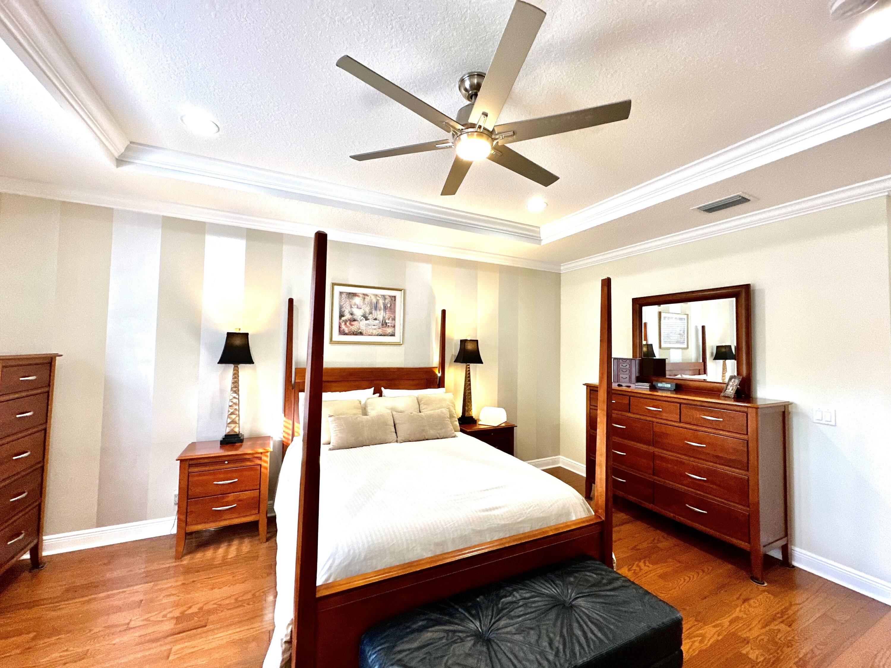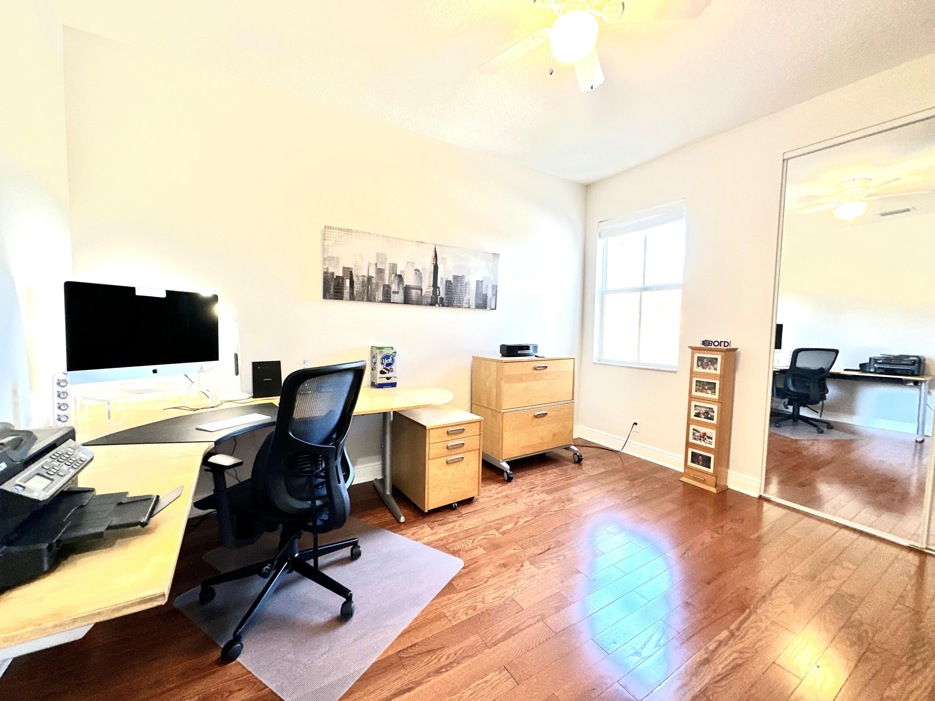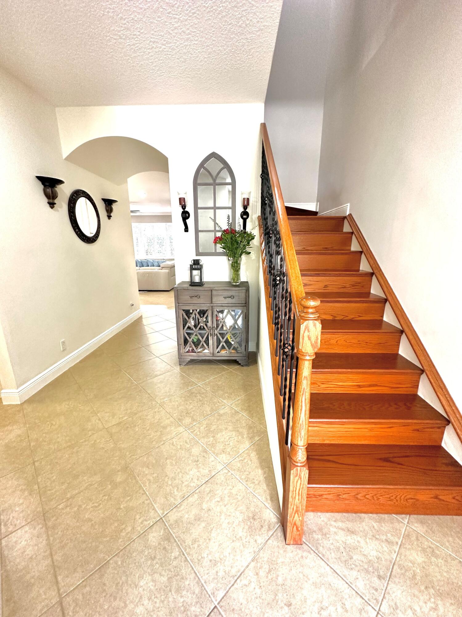 Spacious semi-detached townhouse that feels more like a house. Ceiling fans in all 3 BRs, great room and outdoor patio. Great natural light, high ceilings and luxurious finishes. White kitchen with SS appliances and granite CT. Huge MBR w/ his and hers WIC. Stairs and entire 2nd floor boast authentic gleaming hard wood floors. First floor has ceramic tile on the diagonal and stylish plantation shutters. All window treatments stay. Hurricane doors and windows. Newer A/C unit (2019). Large screened patio (furnished). Heated community pool, clubhouse, gym, billiard, ping pong, tot lot are just some of the amenities. Only 2.5 miles from Turnpike, 15 minutes to airport, downtown and beaches. Top rated private schools in close proximity as well as shopping and restaurants.