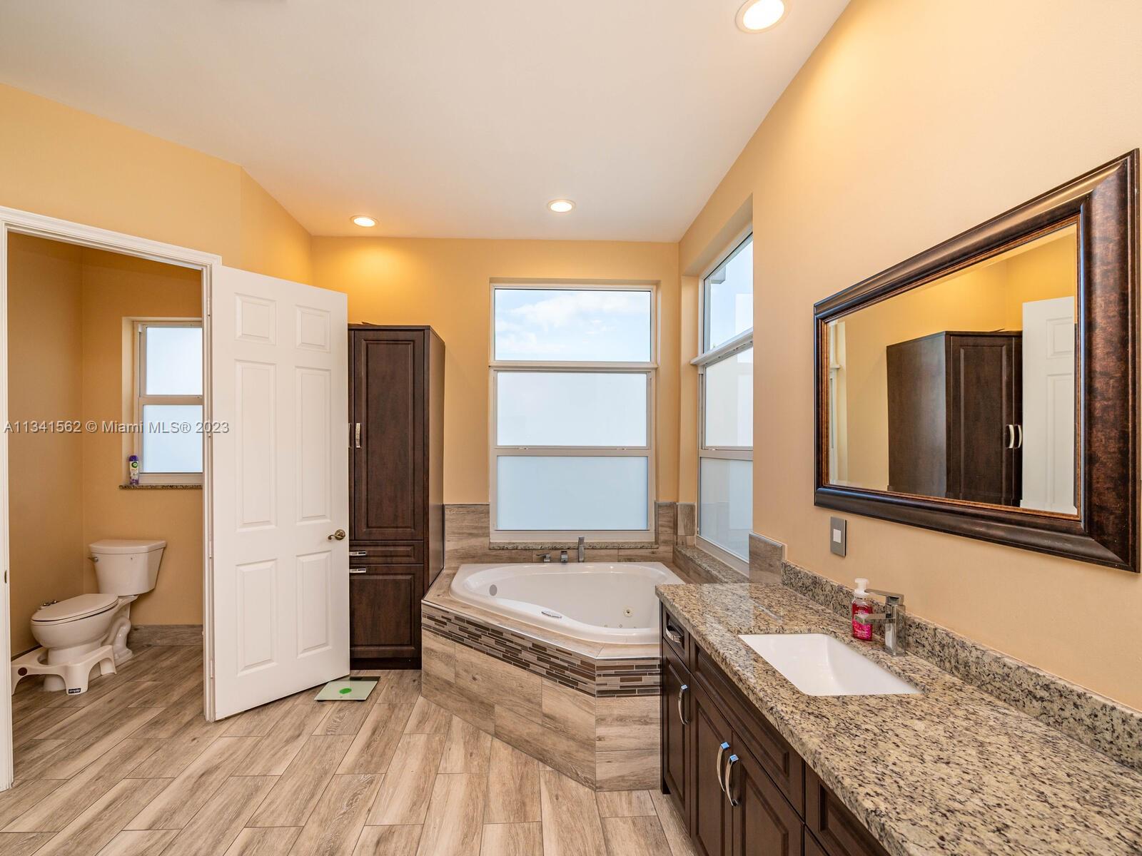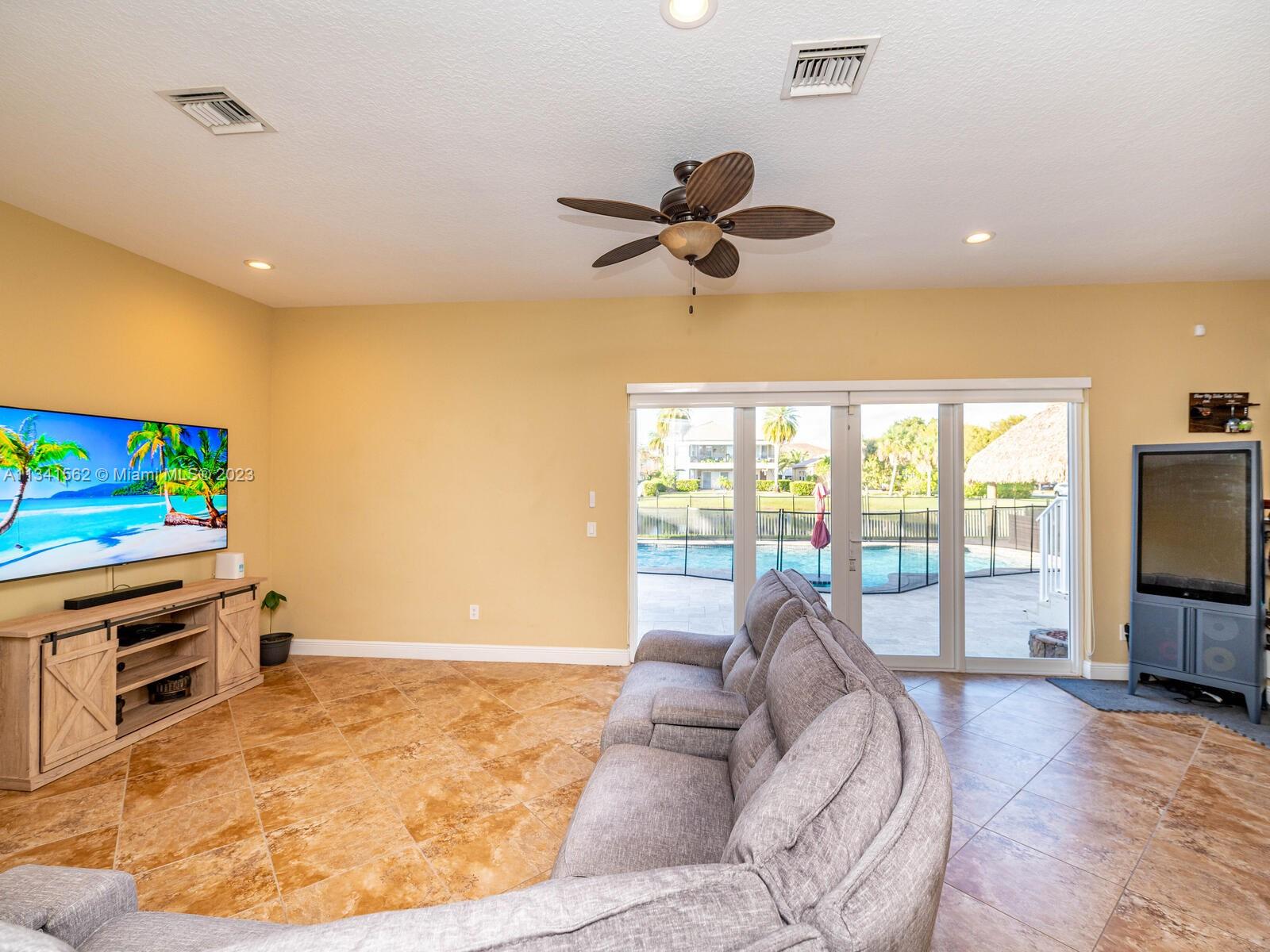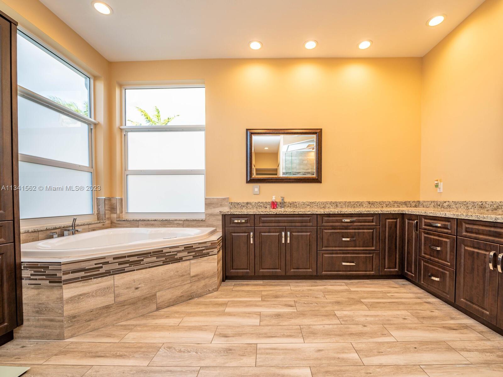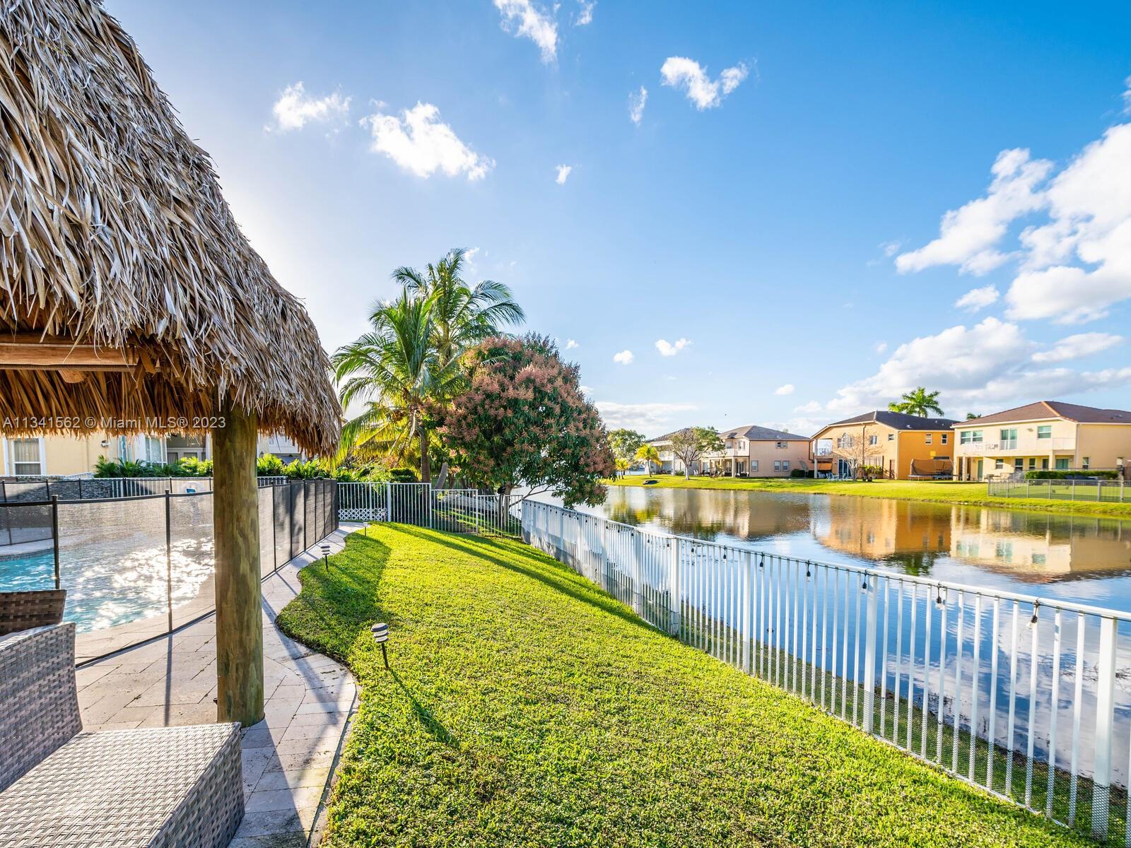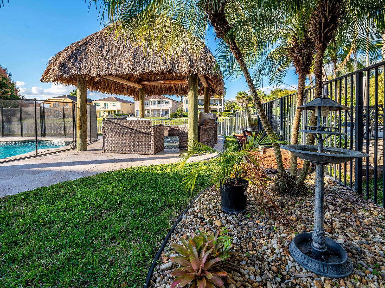 Exquisite Pembroke Pines Pool Home in the sought after community of Lido Isles. A 5/3 with one full bedroom and bath downstairs. Newer impact windows and doors too. This spacious 5/3 bath, 3 car garage sits on a lake front with Tiki Hut (Newly Thatched) for hours of entertaining and watching the sunsets. The saltwater pool was installed in 2018 and receives weekly service by a pool specialist. Fresh paint on the exterior of home. The extremely high ceiling in the foyer makes for a dramatic entrance. Tile and hard wood floors throughout. Separate formal dining room and a very spacious newly remodeled kitchen with lots of counter space and stainless-steel appliances. Your Family/Living area has double glass doors for easy viewing of the lake and pool. (Safety gate installed).