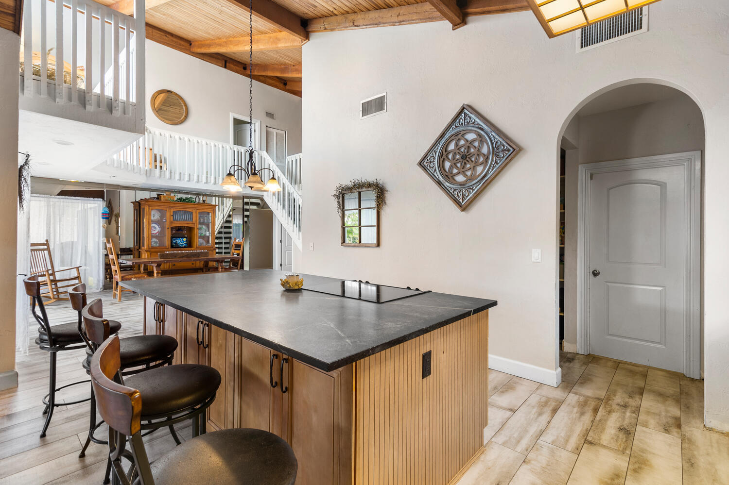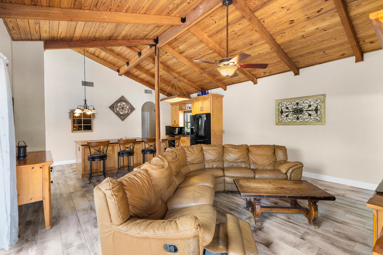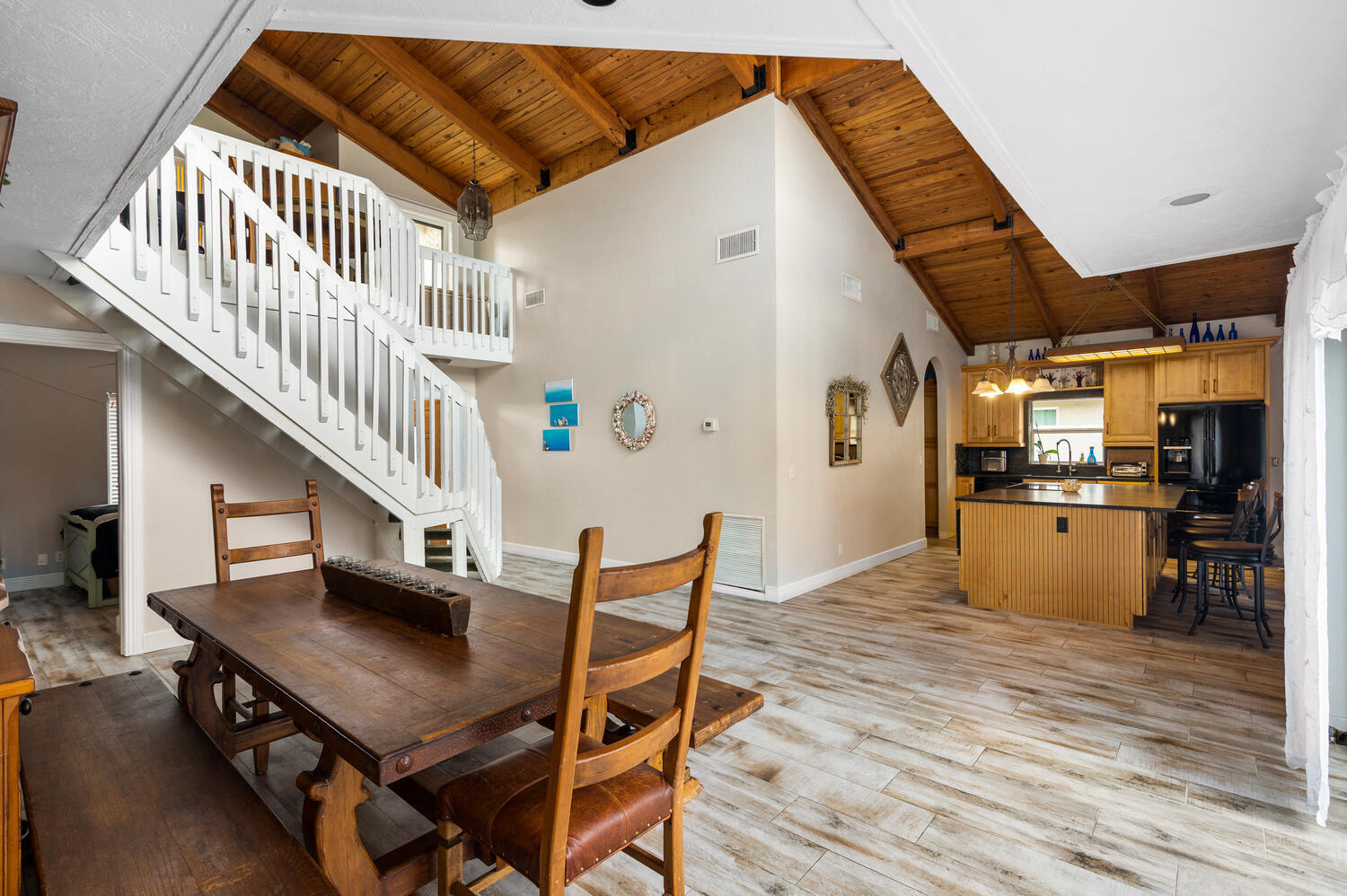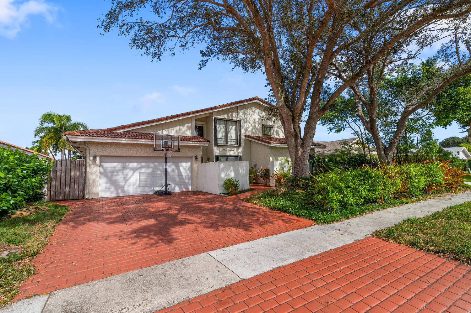 Spacious 2 story, 4 bedroom, 2 bathroom, + large loft , waterfront, pool, home on canal in desirable Amberwoods. Features include an open floor plan with separate living and family rooms, soaring exposed wood beam ceilings, custom kitchen with island, wood cabinets, and walk in pantry. The primary suite is upstairs with walk in closet and tub in bath along with large loft and wrap around interior walk way. 3 bedrooms downstairs. Finished, air conditioned garage with hurricane rated garage door and automatic opener. Accordion hurricane shutters throughout with impact windows and doors in living areas. Ideally located in an A rated school district.