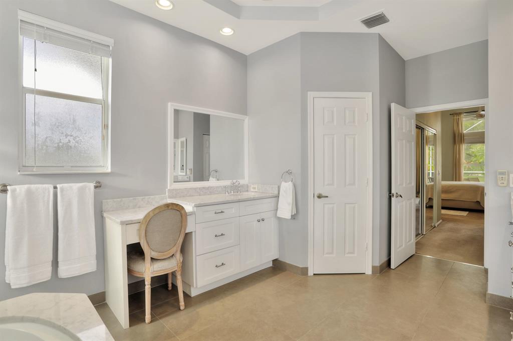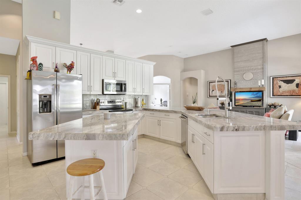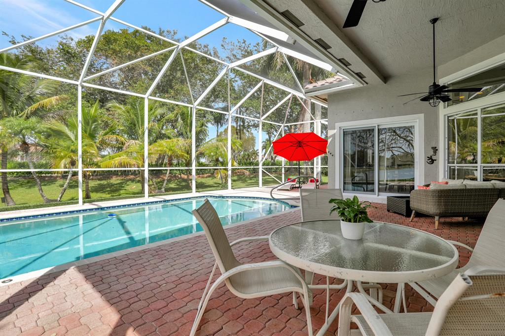 Welcome home to Boca Falls! Beautiful, renovated, Monterrey model home on a cul-de-sac in West Boca Raton's highly desired, luxurious and family oriented Boca Falls man gated community. Large 0.33 acre lot (developer lot) with private and beautiful water views, large spacious backyard and screened, covered lanai with salt water pool. NEW ROOF in 2023, completely remodeled and renovated open floor is designed around the grand central living area with 15 ft ceilings. Custom kitchen cabinetry, granite countertop kitchen and breakfast area with open views of the grand room/media center and separate dining/sitting room with white porcelain floors. The primary, oversized bedroom with a luxurious and elegant bathroom is a private oasis overlooking the pool and lanai, ideal for enjoying