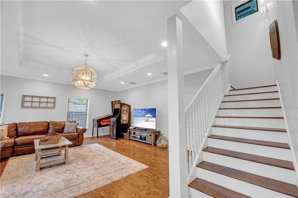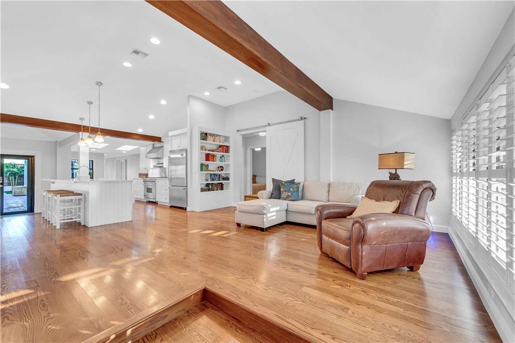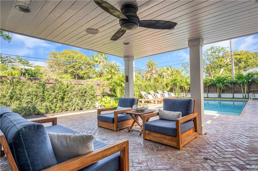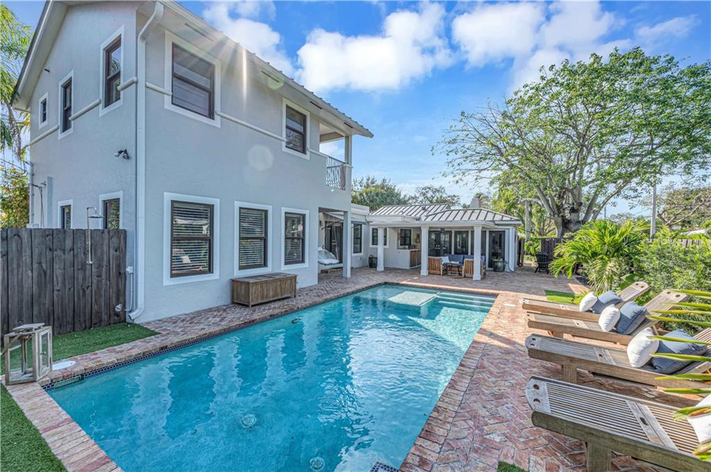 A picturesque corner property in the heart of Victoria Park. This updated home welcomes you through the new front entrance to vaulted ceilings, rich hardwood floors and lots of natural light. At the center of the home is a magnificent kitchen with cool marble countertops, deep cabinets, Viking appliances, a breakfast nook and dry bar. New hurricane-impact rated French doors add romance to the dining room and open to a roofed patio with a wet bar . The sparkling, heated, salt-system pool in lush is kept private by high thick hedges in the newly landscaped garden. This home has two owner suites, one up and one down. A second living room is perfect for gathering and faces the back yard. The standing seam metal roof is less than 2 years new adds a handsome top to the newly painted exterior.