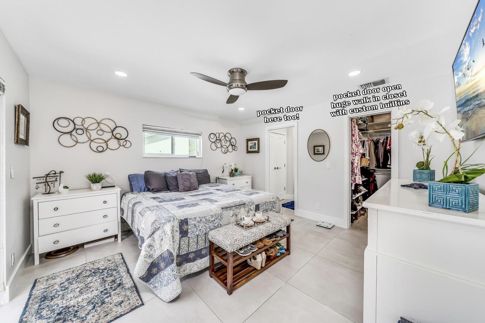 Wow! 4 Bedroom 2 Bath 2 Car Garage Pool & Waterfront Home on a Wide Canal on a large 8,250 square foot lot in American Homes! Dramatic entrance with soaring cathedral ceilings, skylights, and a wall of sliders that highlight the pool and lush tropical landscaping of the backyard. Extra-open floor plan with split bedrooms. Tile on diagonal in living areas, tile in the master bedroom, and wood laminate in the 3 guest bedrooms. Renovated kitchen features wood cabinets with granite counters and backsplash plus stainless appliances including a double French door refrigerator. Fabulously updated master bathroom plus large walk-in closet with customized built-ins--both with high-end pocket doors that give you extra space. Brand new roof from 2021 with transferable warrantee.