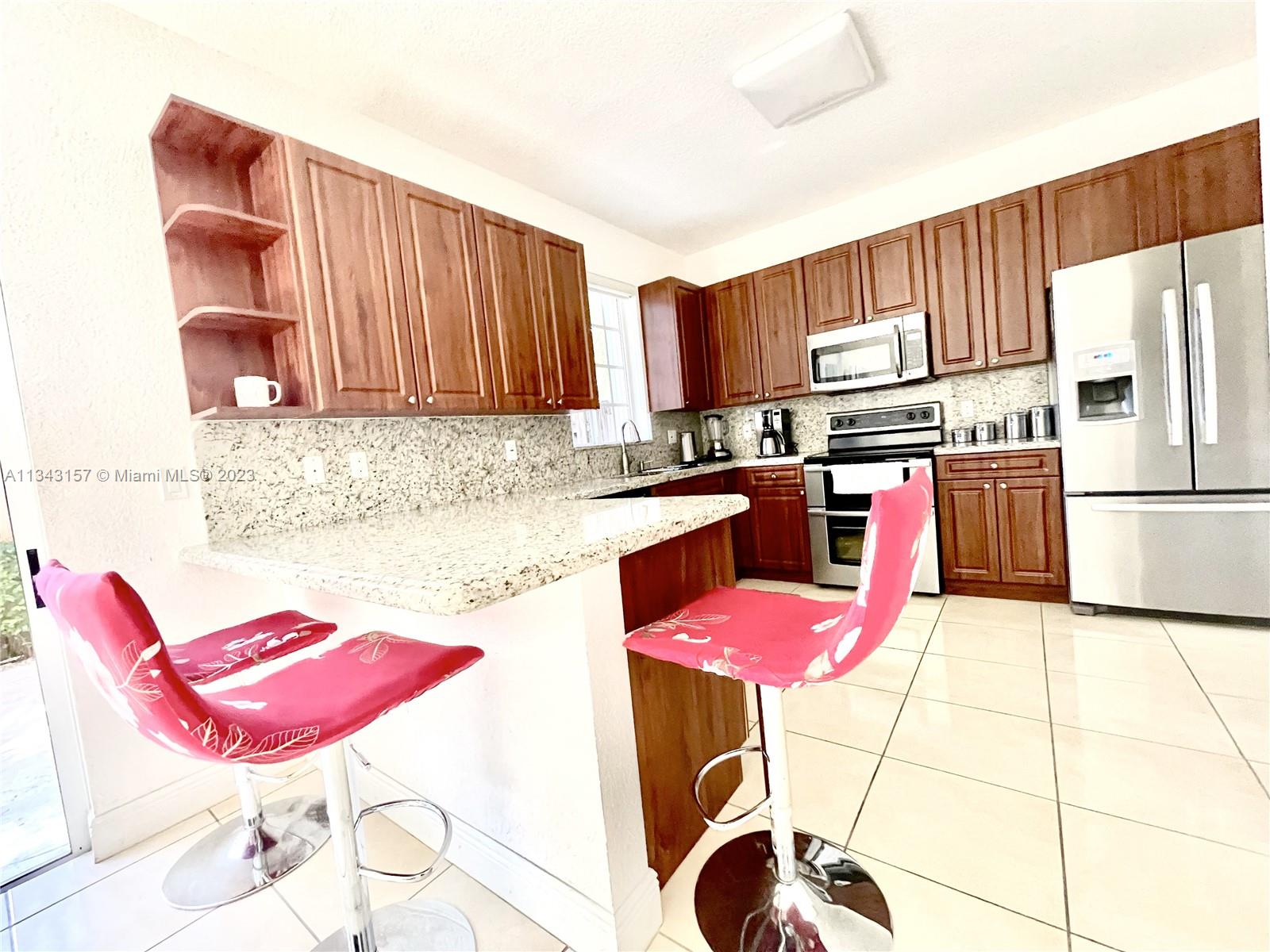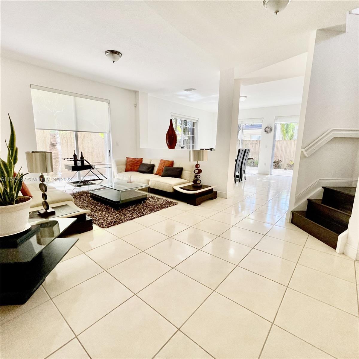 4 Bed/3.5 Bath, Split Level, Gated Community, Grade A Schools, SS Appliances, Marble Countertops, Laundry Room with Full Size Washer/Dryer and Small Washtub, Ceramic Tile Downstairs, Wood Laminate Flooring Stairs and 2nd Floor, Spacious Primary Bedroom with Oversized Walk-in Closet, Large Primary Bath with Double Sinks; Marble Floor in Backyard and Garage. Two-Car Driveway, Two-Car Garage, Hurricane Shutters for all Windows and Doors. Security System. Close to the Library, Churches, Dolphin Mall, International Mall, Miami International Airport, Restaurants and FUN places, easy access to the Turnpike.