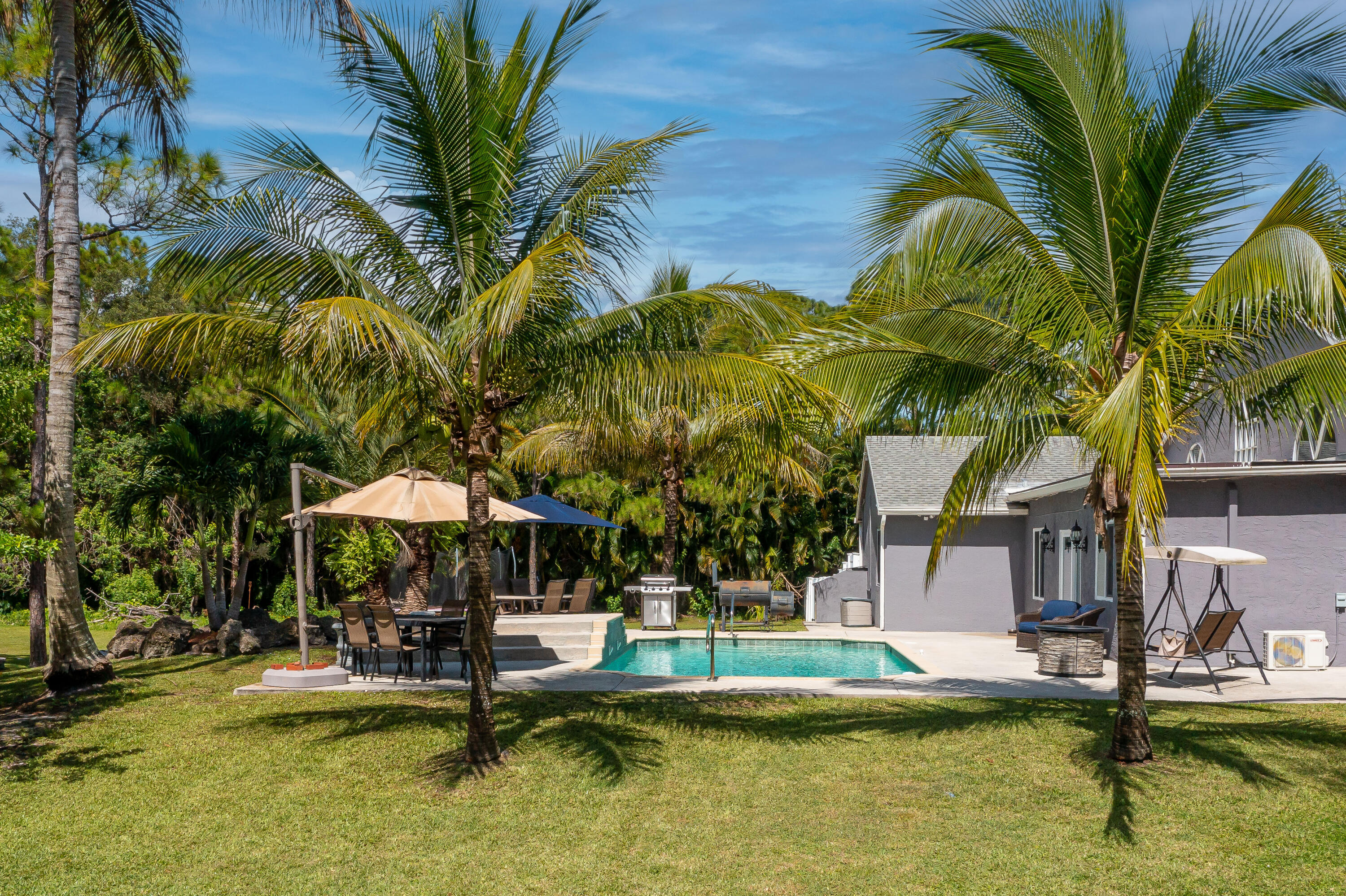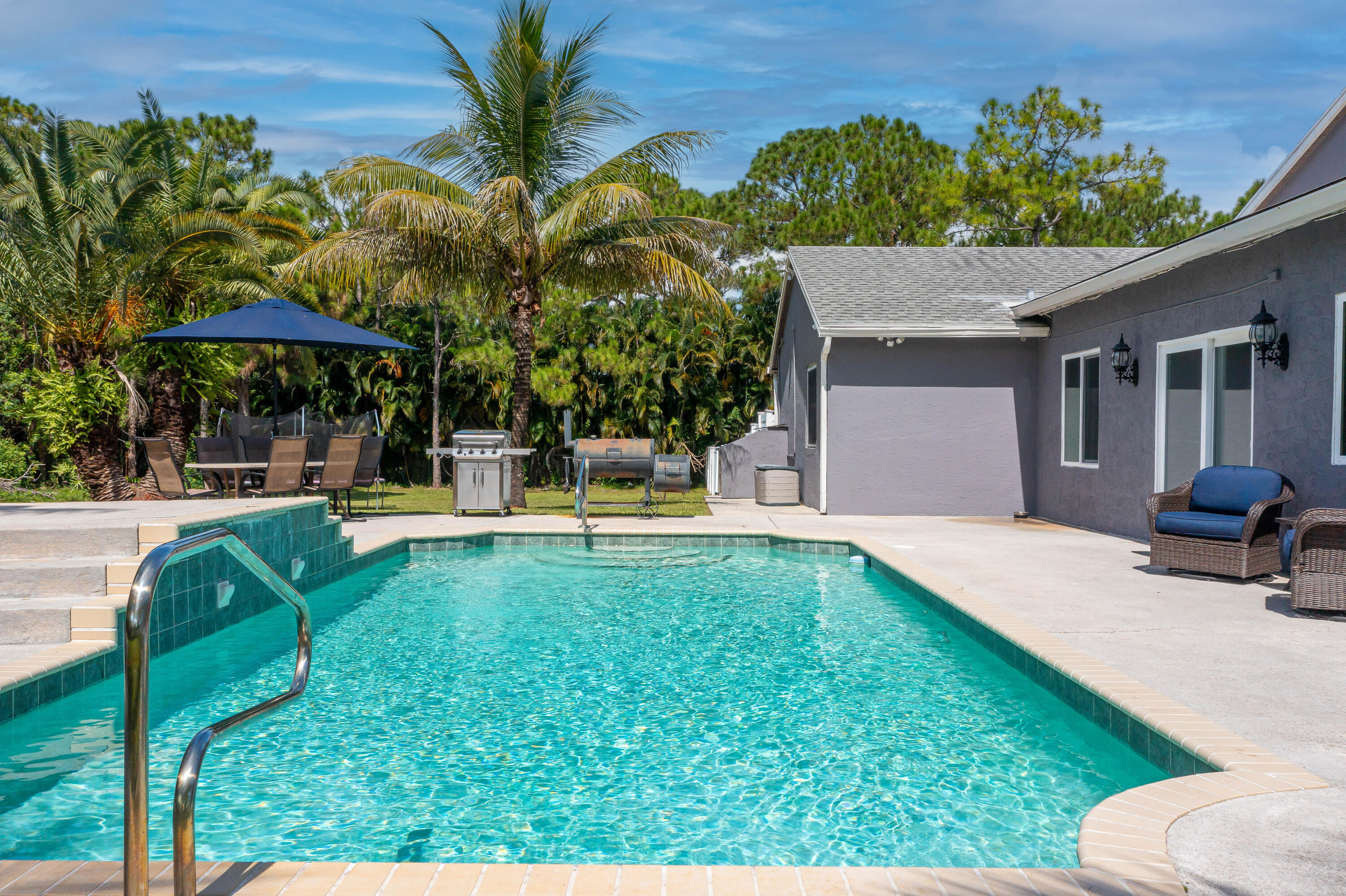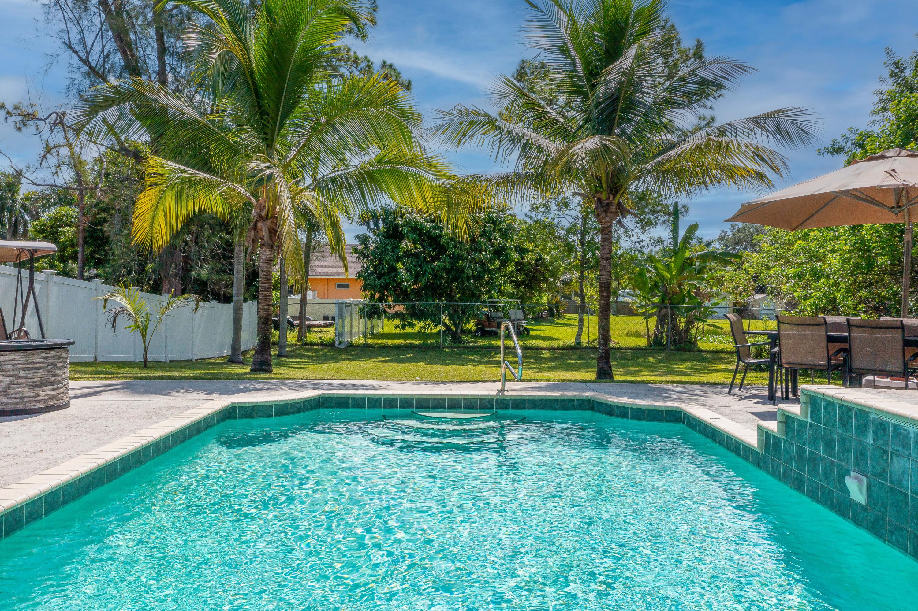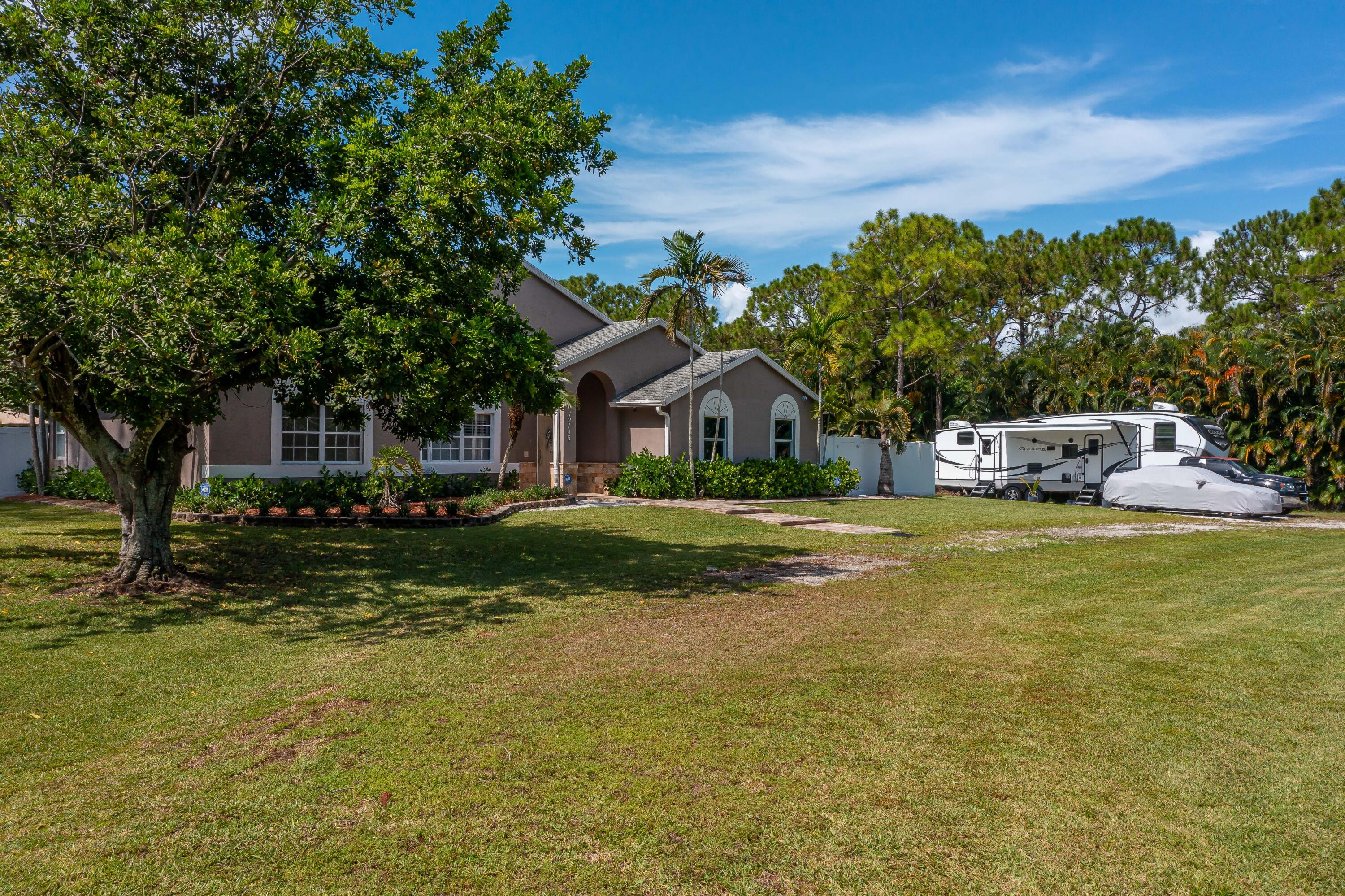 Well maintained CBS home in the heart of The Acreage. No HOA, No restrictions! Bring your boat, RV and all your toys to this little beauty. This 4br/2bath/Den home offers everything you need. Split floor plan with owners suite on east wing and other 3 rooms on the west side. Larger 4th bedroom comes with private fenced patio area to the side. Enjoy the spacious land with 1.64 acres to play with, fully fenced and beautifully maintained yard. There are 2 additional sheds on the property for storage of outdoor equipment. Large patio and pool area in the back which allows for great year round entertaining. Roof 2007, AC 2018, PVC fence 2022. Easy access out to I95, Turnpike, PBI Airport, white sandy beaches, shops, restaurants and world famous golf courses. Pride of ownership lives here!