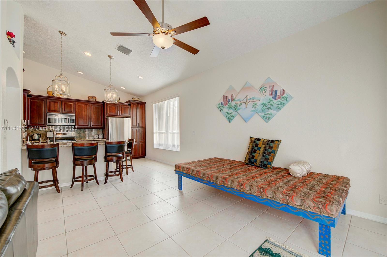 Fall in love with this 3/2 Gem on a Wide lake in High Demand Pembroke Falls. Features Chef's Kitchen with Granite, 42" Wood Cabinetry, Stainless Steel Appliances, Gas Stove. Ceramic Tile Floors, High Ceilings, Open Floor Plan, Whole House Water System, Gas Water Hater Alarm, Large Walk -In Closet Master, Screened Patio overlooking Wide Lake. 3 Mango Trees, Custard Apple Tree. Sprinkler comes from lake, plus much more. Used as a second home and meticulously maintained. (Furiture Negotiable) Pembroke Falls is a resort style gated community with Clubhouse, Gym, Tennis, Pool. Maintainance includes Cable Internet, Ammenities, 24hr manned security, plus more. Minutes from A+ schools, Great Shopping, Fine Dining, and easy access to Highways and Places of Interest. Priced to Sell Fast!!!! Hurry!!