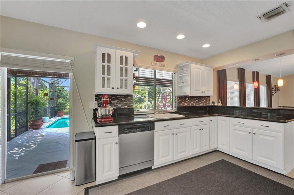 Beautifully updated 4-bedroom single story home with no HOA. Home offers an open floor plan, volume ceilings and an abundance of natural light. Walk to parks, restaurants and shops. Private yard with water views Calcutta Porcelain tile pool deck. Granite counter tops, stainless appliances tile backsplash and custom cabinets. Updated flooring many impact windows and updated lighting makes this a must see. Easy to show.