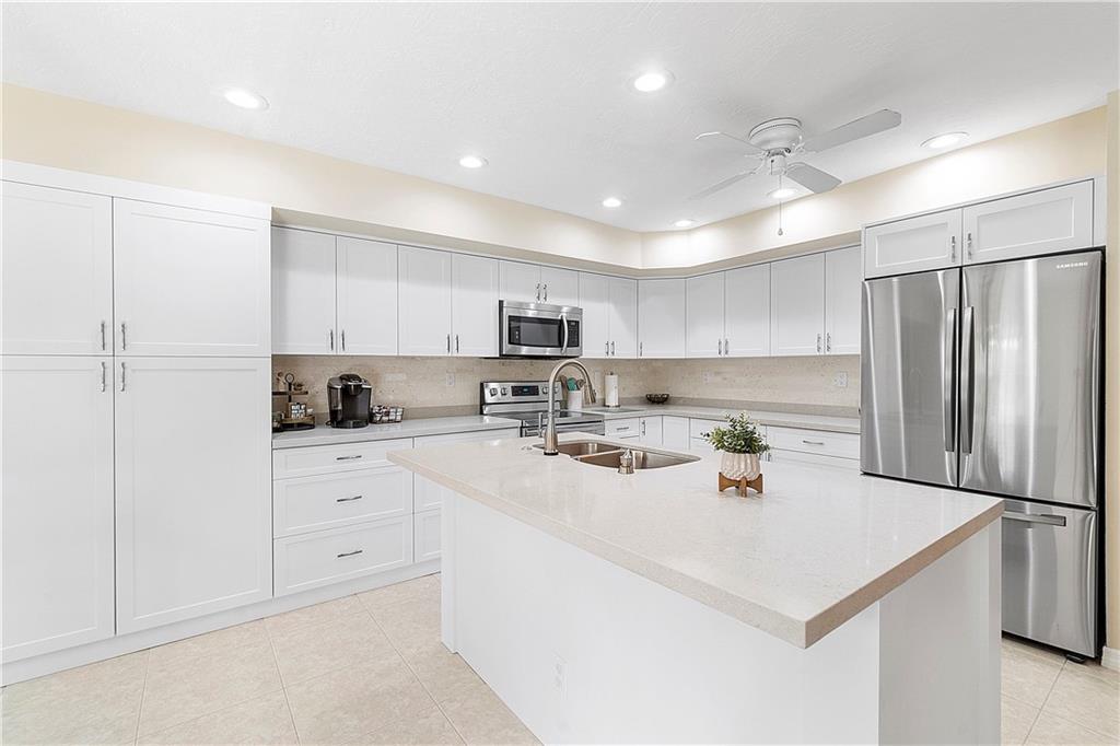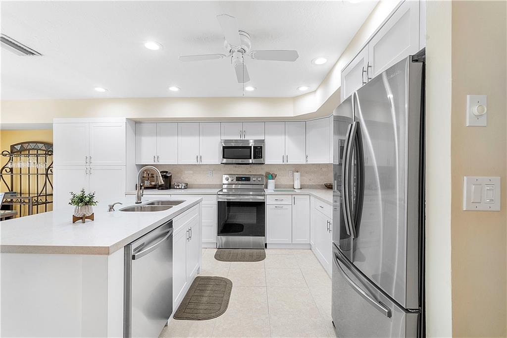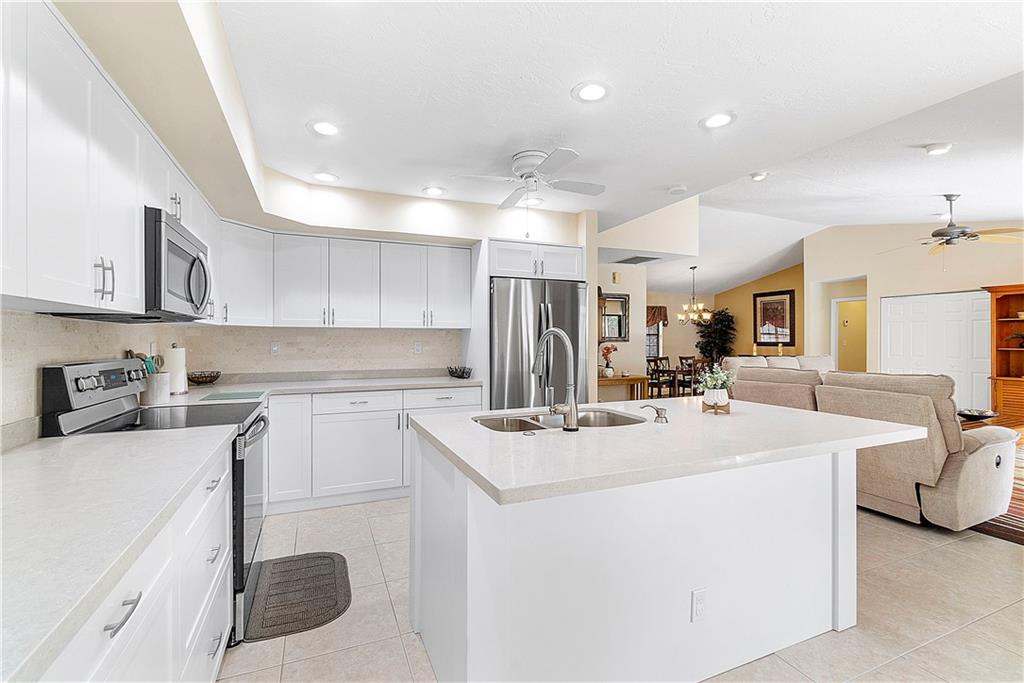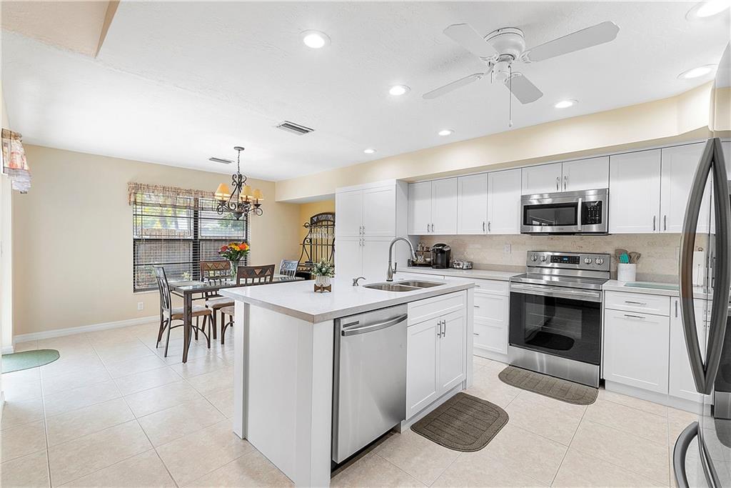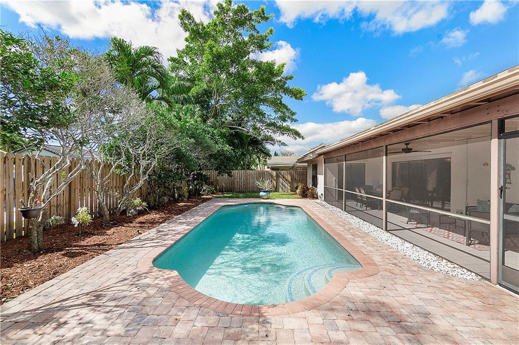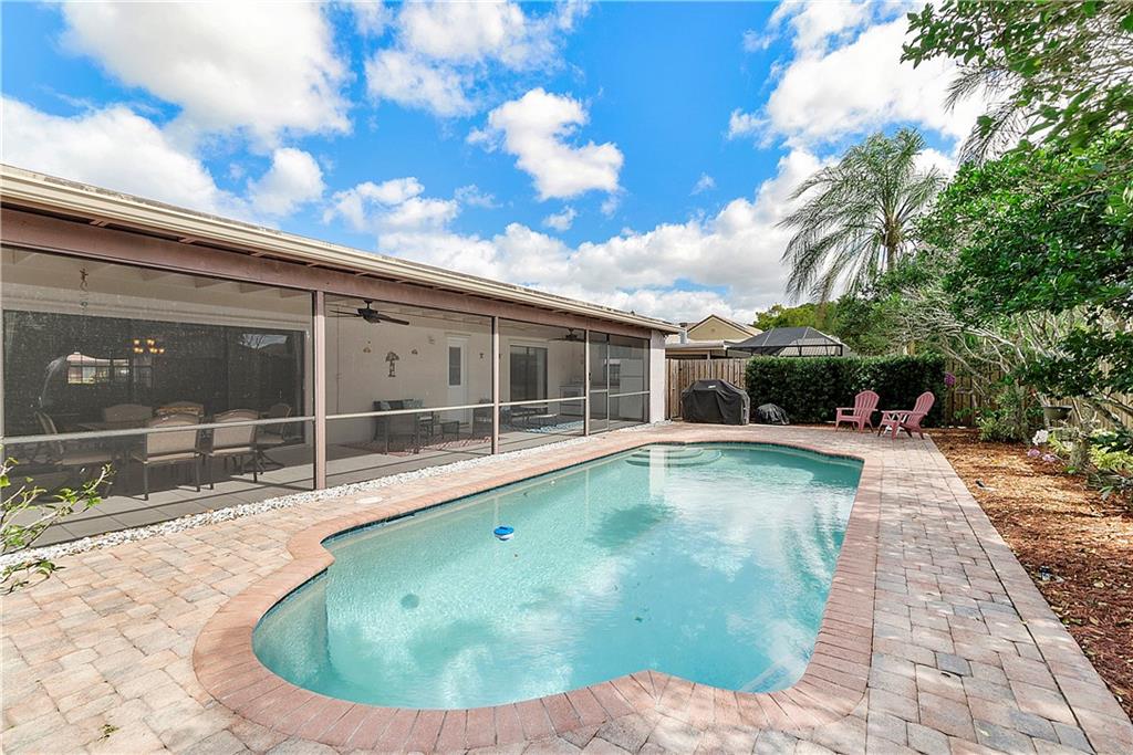 Absolutely Beautiful 4 BR 2 BA Pool Home with NEW KITCHEN and NEW BATHROOMS! Open, Flexible Floor Plan with Triple Sliders opening to Huge Covered, Screened Patio with Summer Kitchen! Kitchen updated 2021 offers New SS Appliances, White Cabinets with Quartz Counters, Pull Out Pantry Shelves, Deep Drawers for Pans, Soft Close and Lazy Susan's. Primary and Guest Bath updated 2020 with New Cabinetry and Quartz Counters. Neutral Tile throughout Living Area. Open Pool with Baby Fence and Paver Patio plus New Fence, 2020! Roof Replaced 2015. Two A/C Units, Bedroom A/C Replaced 2021. Primary and 2 Guest Bedrooms have Closet Organizers. Full Set of Hurricane Panels, 2005. New Hurricane Impact Front Door & Impact Garage Door, 2020. Interior Laundry Room with W/D & Cabinets. Walk to Cypress Park.