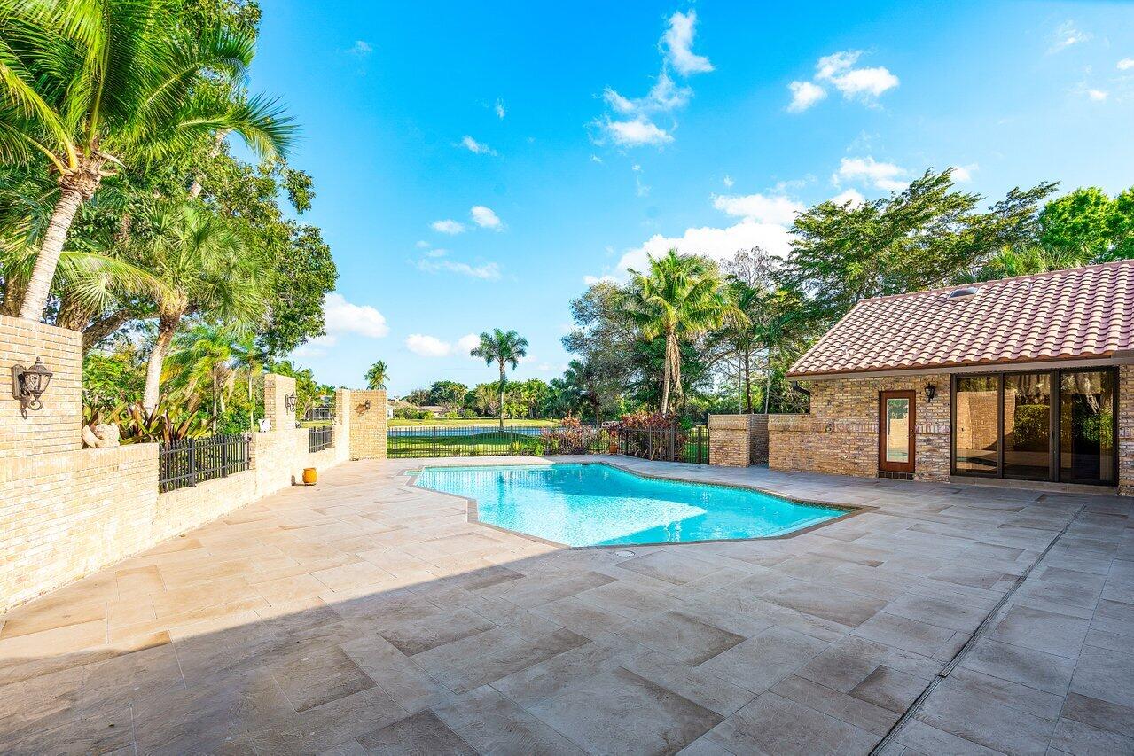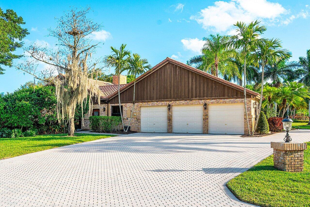 Introducing an incredible opportunity to make this prime estate your perfectly designed forever home. Situated on over one acre, this plush, corner parcel is a prime location in highly sought-after Whispering Woods. A guard-gated ''tucked away'' community, Whispering Woods provides a country feel within a city vibe. This impeccably maintained lakefront estate boasts over 4,600 square feet under air with 5 bedrooms, 4 full baths and 2 half baths. An incredible circular driveway transverses the property while connecting to your 3 car side load garage. Current configuration provides a wonderful living space with oversized rooms, fireplace, cedar closet, sauna & vaulted, tongue in groove ceilings as well as impact windows and doors. New A/Cs in 20 & 21. One of the best opportunities in Broward
