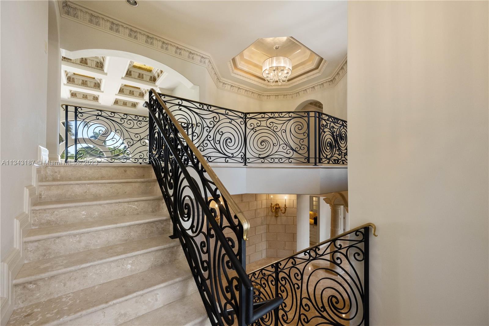 Located in most prestigious Isles in Las Olas, this private and secure estate boasts 100 feet on the water. The property is on the widest/deepest canal in the Isles. Custom built in 2002 with Exceptional finishes/craftsmanship throughout. Newer roof (2021). The Estate includes a formal Living Room with coffered, gold foil ceilings, Neff Cabinetry, Marble floors, custom baseboards/plaster crown molding. Beautiful bronze staircase, home theater, 2 laundry Rooms, 4 car garage, lighting system, outdoor gazebo with kitchen. Large custom pool with built in separate Jacuzzi, concrete dock, cabana bath, large covered patios. Royal Palm Dr offers underground utilities, natural gas and higher elevations. Property has security entry door gates and security cameras in and out.