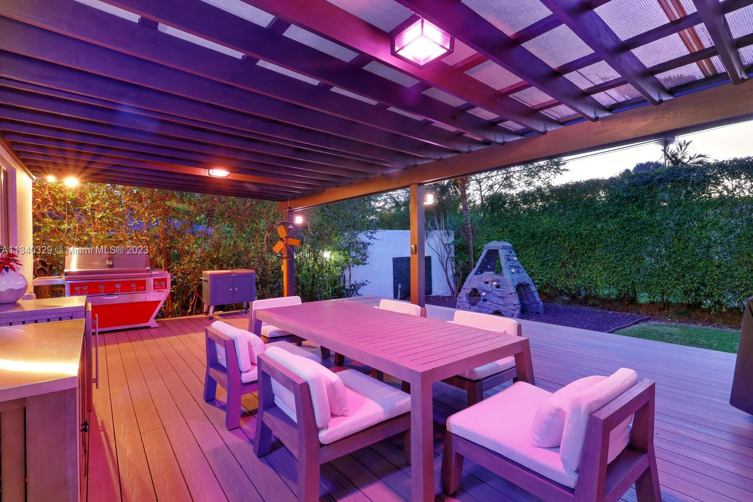 This stunning home in Coral Gables has undergone a modern renovation, making it an ideal choice for discerning buyers. The property includes 3 bedrooms & 2 bathrooms, & is located on a peaceful cul-de-sac. The interior features a recently updated kitchen & bathrooms, as well as hardwood & tile floors, hurricane impact windows, & a 2022 Trane A/C unit equipped with smart sensors, controls & UV light air purifier. In addition to a new electrical panel & tankless water heater, the home comes with brand new appliances, including a washer & dryer. The property's beautiful landscaping in the front & back yards adds to the sophisticated appeal, with the backyard featuring a new pergola & outdoor deck fitted with smart lights, which expands the outdoor living space by an additional 700 sqft.
