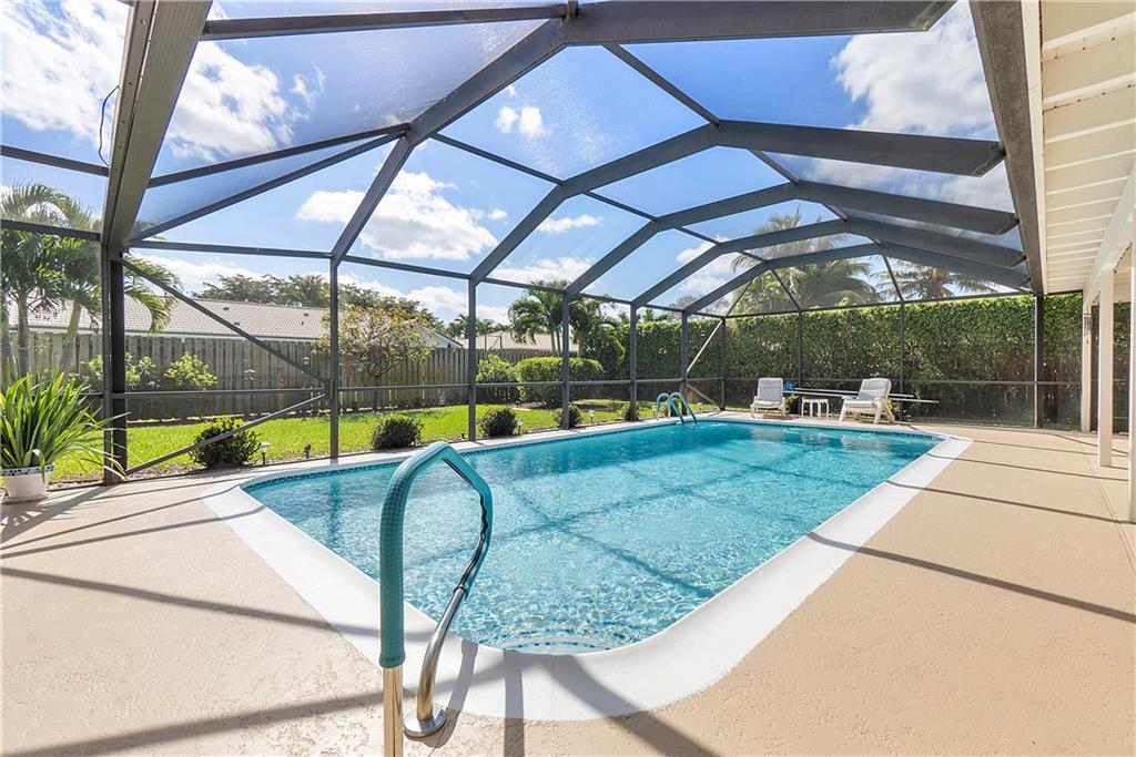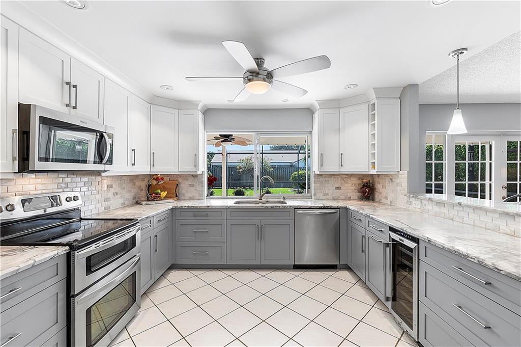 WOW! Wait until you see this stunning kitchen & gorgeous pool area! The ultimate pride of ownership shows in this beautiful 4 bed 2.5 bath Cypress Run home. So many great features: vaulted ceilings, fireplace, remodeled kitchen w/Shaker cabinetry, pull-out drawers, marble backsplash, sexy granite counters, snack bar w/seating, wine cooler, double oven, 2 pantries & French door refrigerator (all stainless steel appls). French doors lead to the oversized roofed patio, screened lanai, resurfaced pool, new cool deck & large yard perfect for pets & soccer games. Remodeled master bath & 1/2 bath, many walk-in closets & large indoor laundry room. A quiet street w/fantastic neighbors buffered by wide canals across the street, perfect for fishing/kayaking. No HOA!