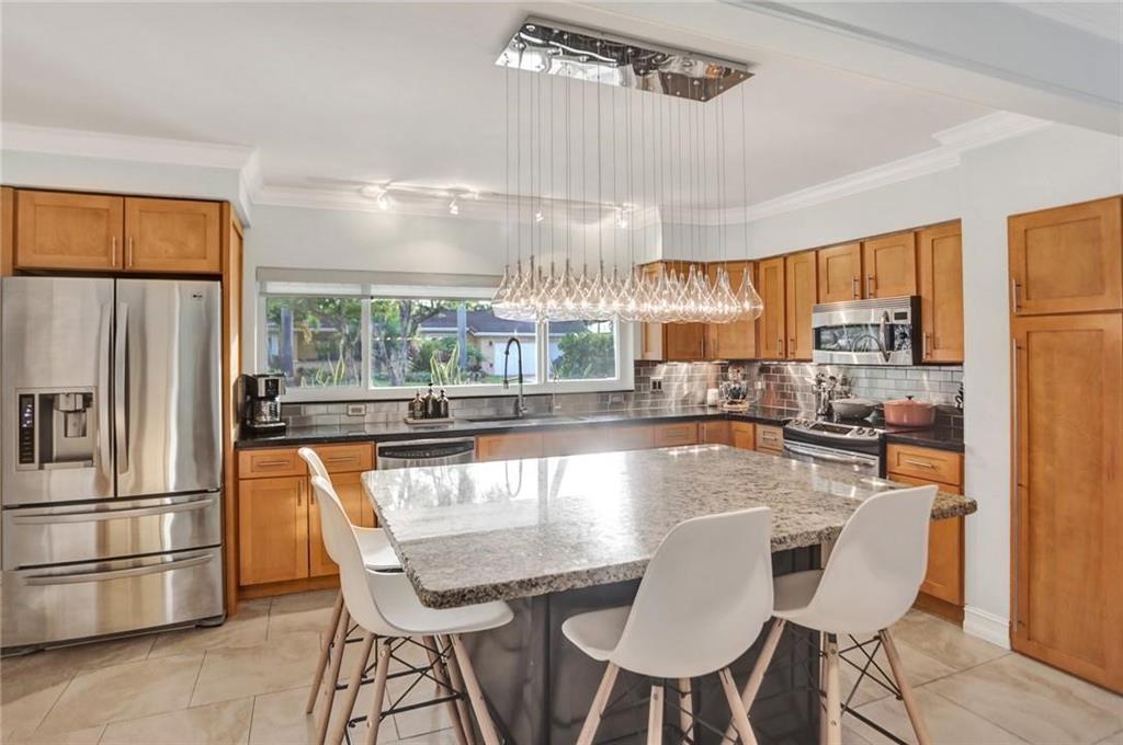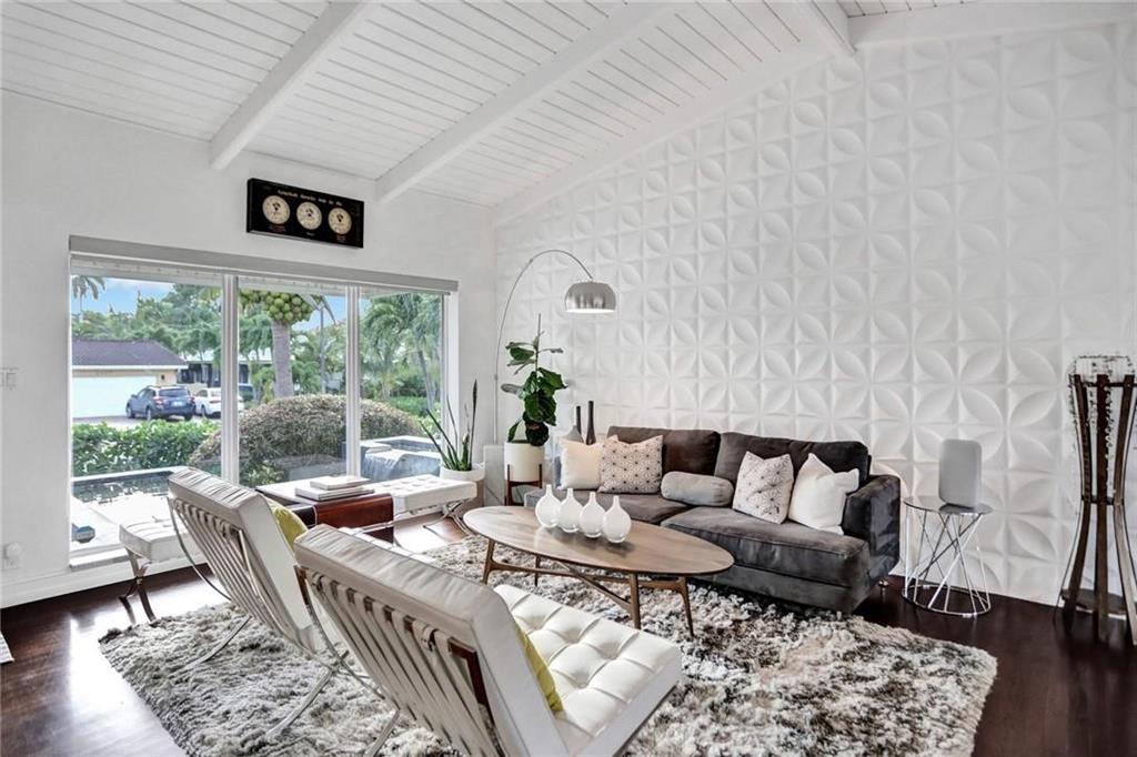 Desirable Coral Ridge Neighborhood in Bayview School District! Well-maintained Mid-Century Modern, multi-level home, designed by South Florida architect, Charles McKirahan, features 3BDRM, 2.5BA situated on a beautiful berm lot. Split bedroom floor plan, renovated second bathroom with Porcelanosa tile and European fixtures. Lower level features kitchen space with large island countertop and open living area with impact sliding glass doors leading out to the backyard oasis. Driveway and pool deck were completely remodeled in 2015 with travertine marble. Lush backyard features an oversized heated, salt water pool with built-in sun deck great for entertaining. Hurricane impact windows throughout, New A/C, full-size 2 car garage. This home is turn-key, move in ready.