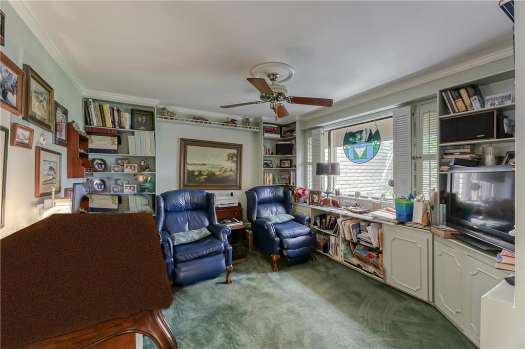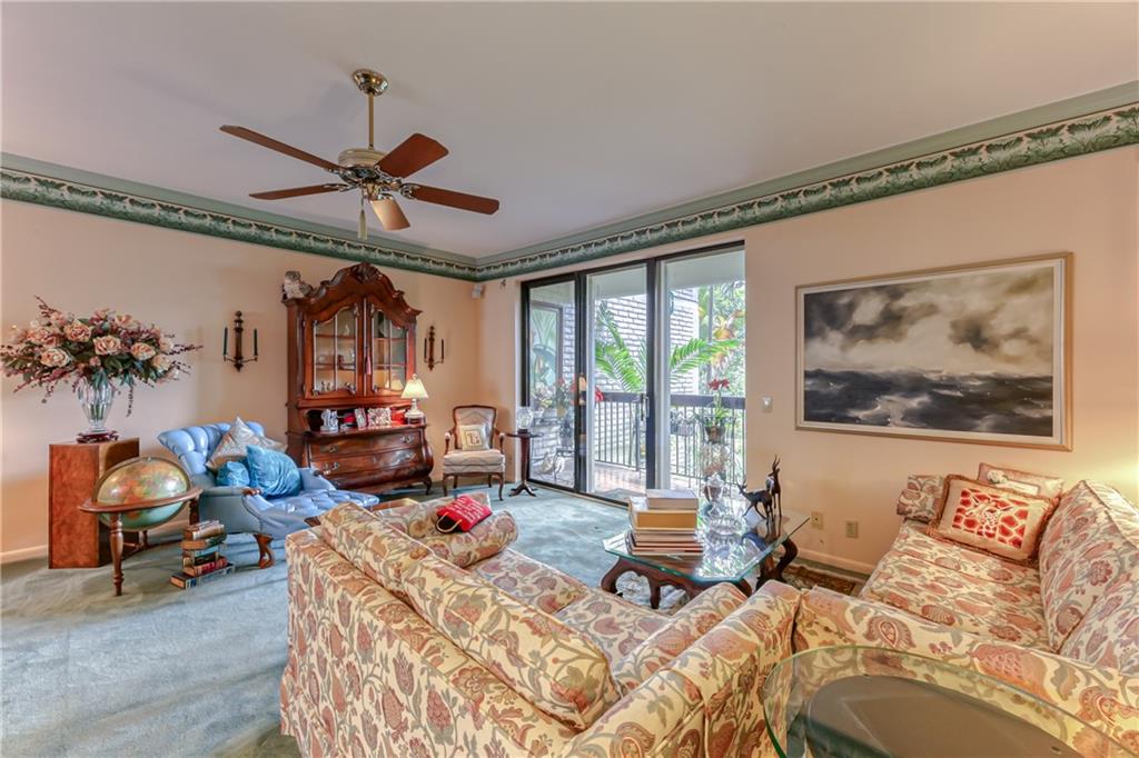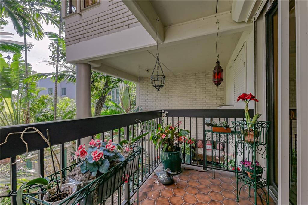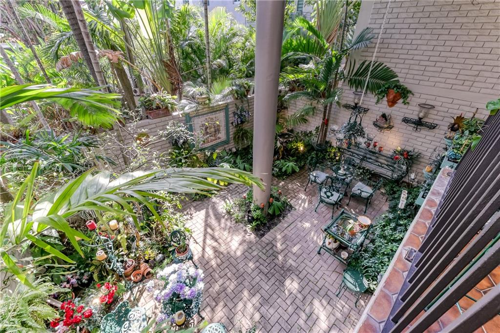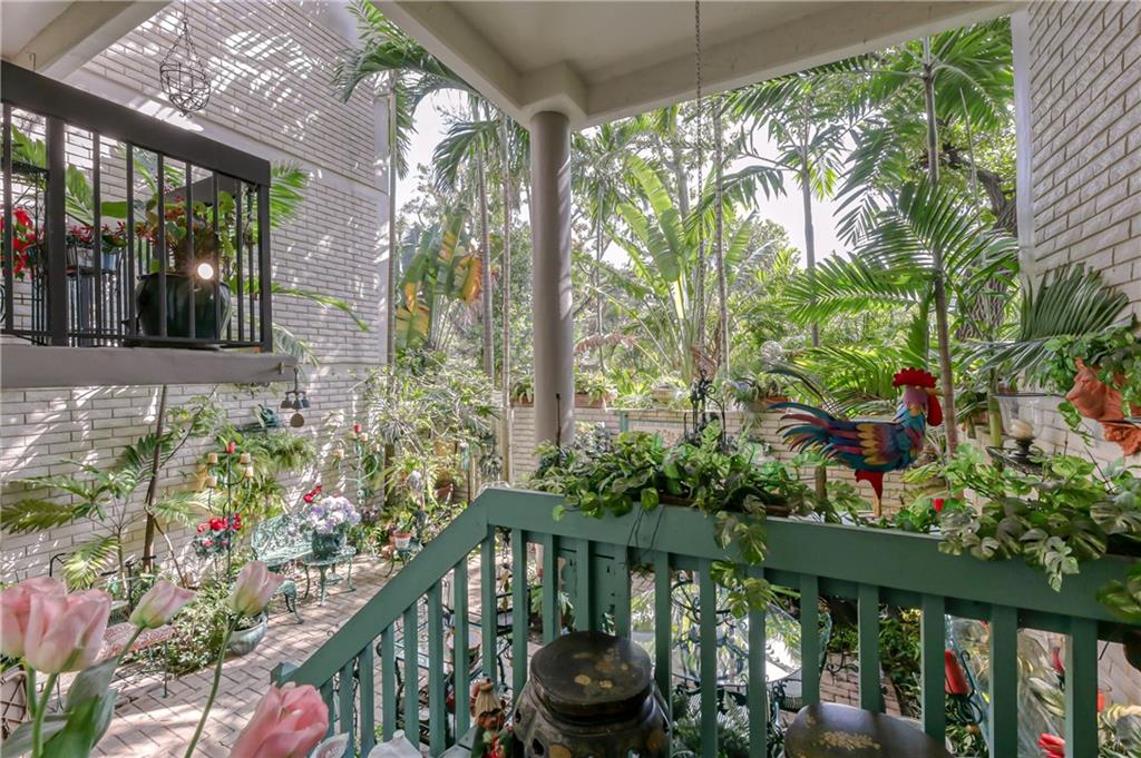 This Victoria Park Place townhouse has privacy in the back patio, with no other townhomes obstructing the breeze. This model has 2 bedrooms with an open den/office. Some owners have easily enclosed this area for a third bedroom. Large primary bedroom suite with dual sinks and two walk in closet. Main living area has a nice balcony overlooking the lovely garden patio. This unit has the A/C condenser located outside the back fence, so you do not hear that motor sound. Home has wooden Plantation shutters, protected by hurricane Roladen shutter system, metal front door, and impact garage door. #1408 is located "outside the gate", which means you have 2 parking spaces in front of your 2 car garage. Association coated roofs on in 2016. 2 pets OK. (Dining room chandelier NOT included).