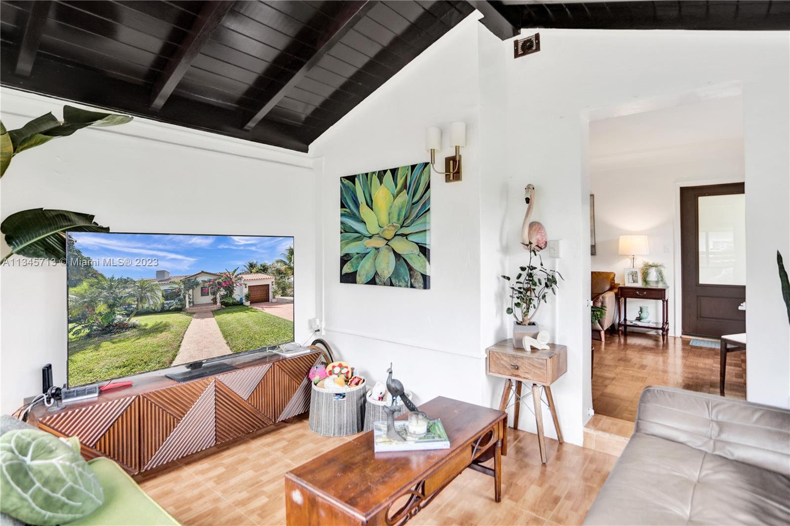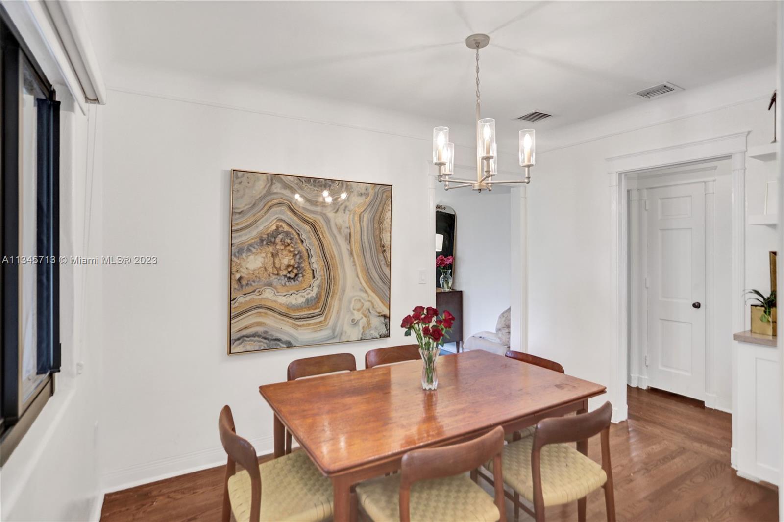 Stunning One-Of-A-Kind Vintage 3 bed, 2 bath, 1,679 SF on oversized 8,100 SF lot. Welcome to your new home in the exclusive Miami Shores Village nestled on a quiet cul-du-sac. Resplendent home has been lovingly updated while preserving rare design features such as cove ceilings, Deco fireplace with Bas-relief, original hardwood floors, intricately carved moldings. Unique finishes include hand cut Moroccan Zellige tile, quartzite stone counters, tumbled marble tile, beverage bar, South African Braai outdoor Fireplace/Grill, Pergola. Primary suite w/spa tub, separate shower, walk-in closet. Impact windows & doors, new HVAC, updated electric, new SS appliances, new washer & dryer, keyless entry, Bluetooth irrigation. Showstopping Bougainvillea and bird of paradise grace the covered entryway.