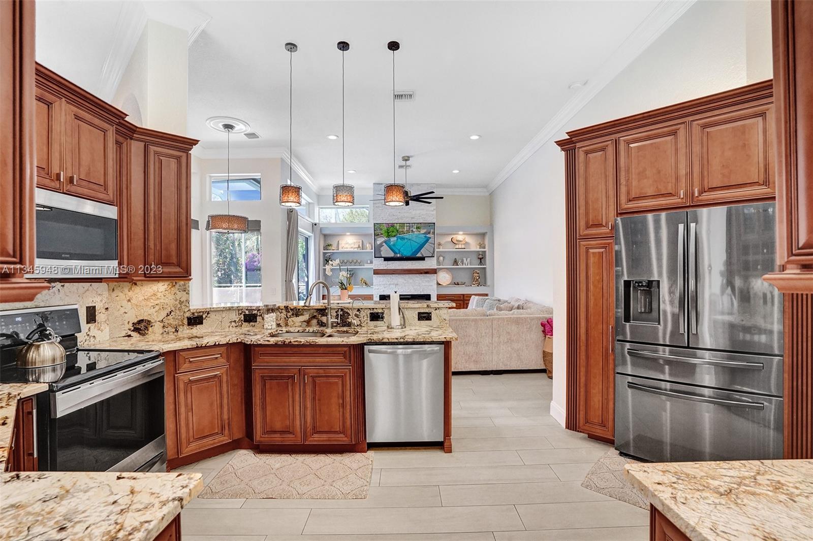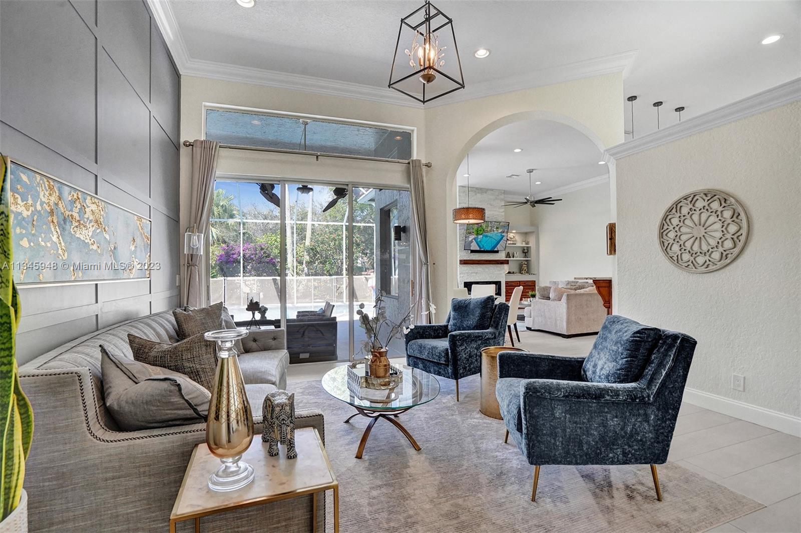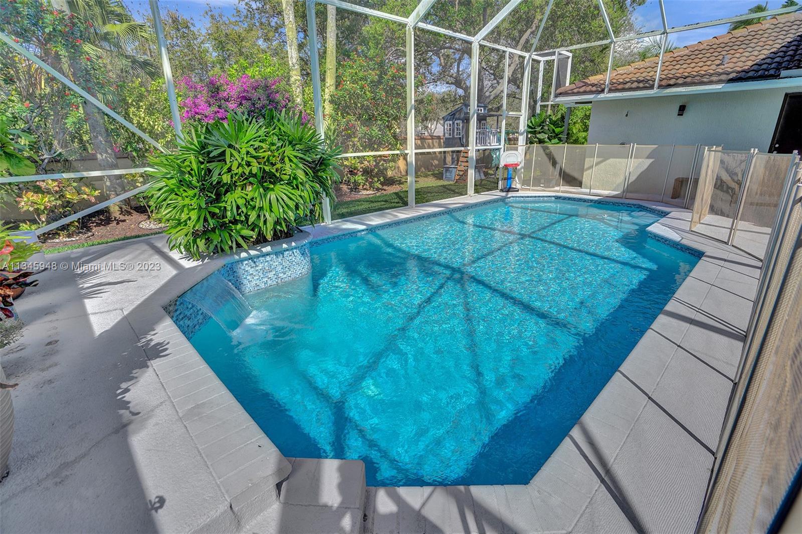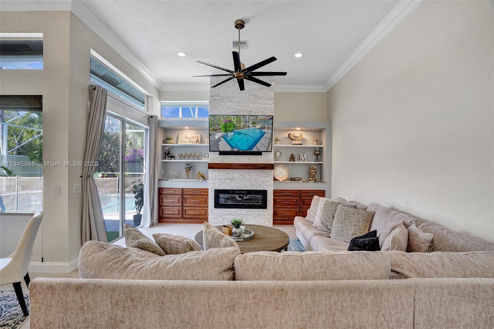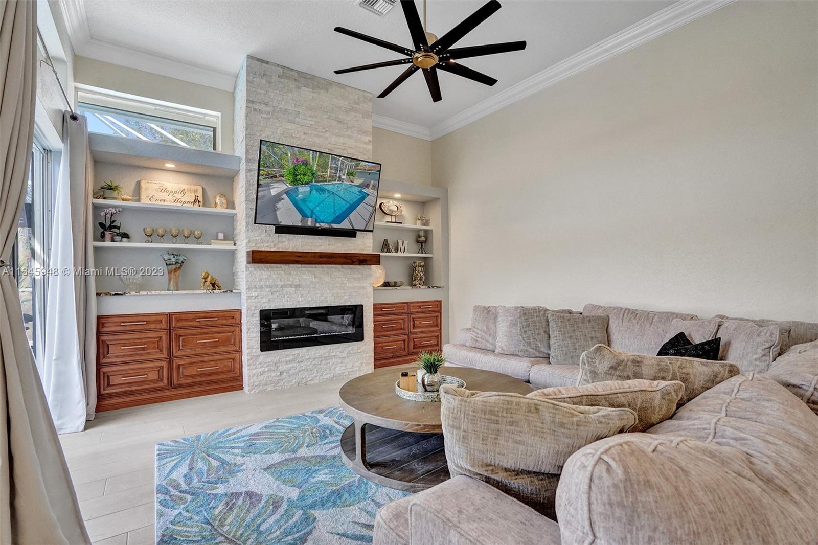 5/3 Triple split floor plan located in The Isles. This home has meticulous & impressive curb appeal. Large family room with fireplace that overlooks the screened saltwater pool. High vaulted ceiling, custom porcelain floors throughout the home, custom walls. Kitchen features Thomasville cabinets & high-end granite counter tops, wine refrigerator, newer appliances & eat-in kitchen. Built-in reverse osmosis filter for purified water. Pool resurfaced & new tiles with a waterfall & pool bath (Shower). Owner’s suite is exquisite with spa-like designs. Sitting area has view of pool. Barn door that leads to the custom closets & into bathroom with dual vanities, walk-through showers, heated fireplace & soaking tub. 3 car garage with finished walls & floors. Community private park with lake access