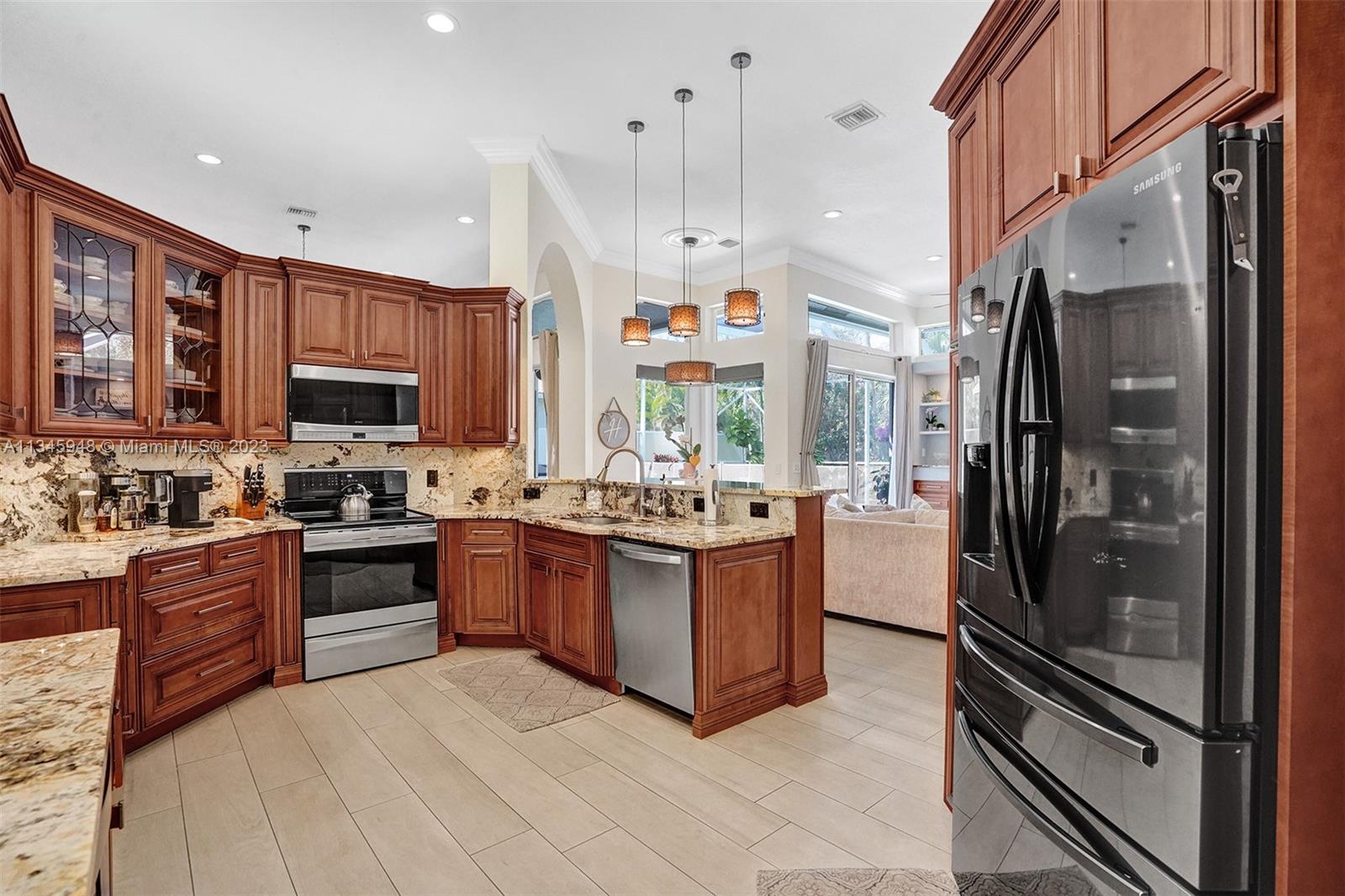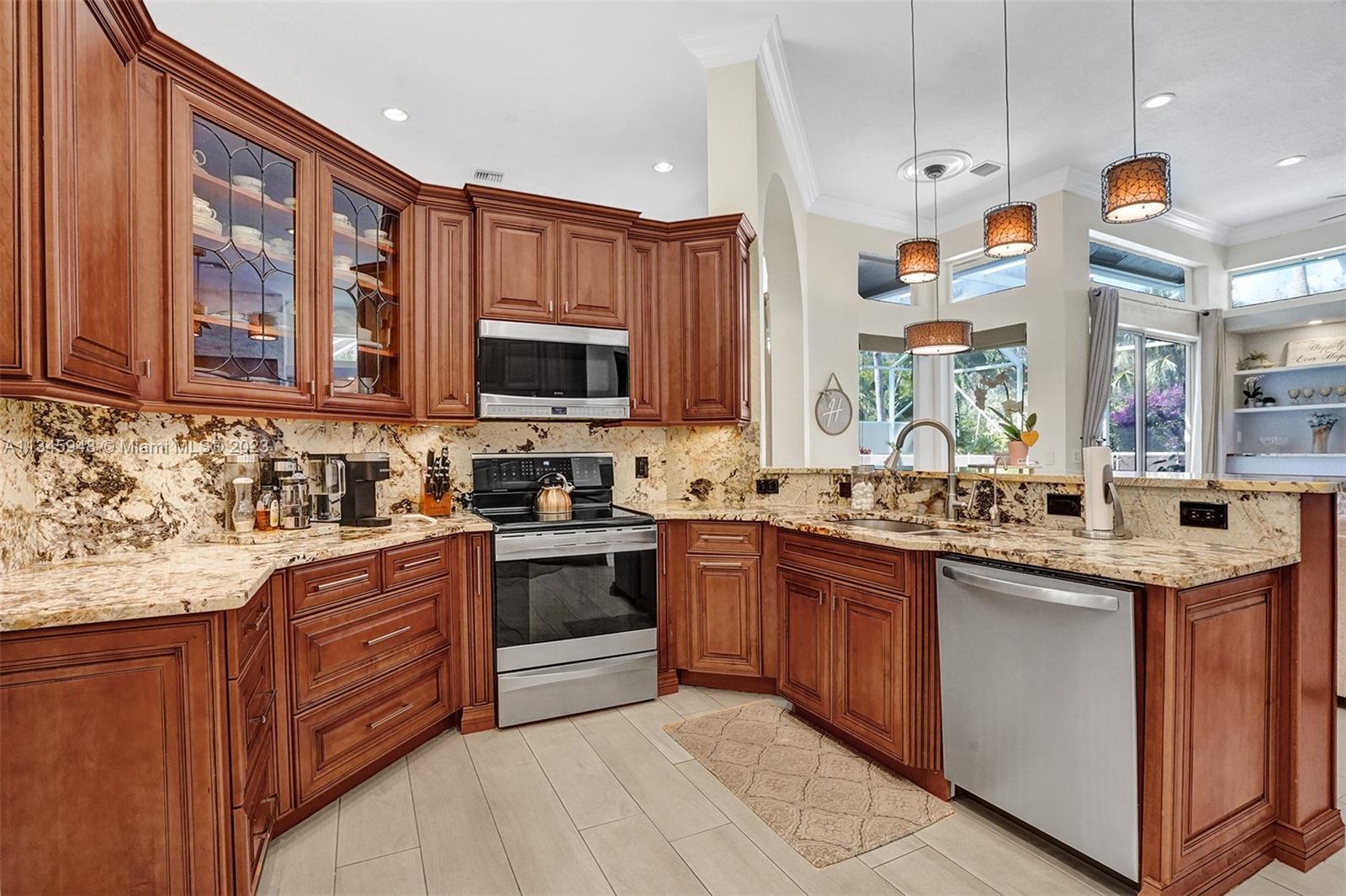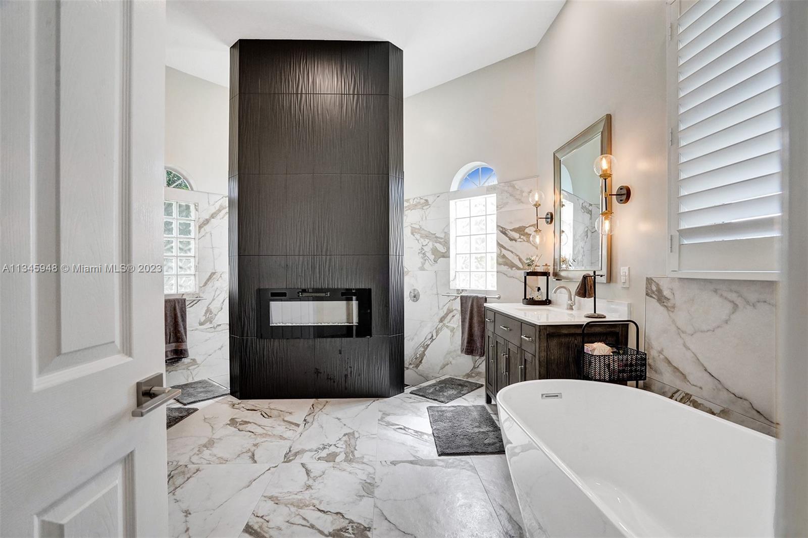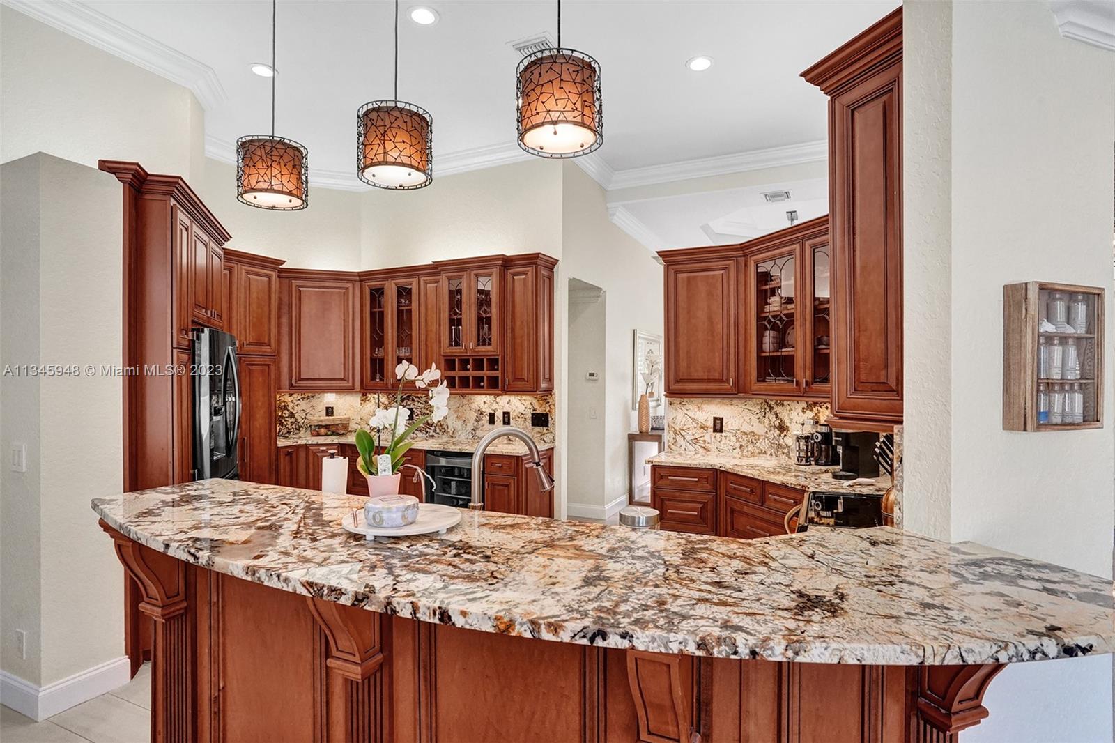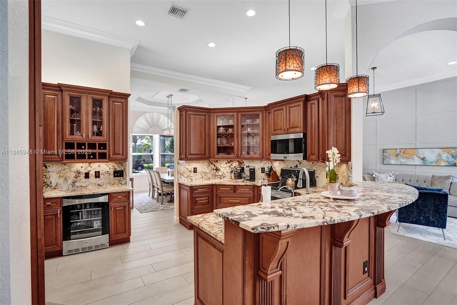 5/3 Triple split floor plan located in The Isles. This home has meticulous & impressive curb appeal. Large family room with fireplace that overlooks the screened saltwater pool. High vaulted ceiling, custom porcelain floors throughout the home, custom walls. Kitchen features Thomasville cabinets & high-end granite counter tops, wine refrigerator, newer appliances & eat-in kitchen. Built-in reverse osmosis filter for purified water. Pool resurfaced & new tiles with a waterfall & pool bath (Shower). Owner’s suite is exquisite with spa-like designs. Sitting area has view of pool. Barn door that leads to the custom closets & into bathroom with dual vanities, walk-through showers, heated fireplace & soaking tub. 3 car garage with finished walls & floors. Community private park with lake access