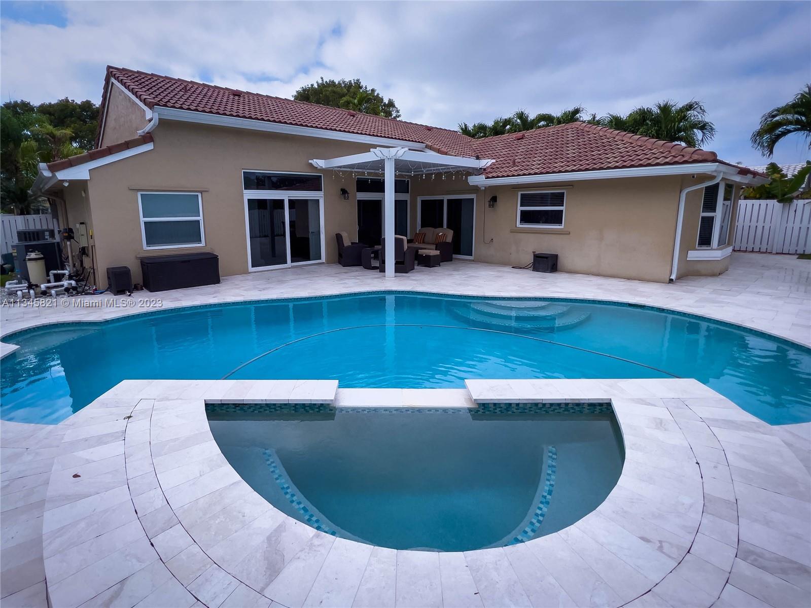 **RARELY AVAILABLE HOUSE IN HUNTINGTON BRISTOL BAY** Beautiful move-in ready 3 Bedroom/2 bath/2 car garage pool home with lots of natural light throughout! This home sits on an oversized corner lot with a large circular driveway, a great backyard for entertaining with a salt water heated pool/spa and a remote-controlled louvered pergola. The remodeled kitchen has stainless steel appliances, a breakfast area and a family room. Feel safe with the protection of hurricane impact windows and doors throughout the property. You will also never experience any power outages with a newly installed standby generator. Pool was resurfaced with diamond bright coating in 2019, a new marble pool deck, new automated pool pump, new fence and privacy hedges. Lots of upgrades for a turnkey property!