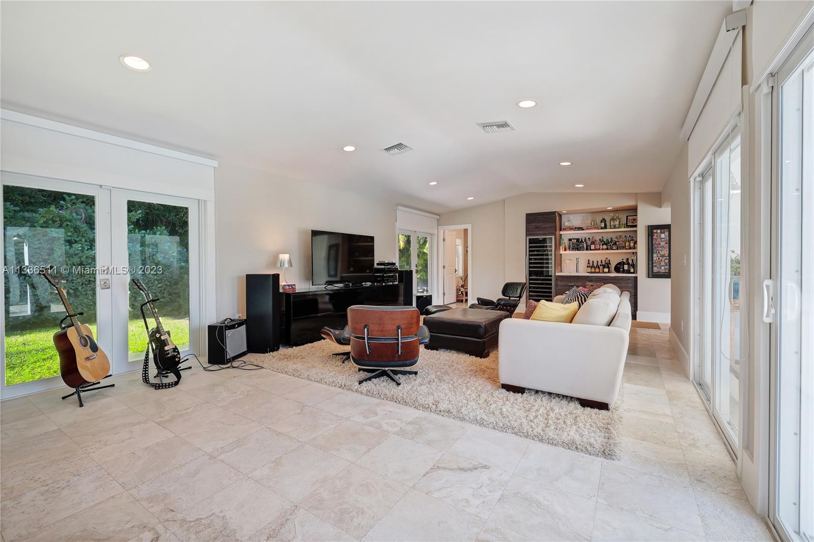 Lovely 4 bed, 3 bath house entirely remodeled in 2015, sits on a calm culdesac in walking distance from Fairchild Tropical Garden and Mattheson Hammock Park. Upon entering the home is spacious living room. The open space lets light pour in making the house bright yet cozy. Gather around a wood burning fireplace, an open bar and wine cellar in the large family. The floor plan separates the bedrooms from the rest of the house and the bonus room is a reflect guest area, that could be used as a gym or office. Also can be converted back into 2 garage space. The outside offers entertaining spaces around the pool and under the covered patio. The outdoor kitchen has it’s own bar to enjoy with friends and family. Minutes away from shopping or dining in the Grove, South Miami and Pinecrest.