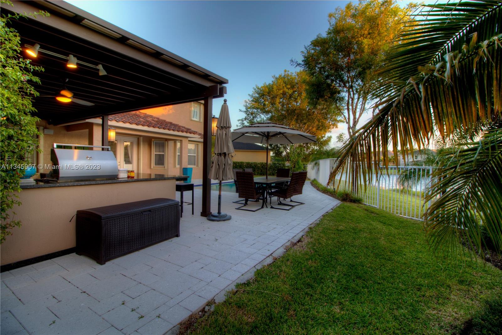 Stunning Waterfront home w/5 bedrooms + oversized 2nd floor den. At Cut-de-sac, gorgeous outdoor kitchen area with Salt water Pool and beautiful lake view! Huge backyard. Smart Home controlled via WIFI. Walking distance to A Rated Public Schools. Resort community amenities include pool/spa, basketball, tennis, volleyball, playground, clubhouse w/fitness center & more! Easy commute to Miami, Ft. Lauderdale, Ocean/beaches & nightlife!