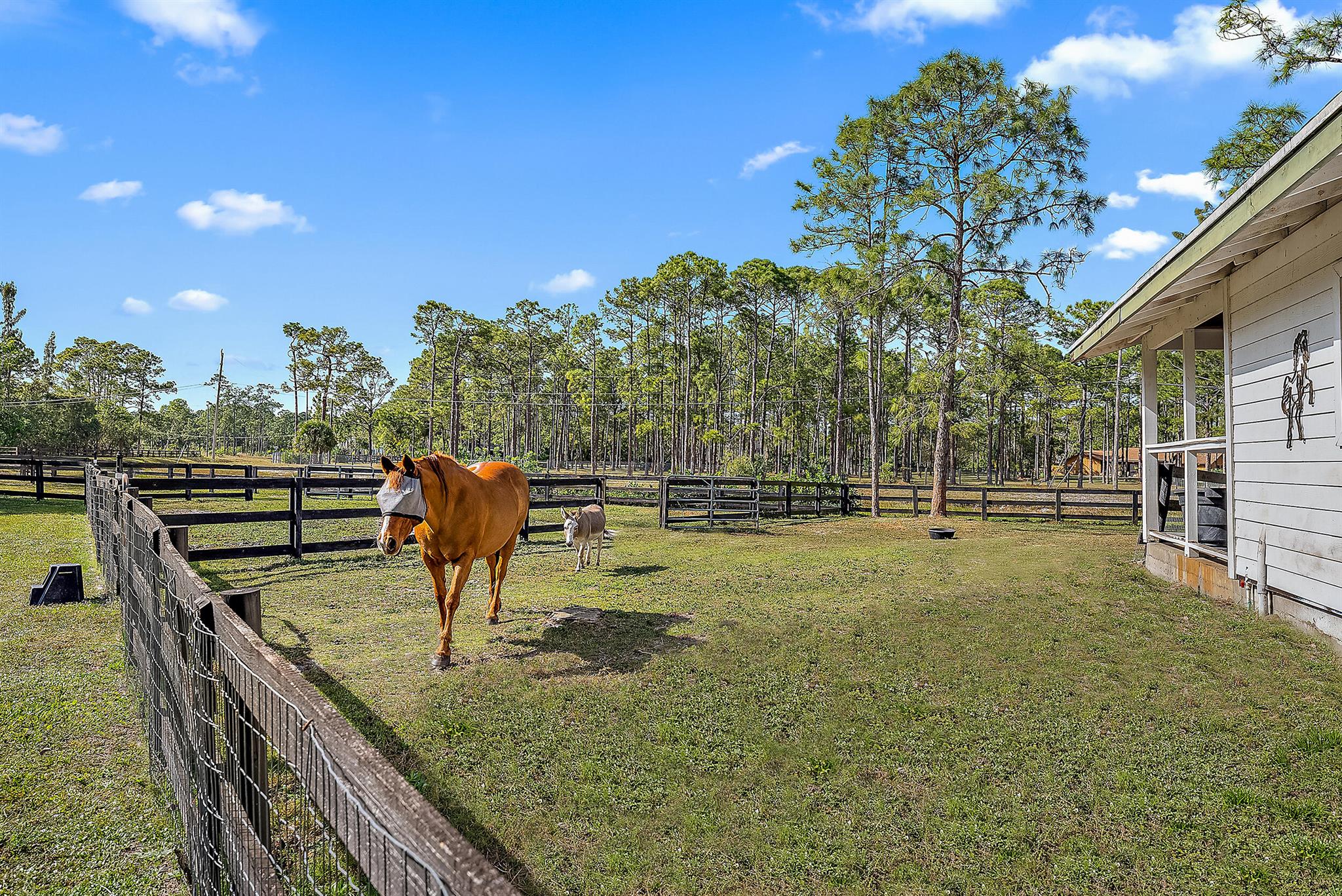 This 5.04 acre fenced property features a large main house, an updated guest house, multiple paddocks, pastures, and two gated entrances. A great property to live the equestrian lifestyle or to enjoy space and privacy. The guest house is 2/2, 1800 sqft, and move-in ready! It has modern updates and impact windows/doors. The guest house Master Suite has its own fenced-in yard, a large bathroom, and a walk-in closet. A great home for guests or for living in while adding personal touches to the main home. The main house is over 4000 sqft and opens to a pool and patio with views to the barn. Both homes have newer appliances and air conditioners. Caloosa's tree-lined streets and expansive 5-acre-plus homesites make this community exclusive & coveted. Supplemental...