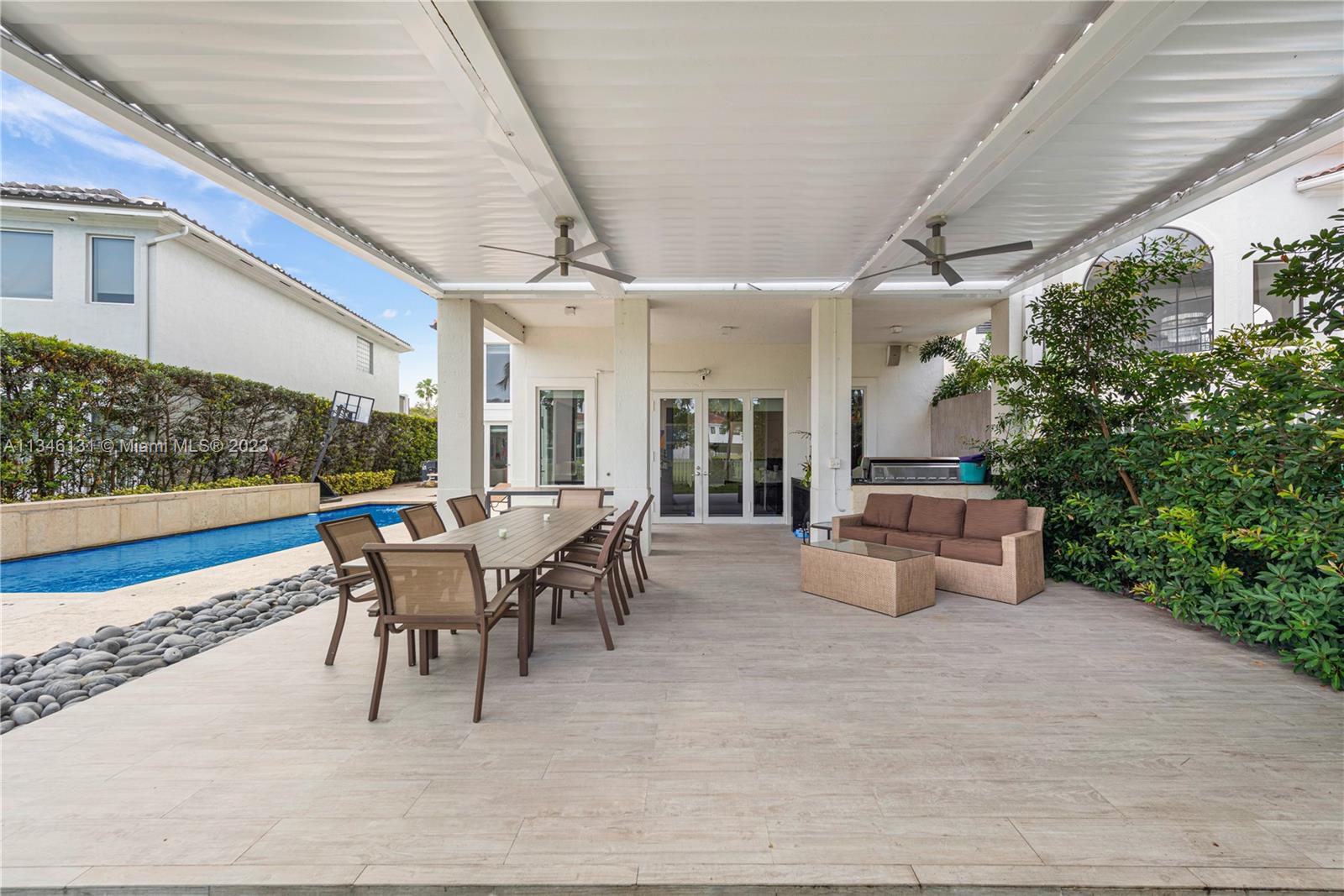 Welcome to this stunning contemporary oasis in the gated community of Presidential Estates. This magnificent property is ready to move in and features an ideal family floor plan with 6 bedrooms, 6 1/2 bathrooms and over 5,000 Sq Ft of living space including a studio, wine cellar, office and a maid’s quarter . You are greeted by a grand foyer with soaring ceilings and an open floor plan that seamlessly flows from the formal living room to the formal dining room. The home sits upon an oversized lot of 10,662 Sq Ft with an oversized backyard oasis that is perfect for entertaining with an oversized pool, summer kitchen and a covered back yard roof. Premium interior finishes includes an Italian kitchen, top of the line appliances, Italian tile flooring, electric blinds and smart systems.