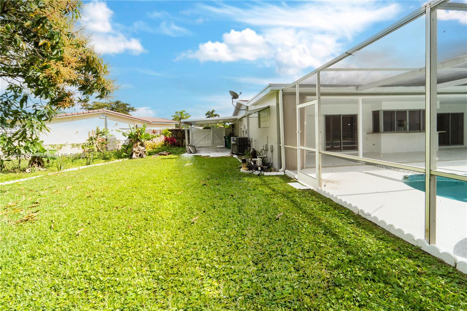 Come and see this house with the "LARGEST CORNER LOT" in the sub division. Surrounded with the rarest tropical trees, seen no where in Florida. Variety of Mango trees, Avocadoes, Jack Fruit trees, Coconut trees and much more. If you are a nature lover and wants to live in the middle of the city, this is for you. Roof 2018. AC 2020. Covered pool with new pumps. Freshly painted in and out. This home needs your ideas and inputs in order to be the best. Great potential buy for any investor or a new home buyer. Walkable distance from A+ schools. BRING IN YOUR RV OR BOAT...….