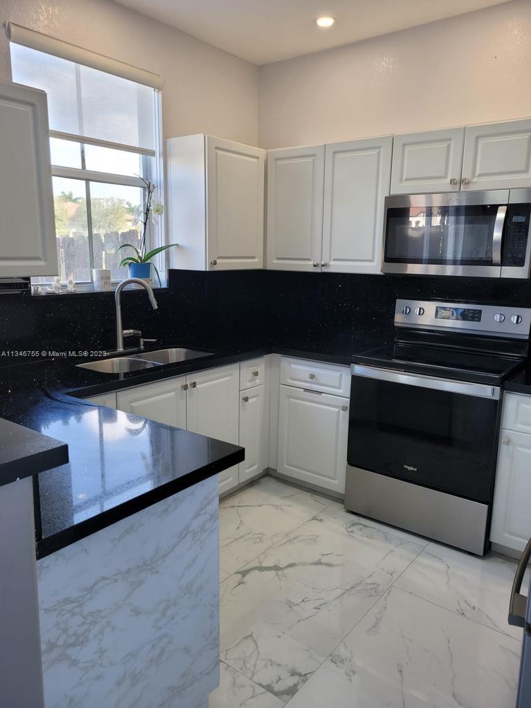 Stunning newly remodeled 3/2.5 with a lake view townhouse for sale in a Gated community Windward! Beautifully boasting its spacious area with modern kitchen with stainless appliances. Combination of porcelain on the first floor and laminate on the second floor. Car garage was converted into a 4th small room that can be used as an office or bedroom and the other part of the garage can be used as a storage room. 2 Parking spaces available in the driveway. Clubhouse w/ pool, tennis, basketball, meeting and event rooms, & gym are just steps away from house central. Very convenient as it is close to schools, shops, expressways, and malls! Close also to Miami International Airport! Be prepared for 'love at first sight'. Schedule your showing before it’s gone.