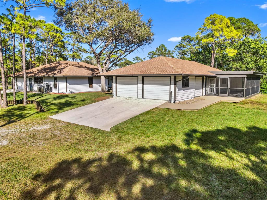 ''ATTENTION! This property has now been REDUCED $90,000 from the original listing price! If you have been watching this listing - NOW is the time to act before someone else does!''Presenting an EXCEPTIONAL 2.5-acre, two-home paradise. Your own personal, park-like setting. Imagine enjoying your morning coffee in quiet solitude, sharing your start to the day with mother nature. This very well-kept land features a pond, two wells and sprinkler system. The property is completely fenced with an automatic entry gate. Your main house is a 3/2. The guest house is also a completely self-contained home... with a kitchen, bath, living/dining area and a huge screened-in patio. Perfect for family - guests - or perhaps valuable rental income potential. Both houses have two-car garages.