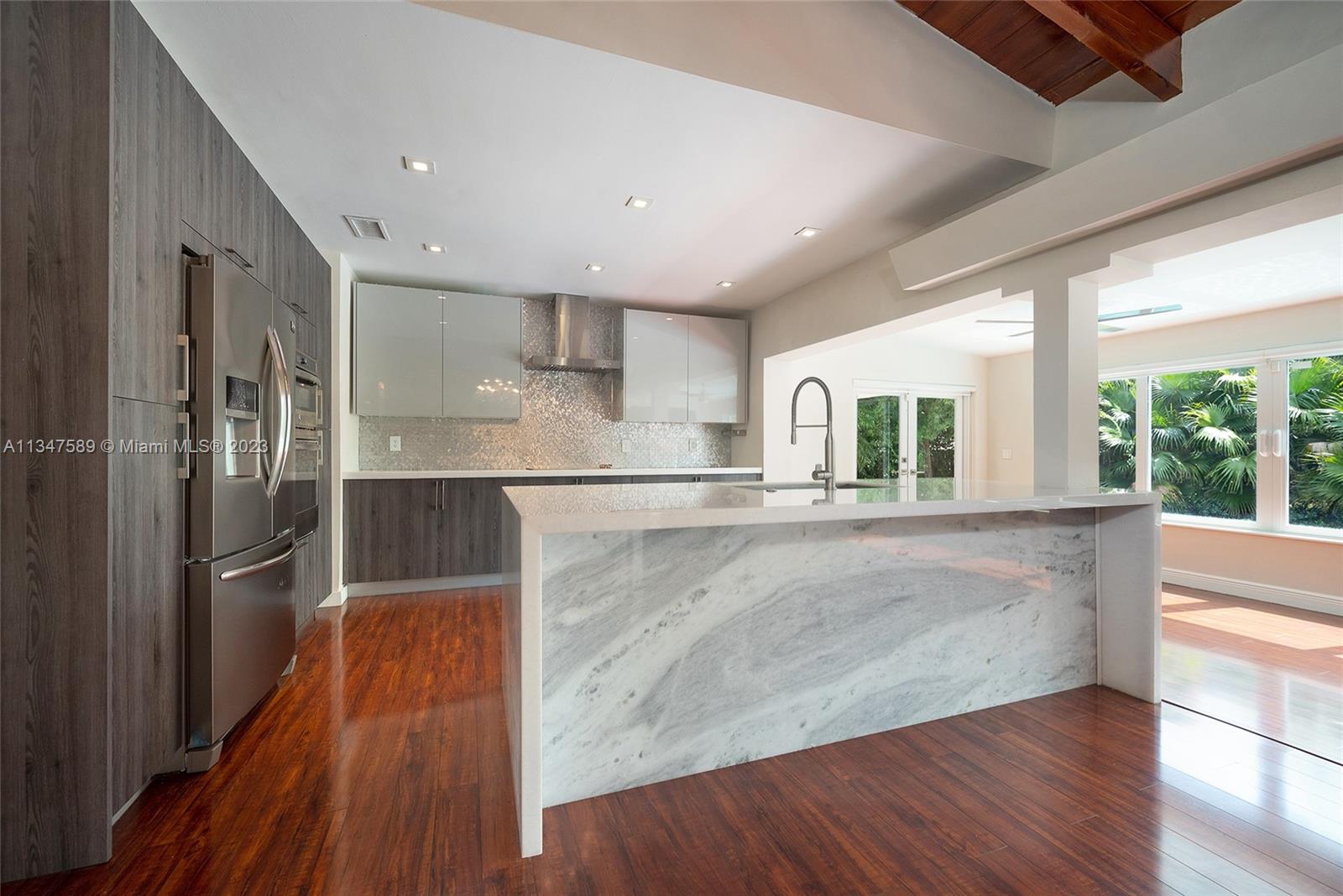 Come and see this fantastic home in a great school district. Spacious and designed living area with large impact windows that offer incredible views of the backyard and pool. The formal dining room with exposed beam ceilings and wood flooring is perfect for hosting gatherings with friends or family. The bedrooms have ample storage, and the kitchen is completely renovated, featuring marble countertops, stainless appliances, and plenty of cabinet and drawer space. There is also a 2 car garage for all your storage needs.