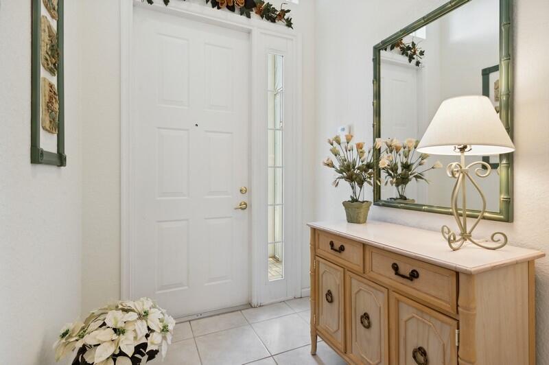 This beautiful 3 bedrooms 2 baths and 2 car garage home is one of the most sought after floorplans in this active resort style community. The exterior features a welcoming entrance, accordion hurricane shutters, screened covered patio. The view of the nature preserve is breathtaking. The interior features newer stainless steel appliances, reverse osmosis water system, water softener system, new water heater, vaulted ceilings, tiled in the living areas, carpet in master and guest bedrooms. The 3rd bedroom has a closet it is presently used as an office. Furniture negotiable. The HOA fees include Xfinity cable, internet, LAN line, ADT, use of clubhouse and its amenities 3 heated pools, one is an aqua-trac, 6 tennis courts, shuffleboard, bocce courts, 24-hour guard gate, movie room