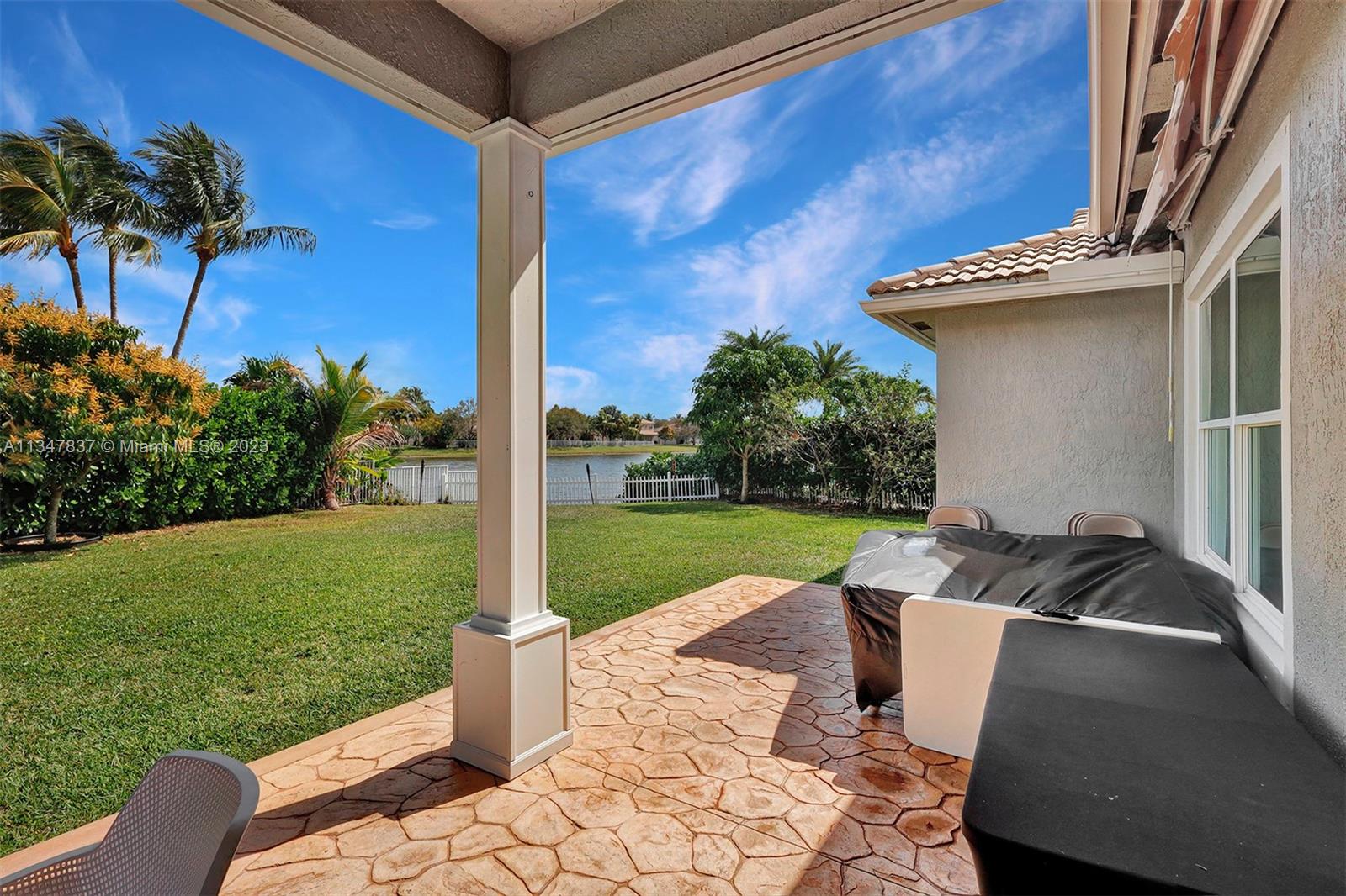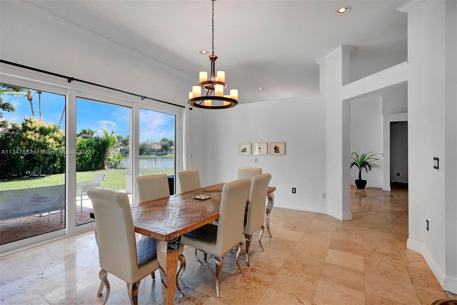 Make yourself at home in this spectacular Newport model in upscale Pembroke Falls. Panoramic Lakeview from main living areas, oversize corner lot, circular driveway, Marble floors throughout except for bedrooms, split floors plan, vaulted ceiling, crown moldings, 24" polished Crema Marfil marble floors throughout and wood in bedroom. Kitchen with granite counter tops and wood cabinets, stainless appliances. Huge master suite with jacuzzi tub and sep shower. Cover terrace overlooking the lake. Great for entertaining! Resort-Styled Clubhouse!!