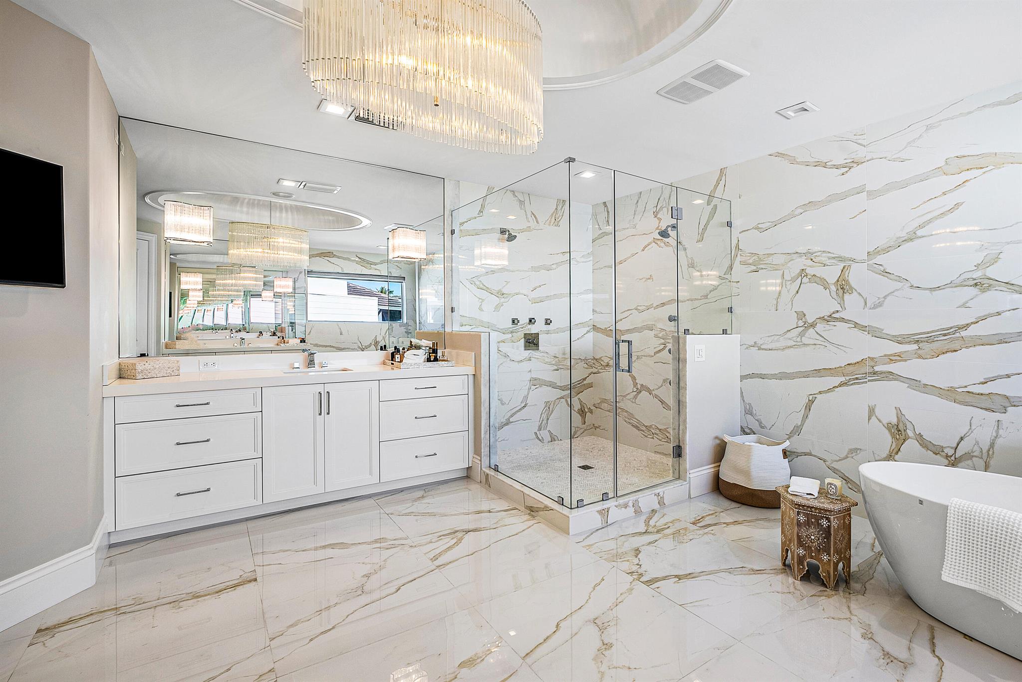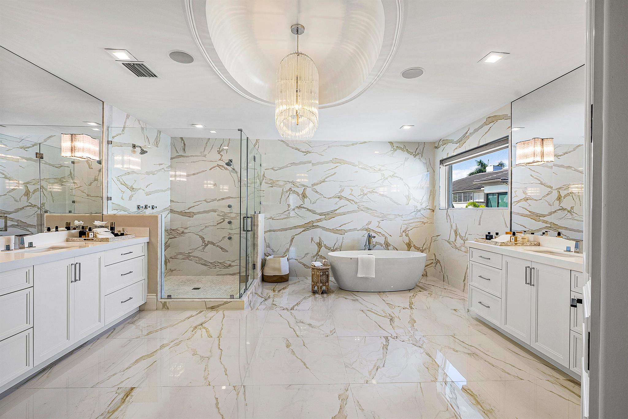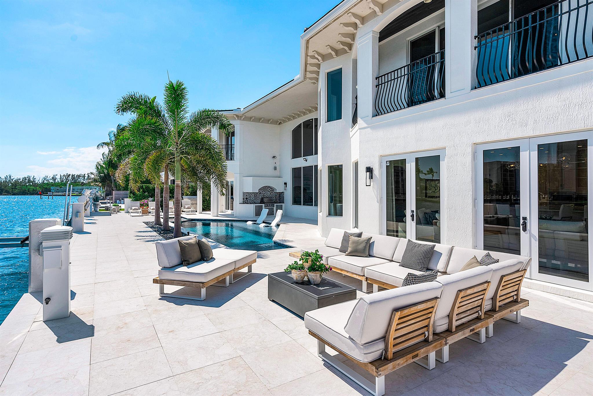 Nestled on a prime waterfront location in Boca Raton, 794 Ne Harbour Drive is an elegant and contemporary estate that exudes luxury and sophistication. With a complete remodel that showcases designer finishes, this stunning home boasts impeccable attention to detail and exquisite craftsmanship throughout!As you enter, you'll be greeted by soaring ceilings and breathtaking water views that extend throughout the living areas. The open concept floor plan seamlessly blends indoor and outdoor living, offering expansive vistas from every room. The first floor features a waterfront office, a full guest suite, a 6-seat movie theater, and a bar perfectly situated for entertaining guests.Step outside, and you'll find an oasis of relaxation in the backyard, where 100ft of water frontage offer