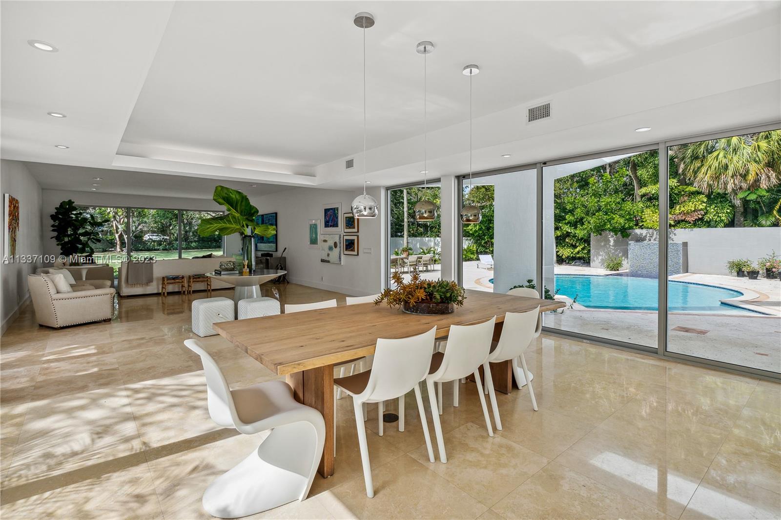 Must see it! Stunning modern design and updated home with all new impact windows and doors, new roof from 2020, new kitchen with a great pantry. Located on the East side of Pinecrest on an almost acre lot with plenty of space for a tennis court. The home has over 4,000 SF of living area, 4 bedrooms and 3 full bathrooms, a private master suite on the second floor with 2 terraces, and 3 bedrooms on the first floor. Combined living and dining room with amazing windows throughout and a private garden that brings amazing light to the inside. Ample family room with high ceilings and space for an office. 2 car garage with AC and lots of windows.