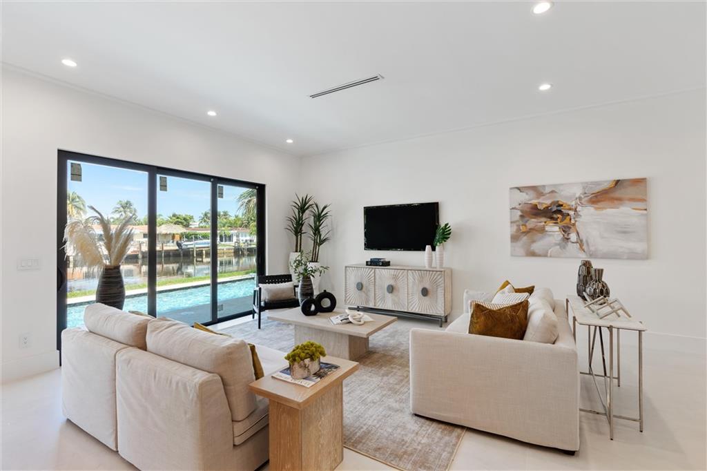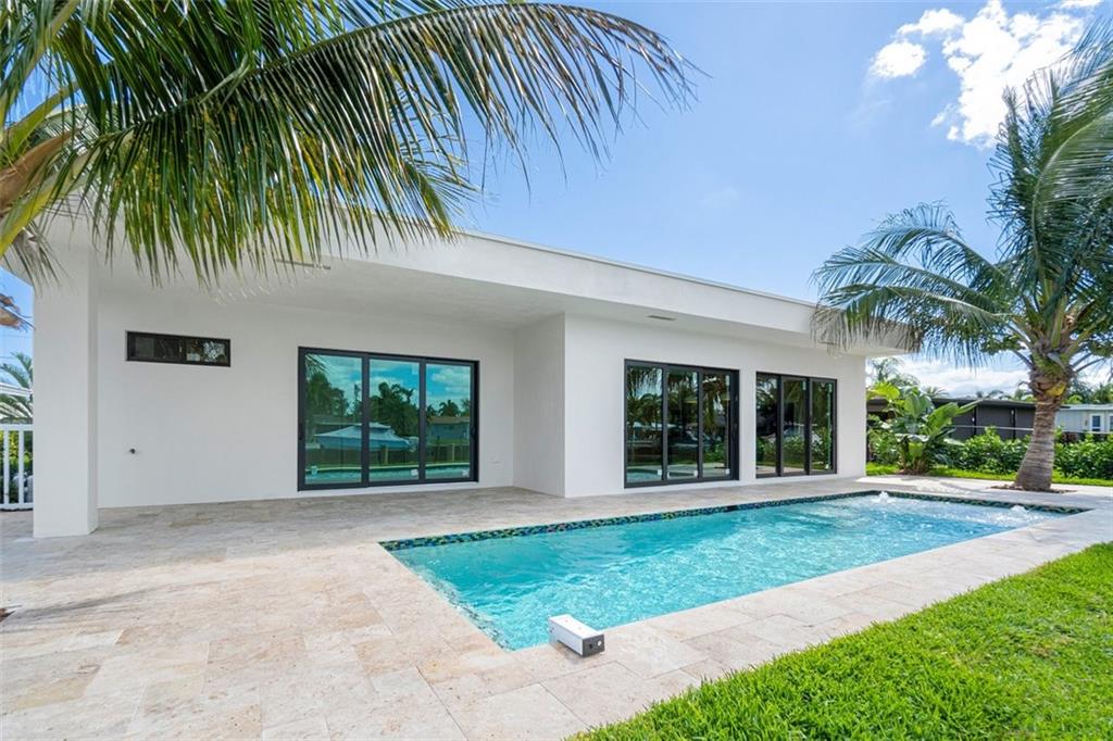 Modern waterfront home with beautiful views, completely redone, wide canal, ocean access home designed to provide the best Florida lifestyle. Built for the peace of mind, high impact windows & doors, salt water pool, covered patio. Step inside to a luxury finished modern interior, high ceilings, simple one story living, European porcelain tiles throughout entire home, custom cabinetry & closets, high end appliances & finishes. Only a few min to the beach, waterfront restaurants, Fort Lauderdale and airports.