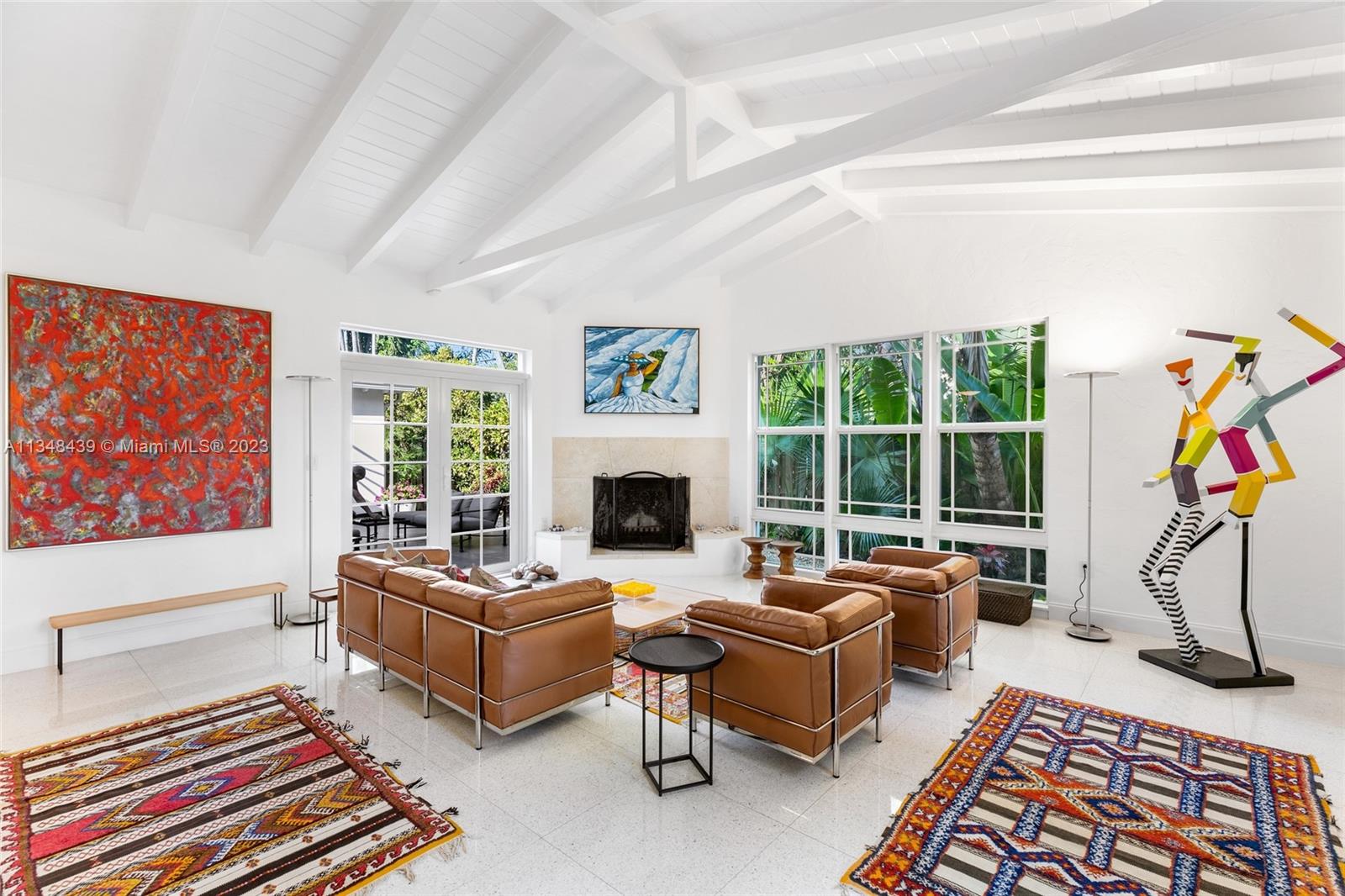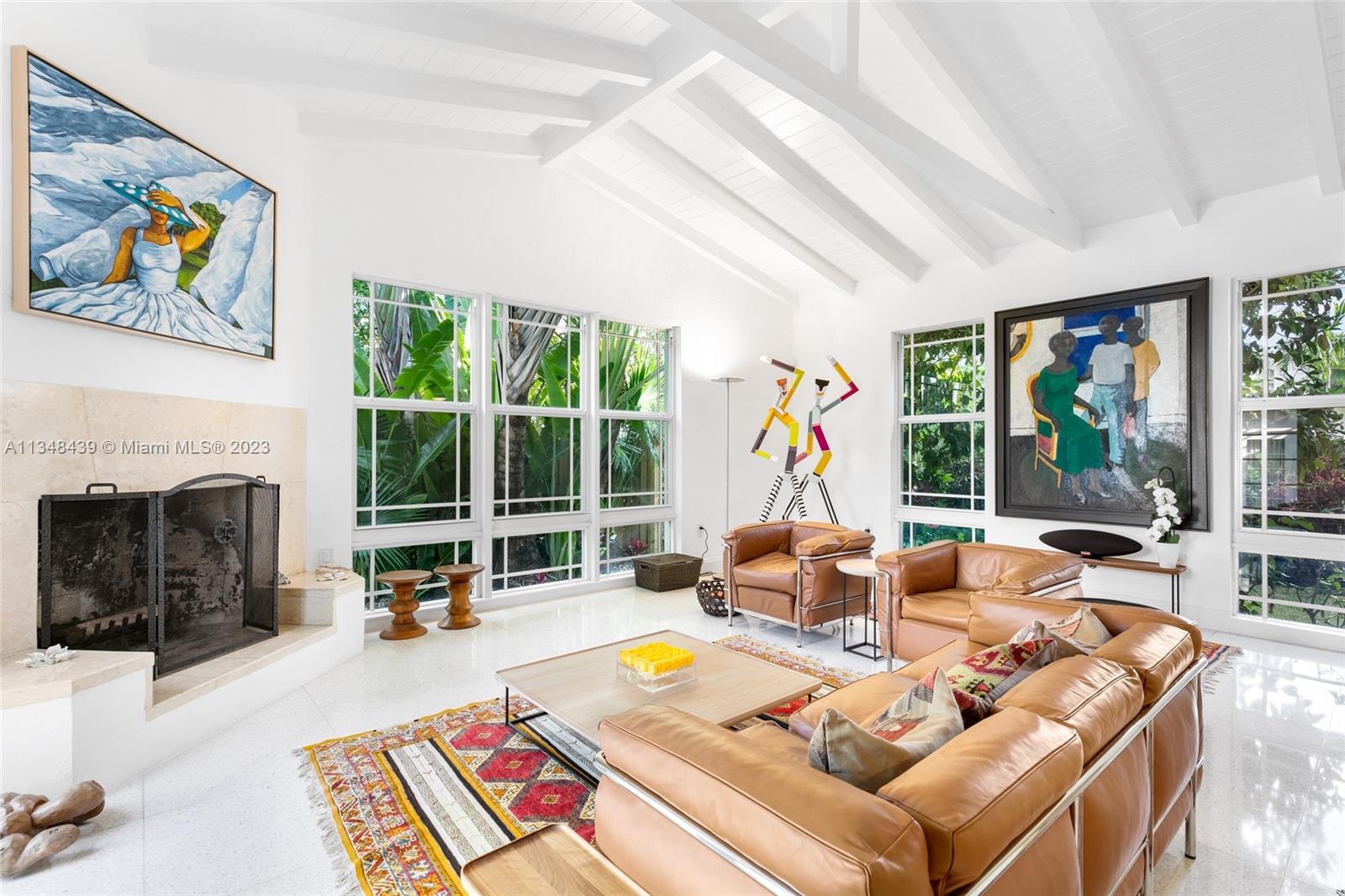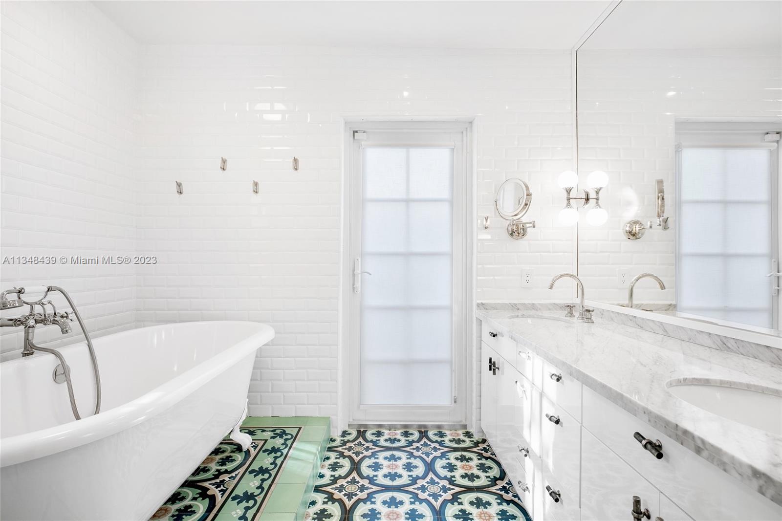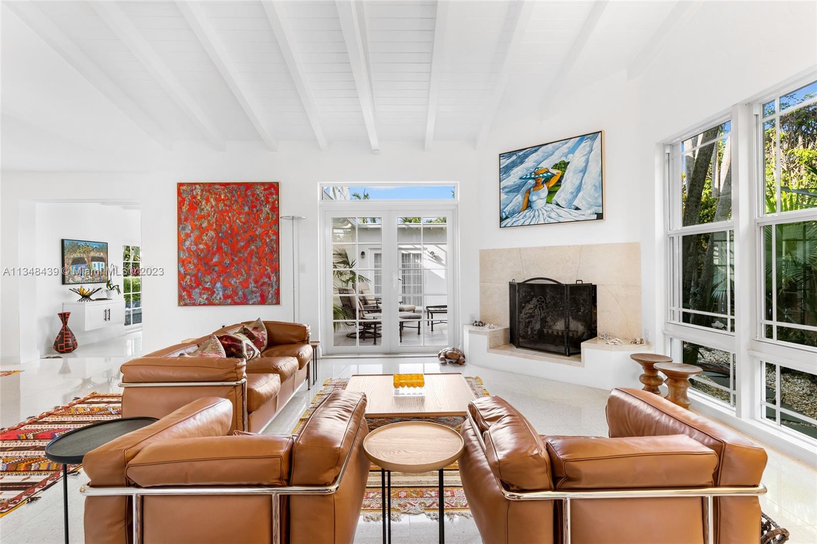 Tucked behind lush landscaping, this fully renovated Miami Beach Bungalow exudes charm & features vaulted ceilings, immaculate terrazzo floors, custom built-ins and abundant natural light through high impact floor-to-ceiling windows. A Gourmet kitchen has a Viking gas range stove & stunning white cabinetry. The home features Updated electric and plumbing as well as a brand new Roof. The ground floor primary suite has a large walk-in closet & spa-like bathroom w/ intricate tiles, free-standing tub & dual sinks. Enjoy a salt water pool & open patio which features French doors that lead into the dining room & access to the primary suite. 2 Car driveway w/ electric for charging. Walking distance to the trendiest shops, restaurants, Trader Joes, Fresh Market & fitness studios in Sunset Harbour.