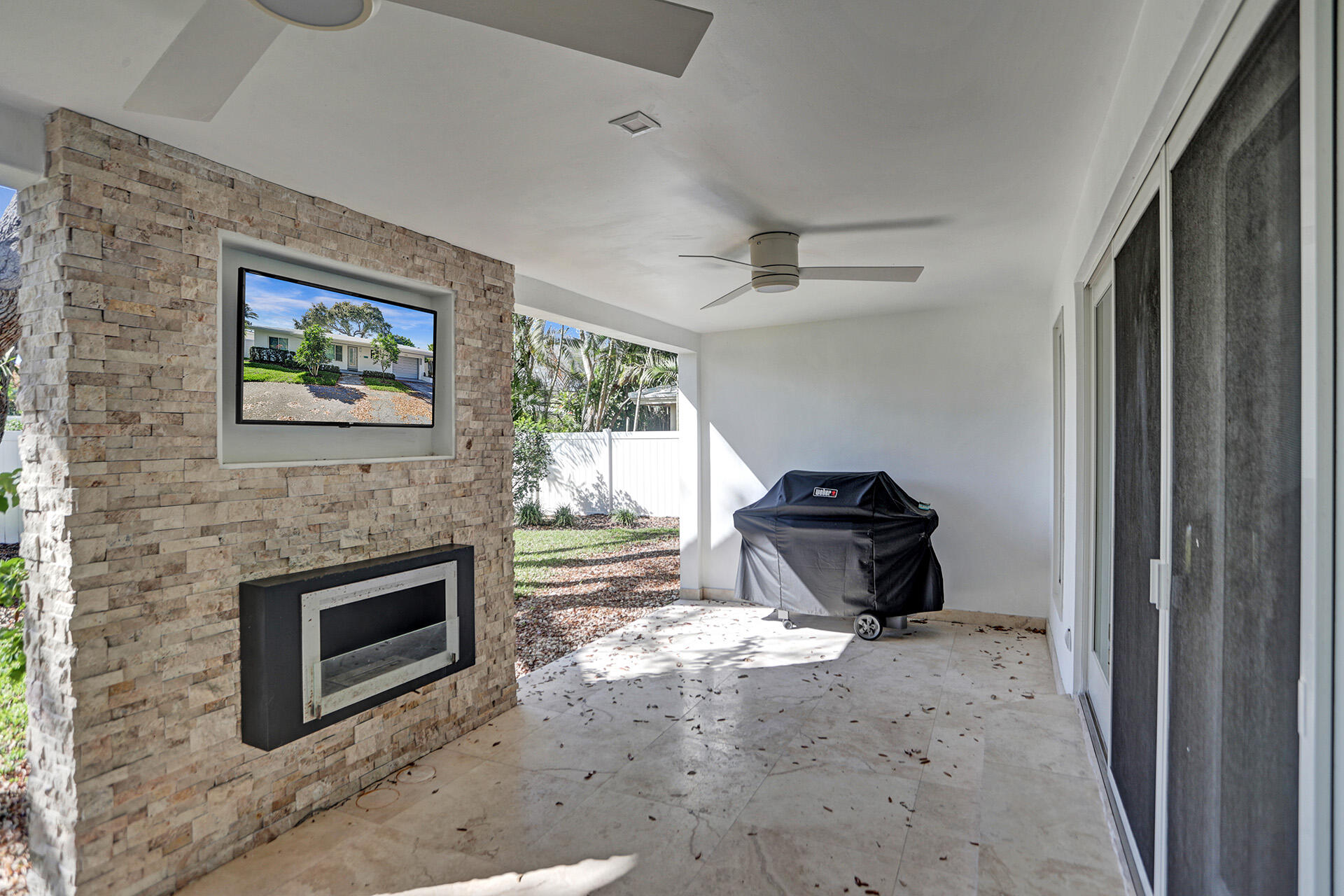 The Sophisticated interior by Ed Albers of DCOR, Rehobeth DE, really shines in this 3/3 Coral Shores gem...thoughtful, elegant finishes throughout this fully updated home in a wonderfully convenient location less than 2 miles from the beach and all that FLL has to offer...Full impact windows and doors, beautiful open kitchen with quartz countertops, island and GE Profile appliances including induction cooktop, 3 bedrooms and 3 full bathrooms (2 en-suite), updated electric, built-in queen sized murphy bed, LED lighting and large format porcelain tile throughout, fantastic covered patio area with built-in bio fuel fireplace and electric for TV, fully fenced backyard with plenty of room for a pool if desired, one car garage and circular drive for plenty of parking...gorgeous and move in read