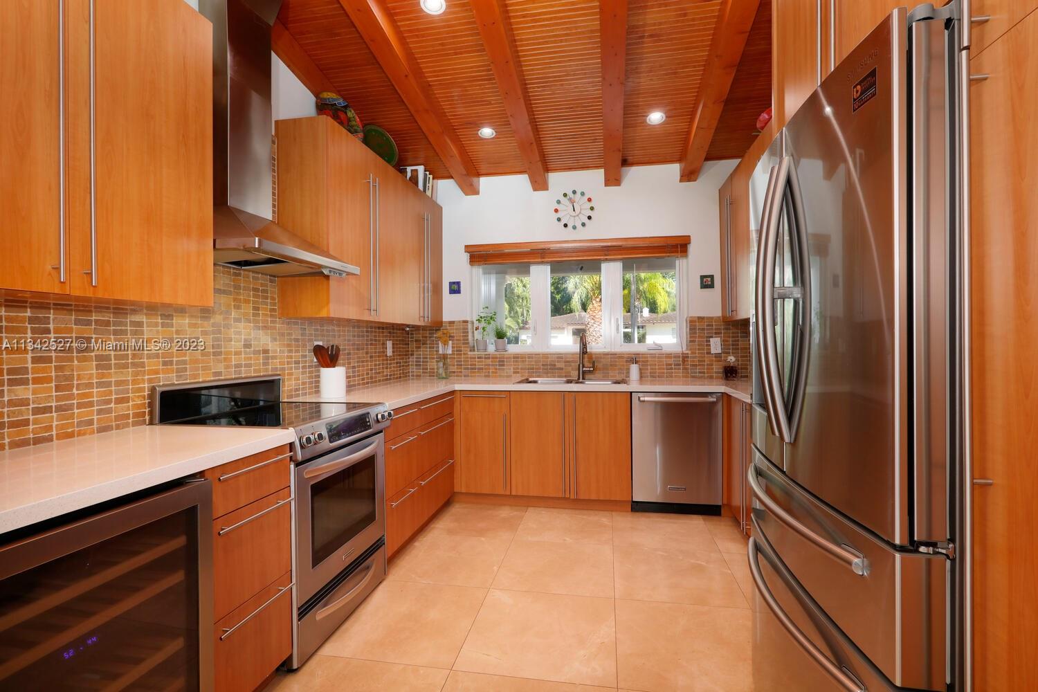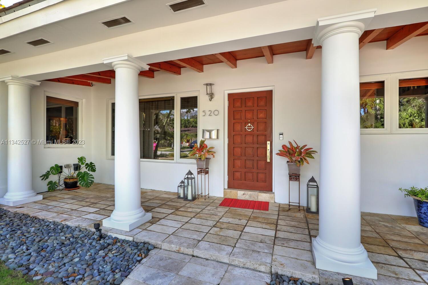 Lovely Bermuda-style inspired home set on large 12,500 sqft lot with lush tropical landscaping surrounding 25K gallon saltwater pool, located in the highly coveted South Gables neighborhood. Completely rebuilt in 2005 according to the South Florida Building Code including new roof, impact glass casement windows and doors, and all new interior infrastructure. This beautiful home features open floor light-filled living spaces with cathedral wood ceiling, elegant Crema Marfil marble flooring and stunning views of the pool and secluded garden area. Modern-style kitchen with wood cabinetry, quartz countertop and energy saving stainless steel appliances. Ample land for home expansion. Home features ADT/Ring alarm system with closed circuit cameras and large air conditioned two car garage.