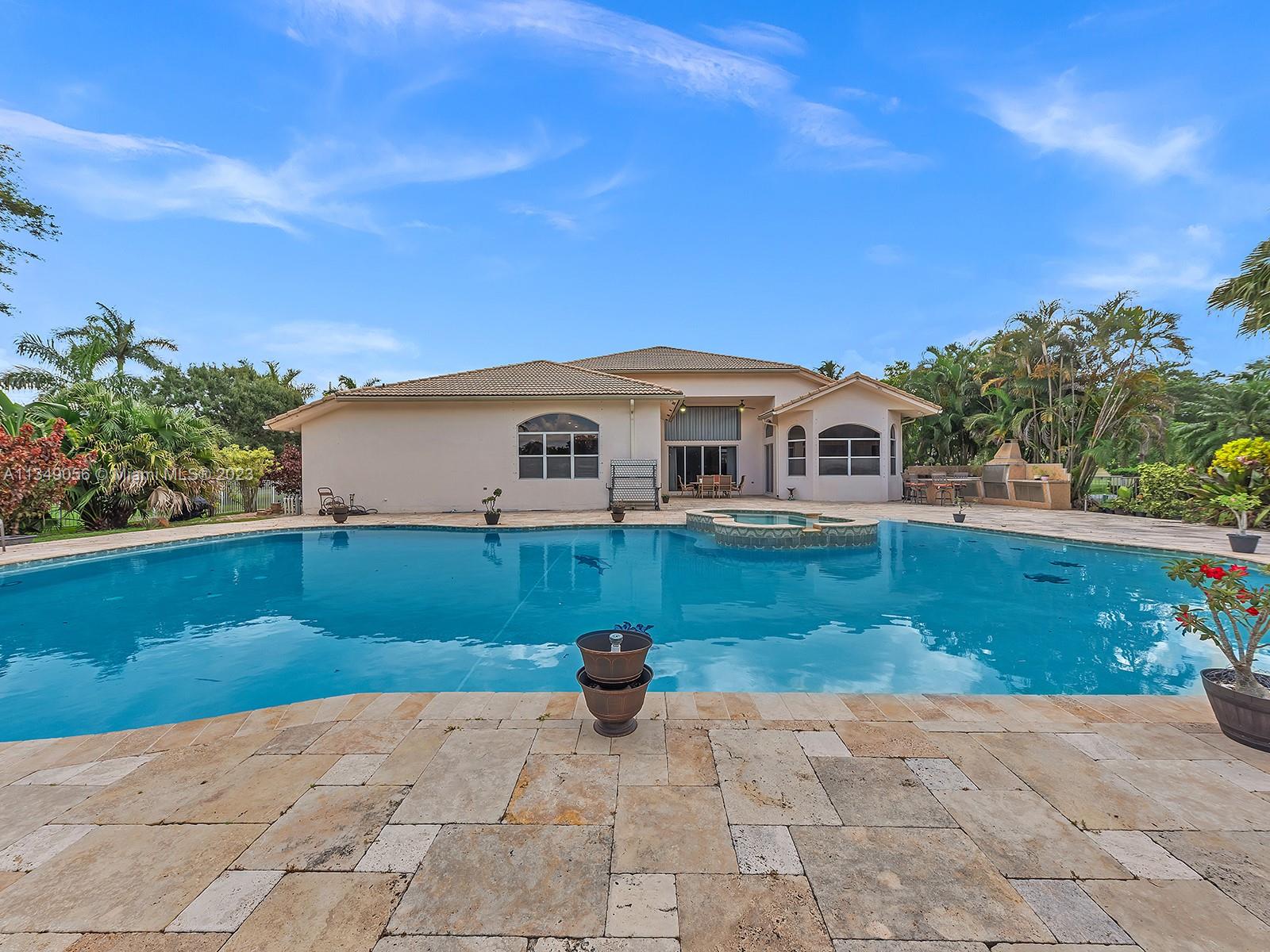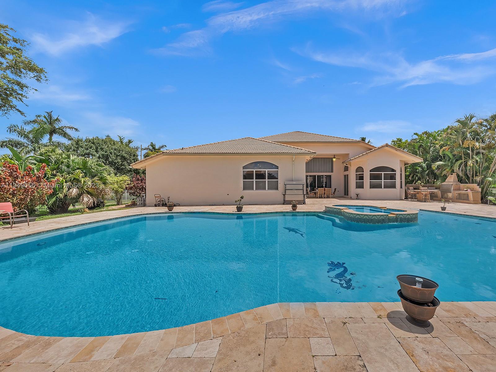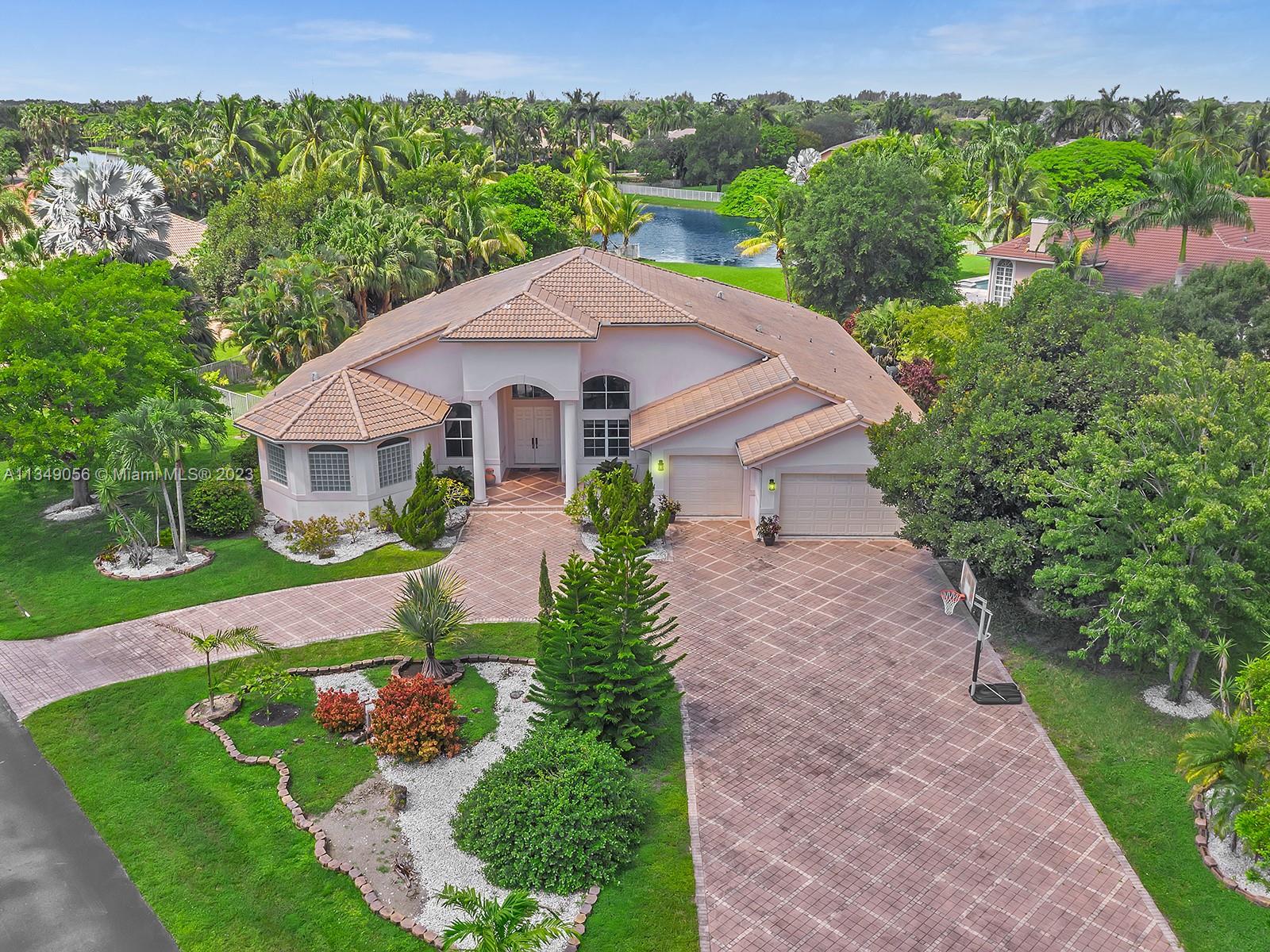 Absolutely fantastic home in the exclusive community of Emerald Springs Homes. Vaulted ceilings, marble floors throughout the home. Large master suite with dual walk in closets and large master bathroom with roman tub, double shower and private bidet/toilet area, all bedrooms feature their own full bathrooms. This home has it all oversized corner lot with a lake as well as a gorgeous pool and deck made Turkish marble stunning pool with agreat deck area. Large paver driveway with plenty of parking nicely landscaped. A real unique home must see, make an appointment today.